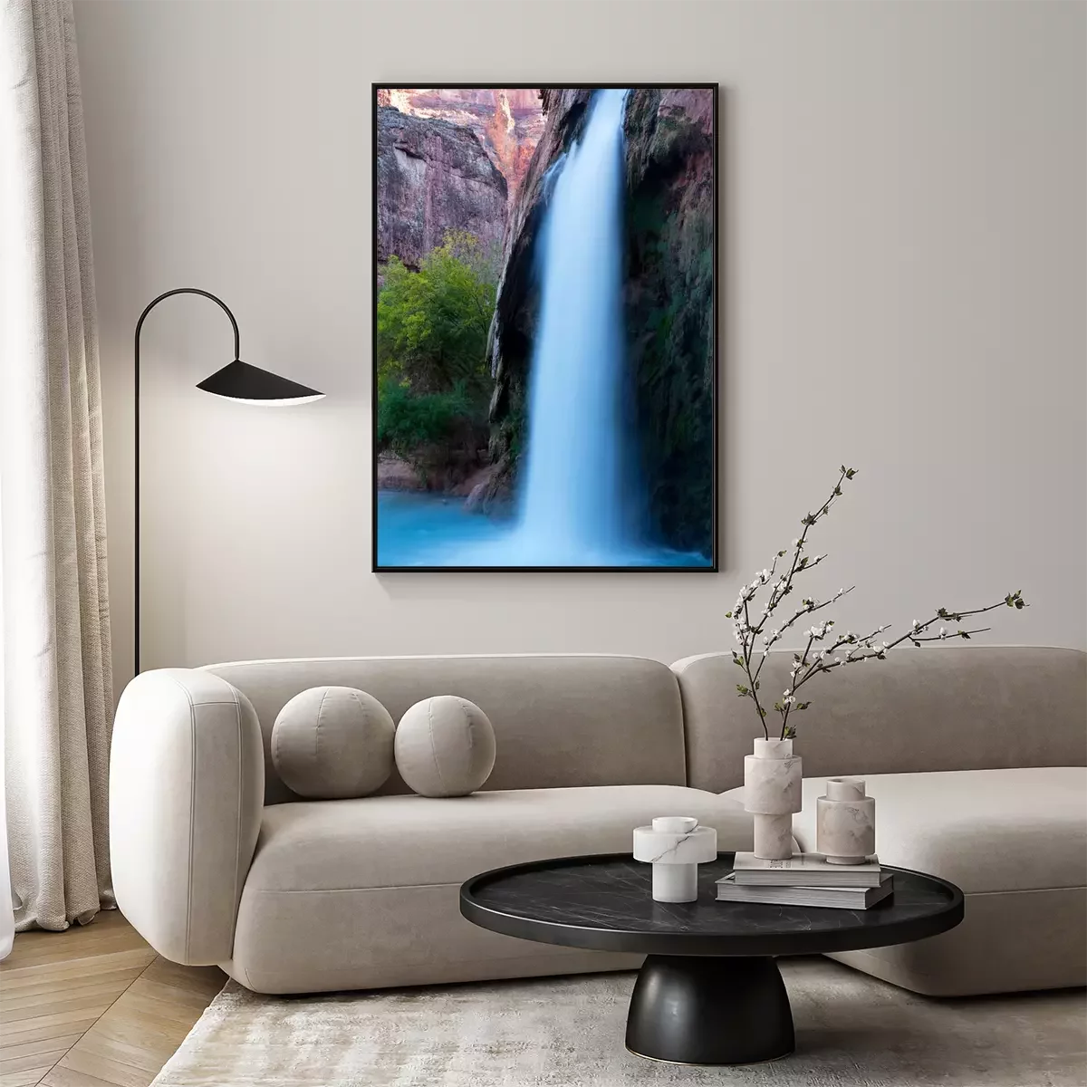 Poster: Natur und Wasserfall zwischen den Felsen