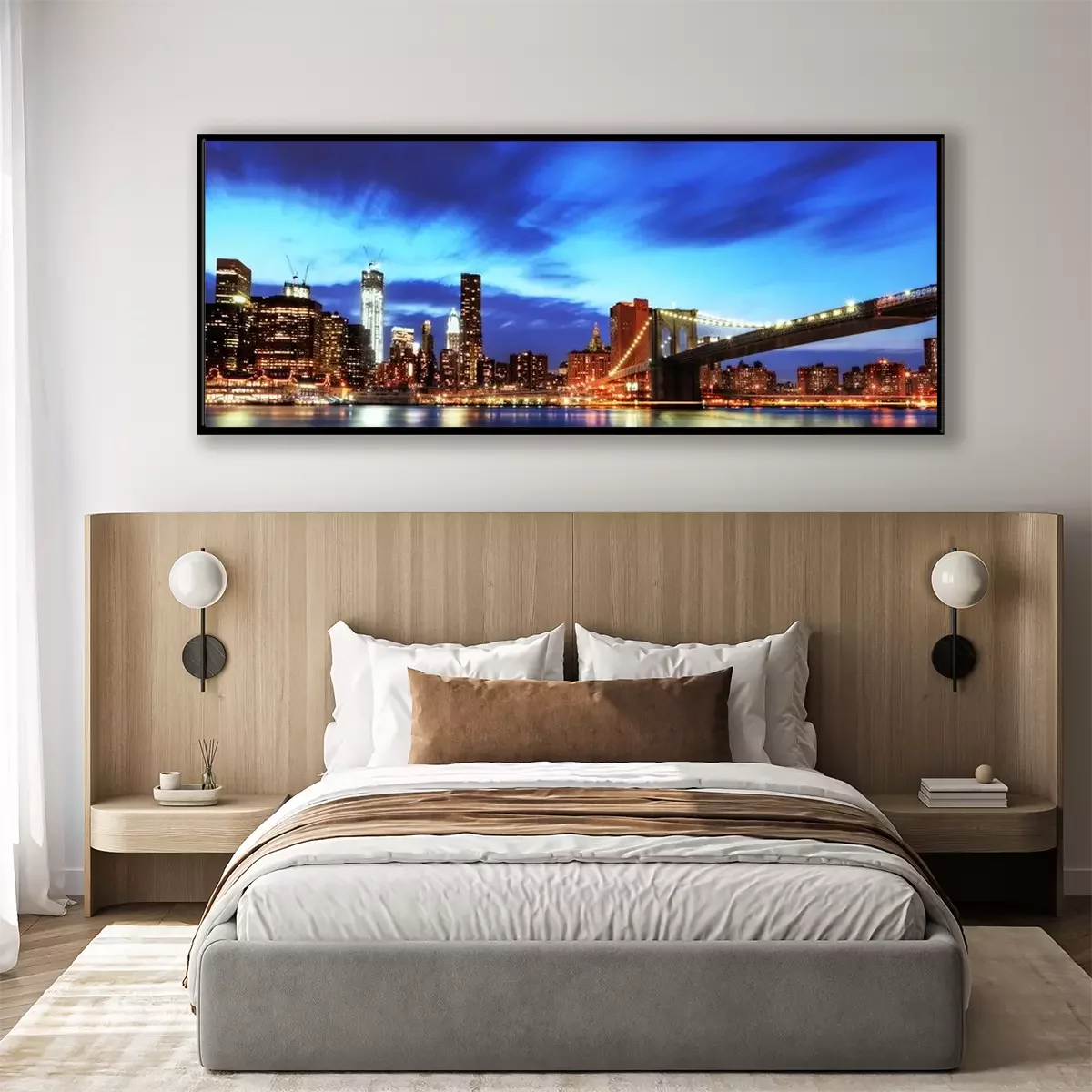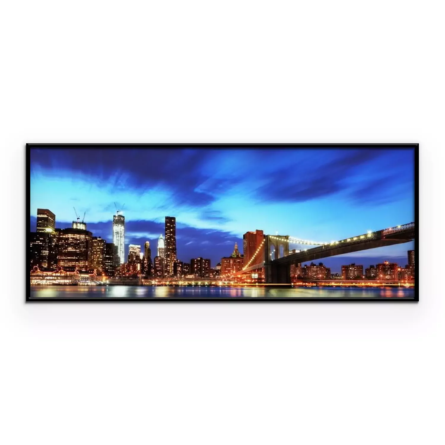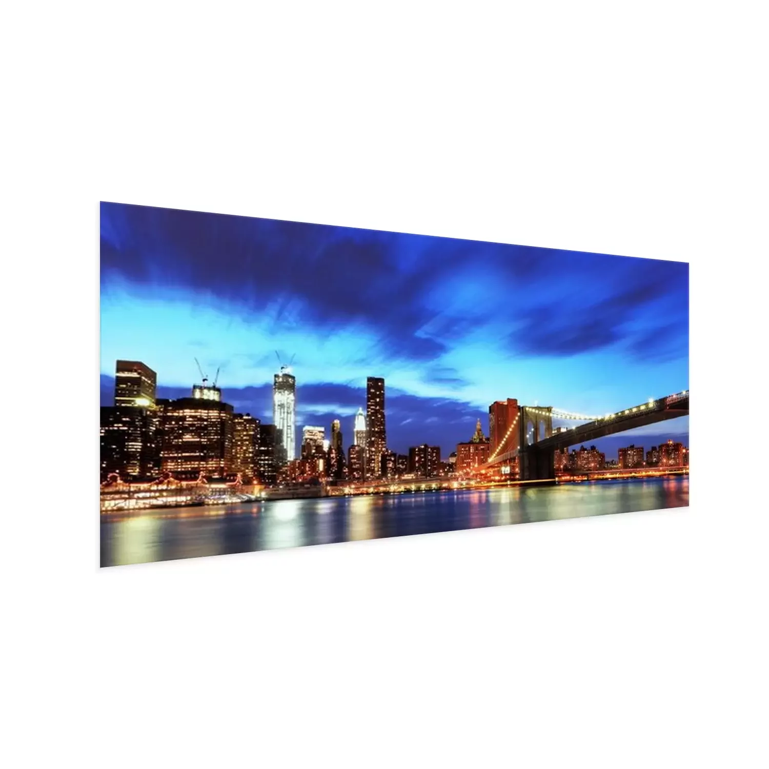 New York in der Abenddämmerung mit beleuchteten Wolkenkratzern