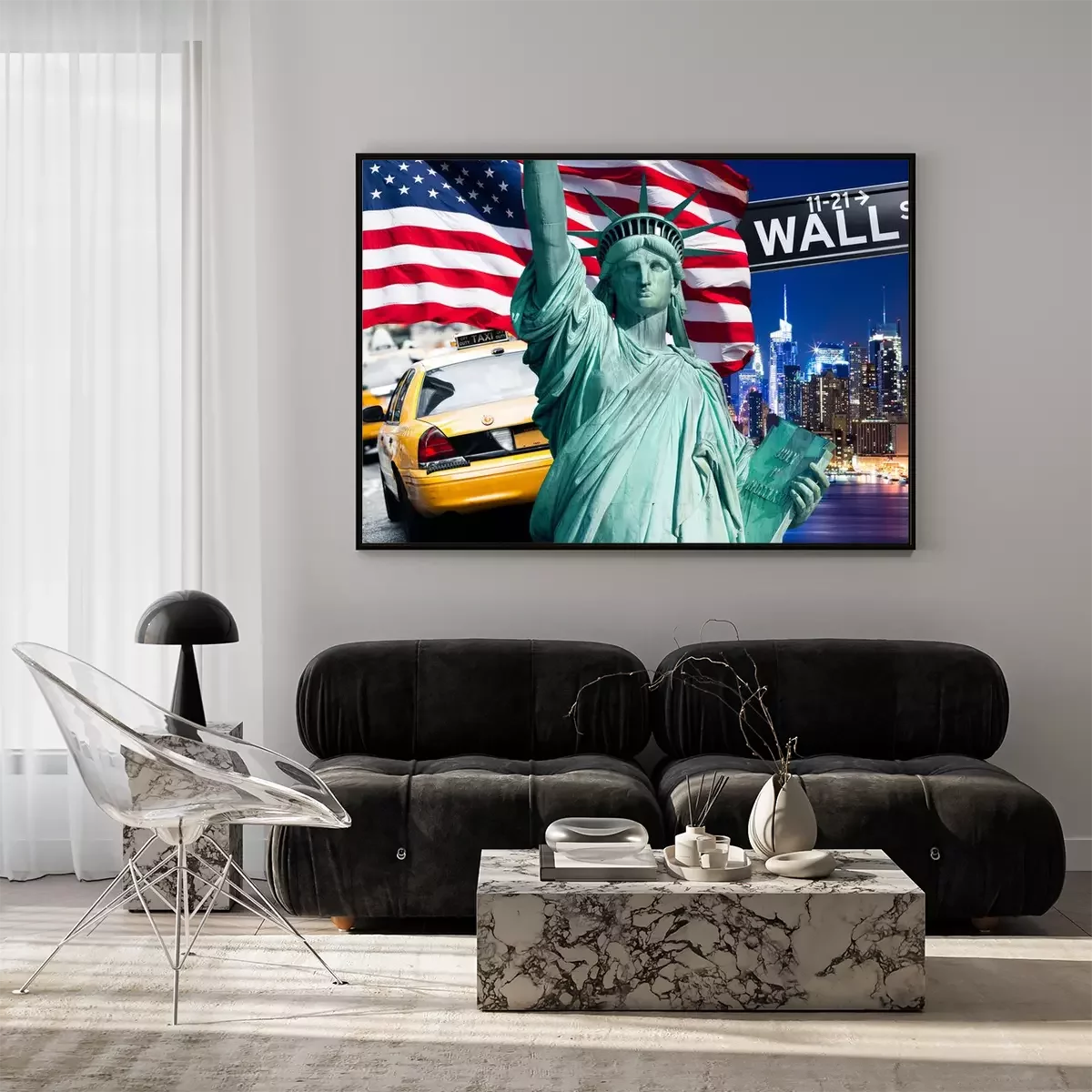 Poster: New Yorker Taxi und die Freiheitsstatue