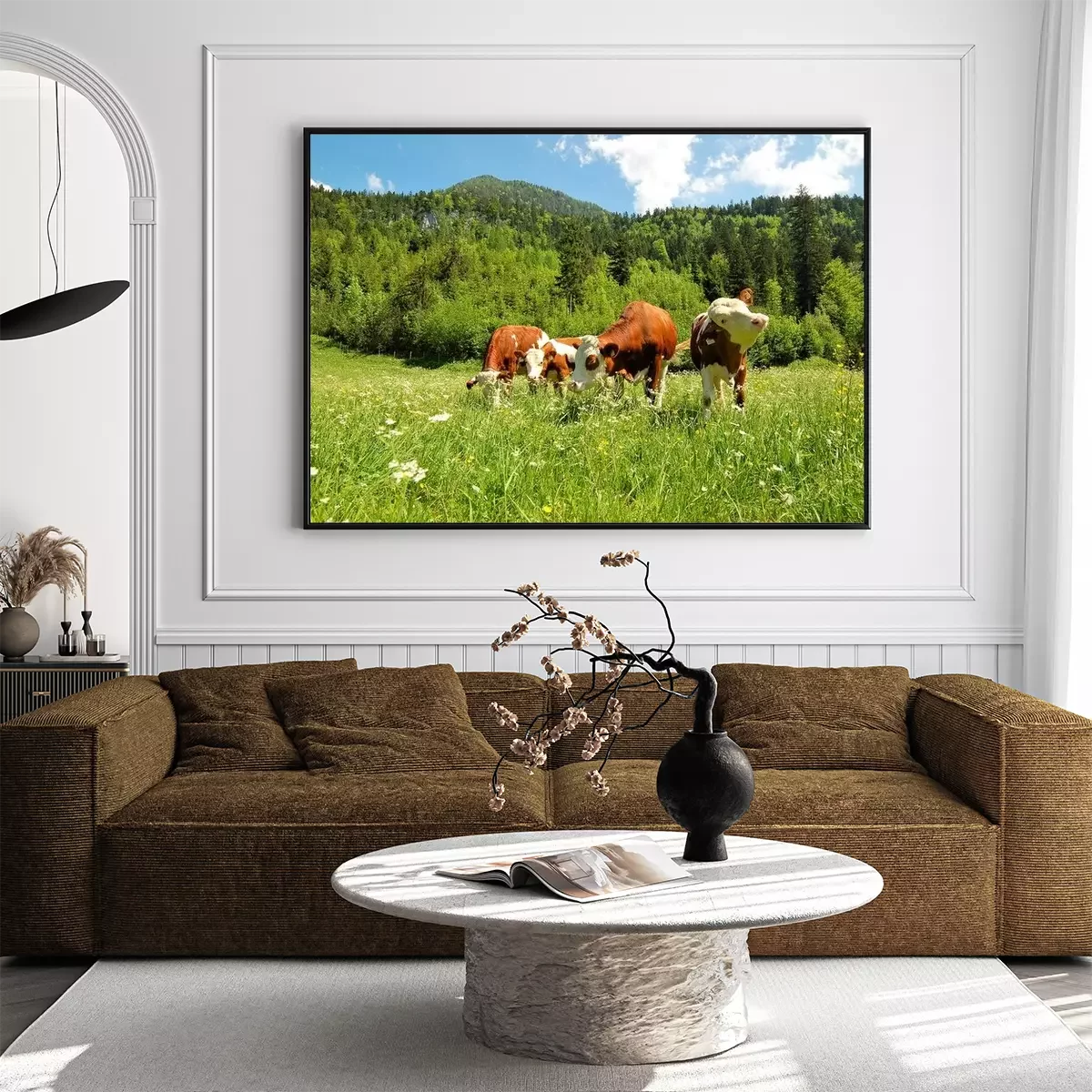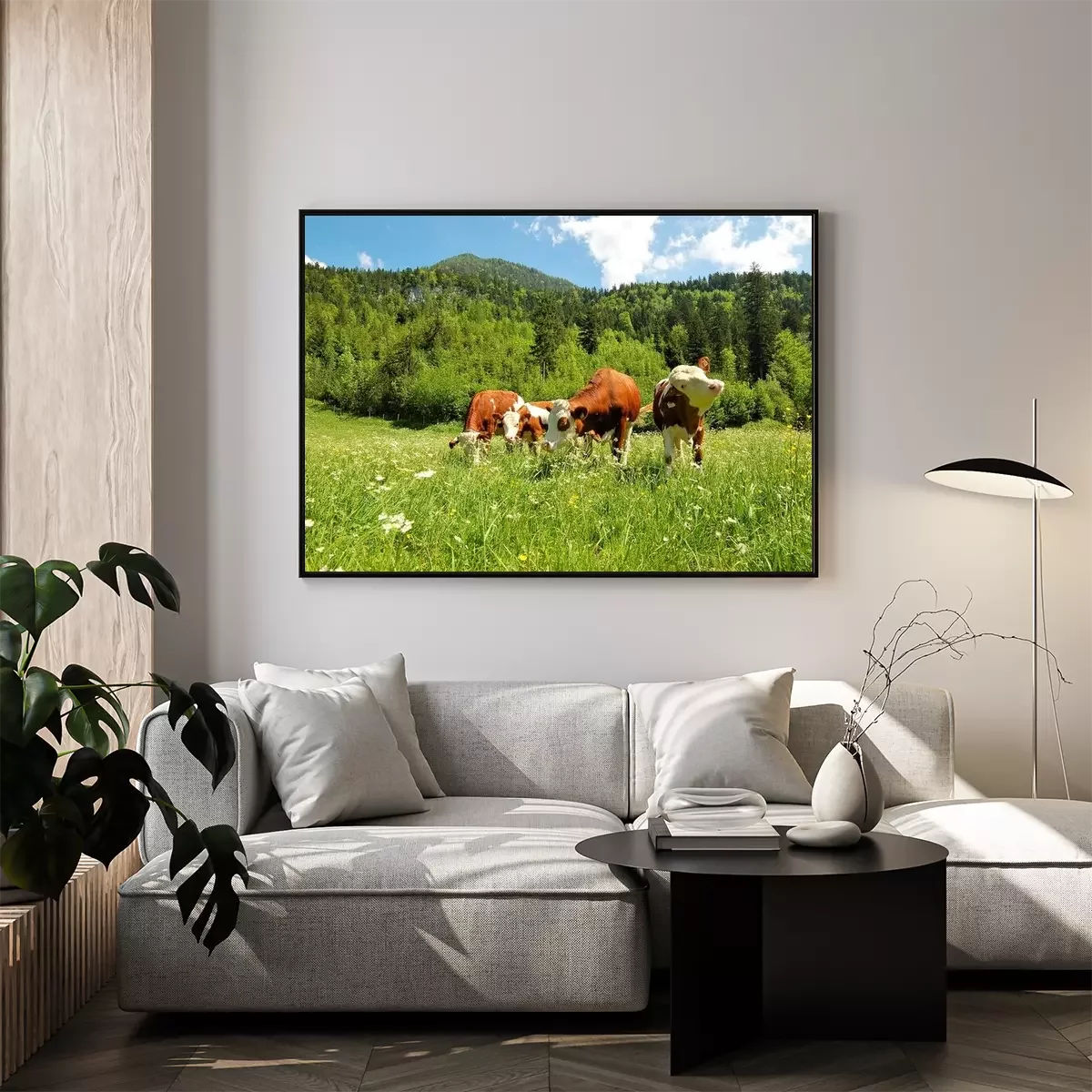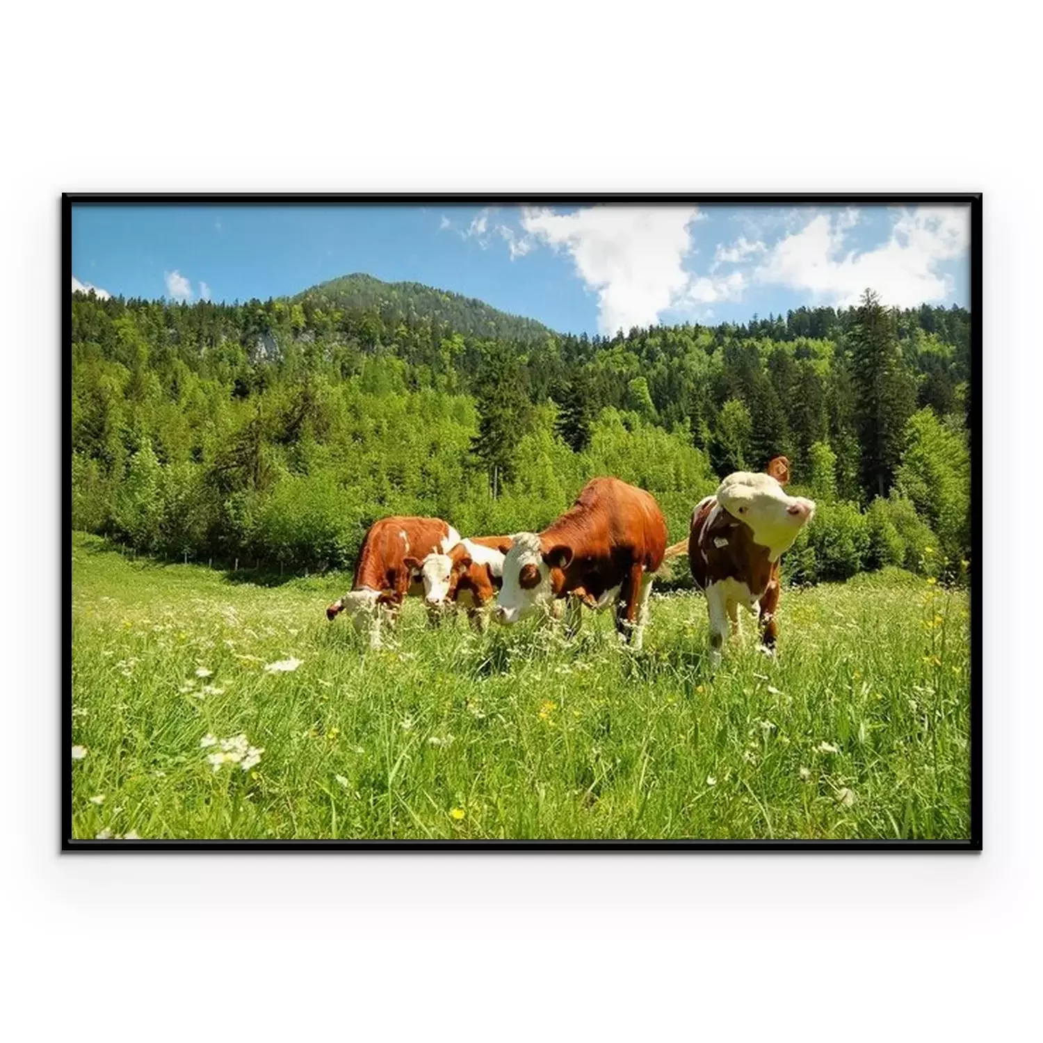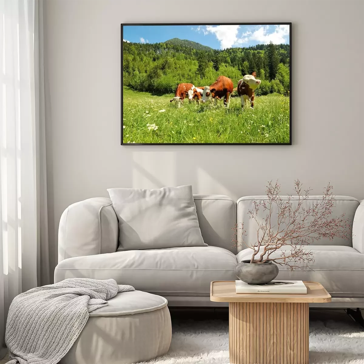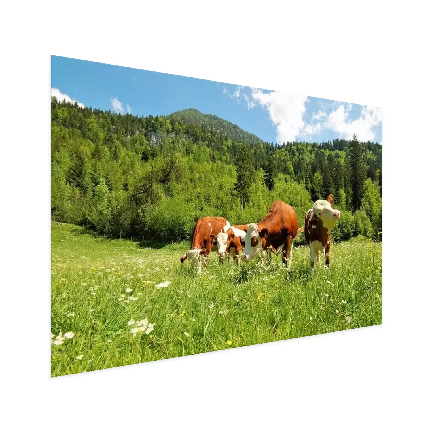Poster: Niedliche Kühe für Kinder auf einer grünen Wiese
