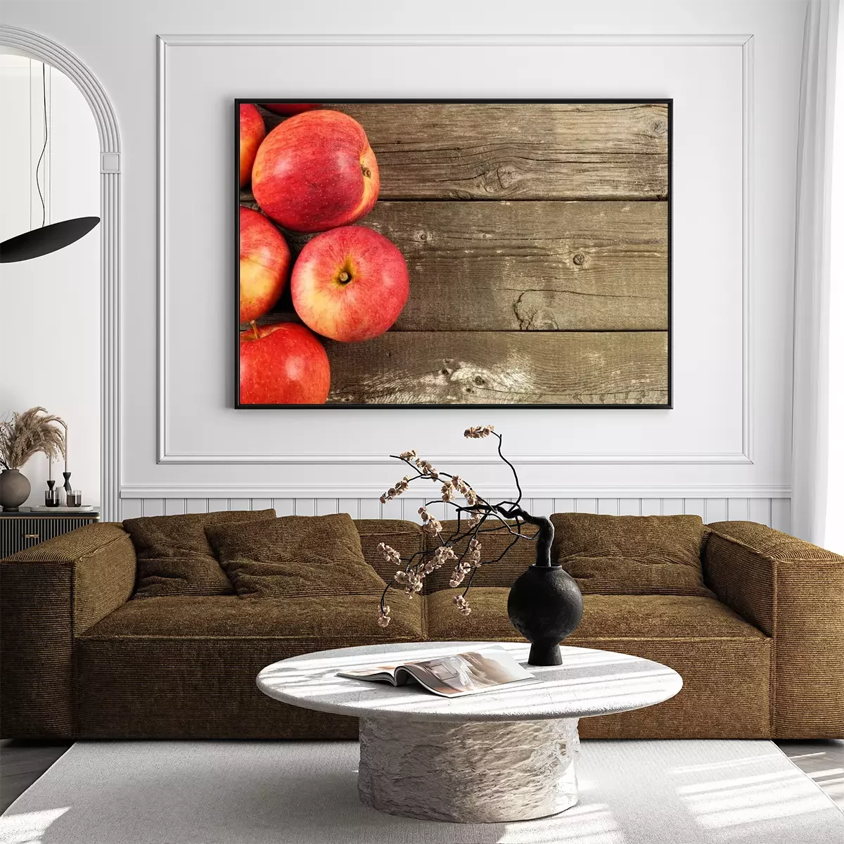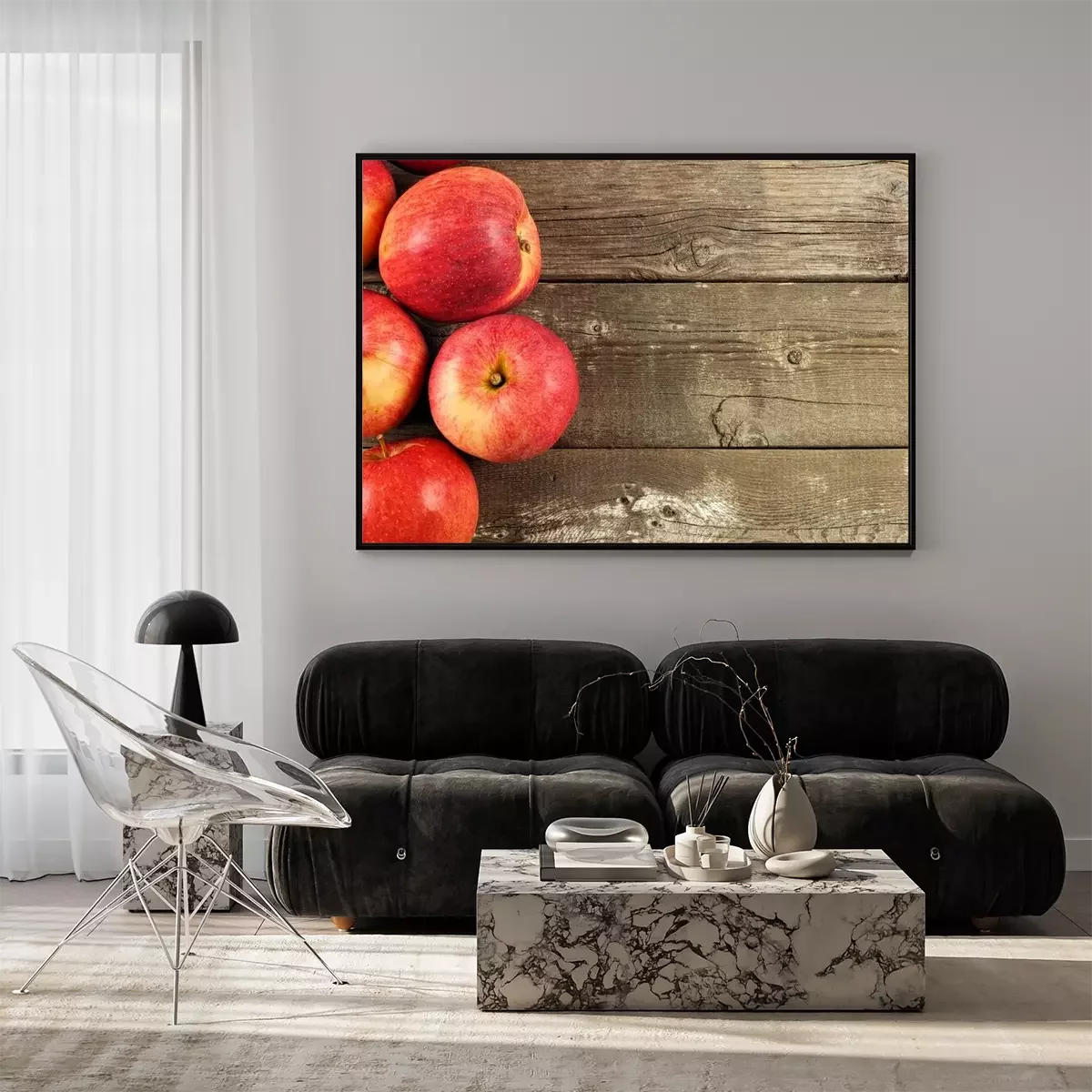Poster Obst Äpfel auf Holzbrettern platziert