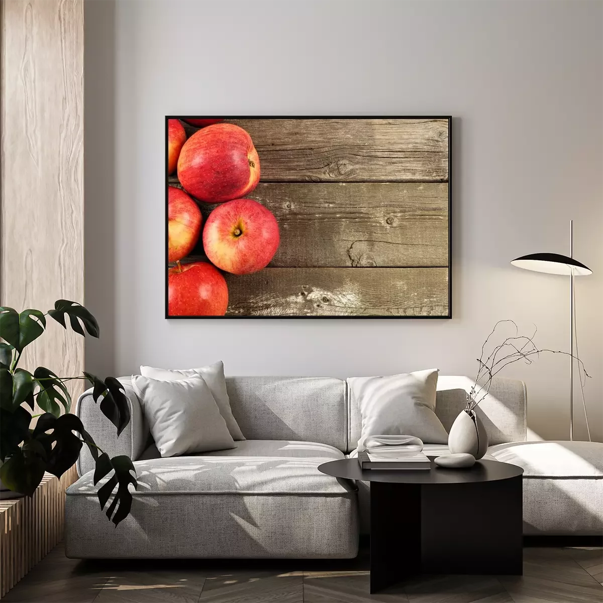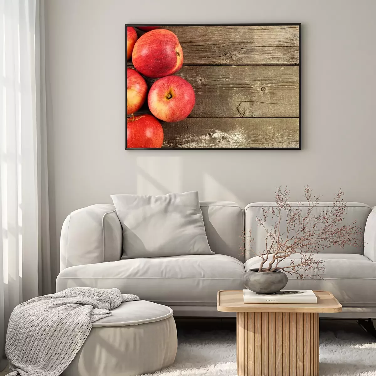 Poster: Obst Äpfel auf Holzbrettern platziert