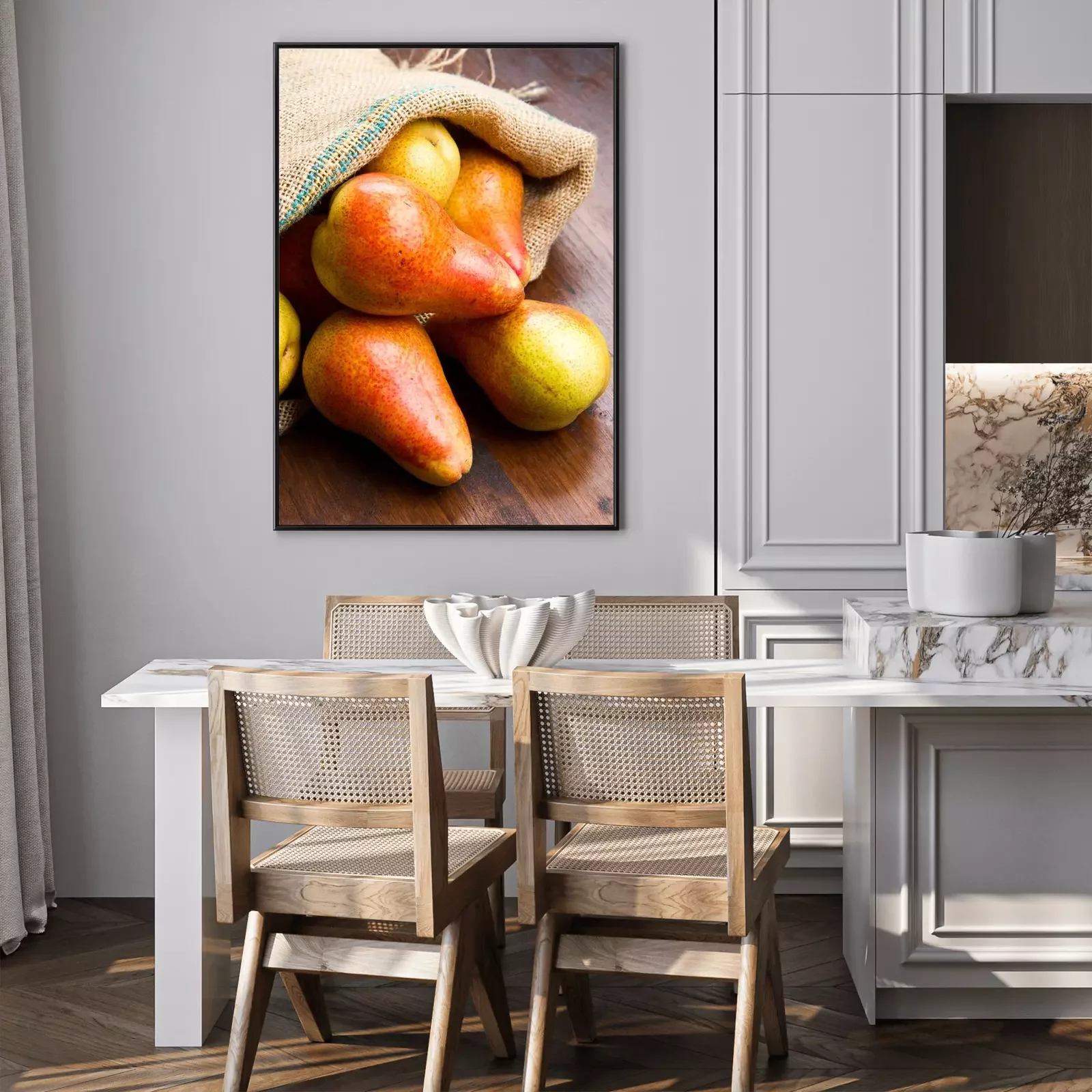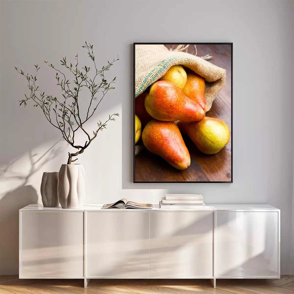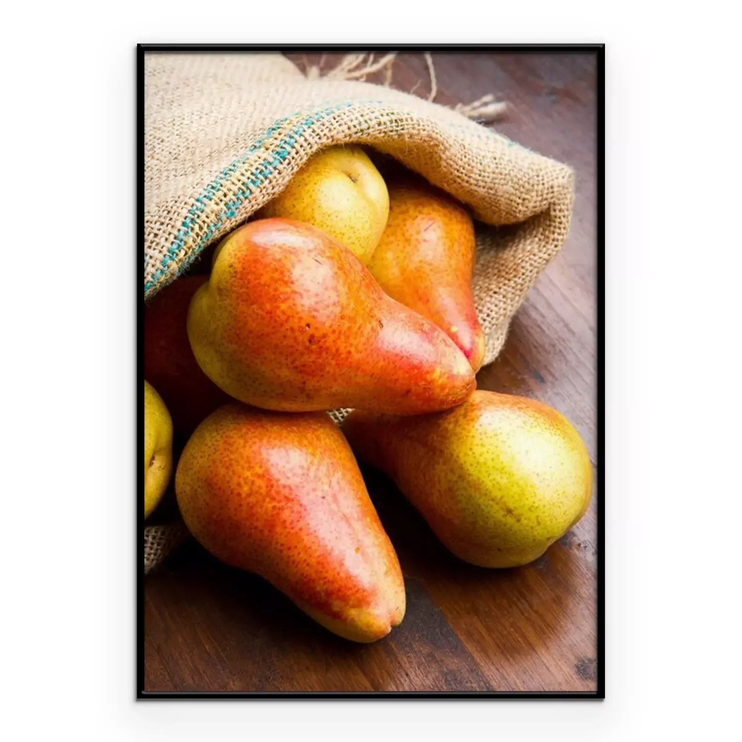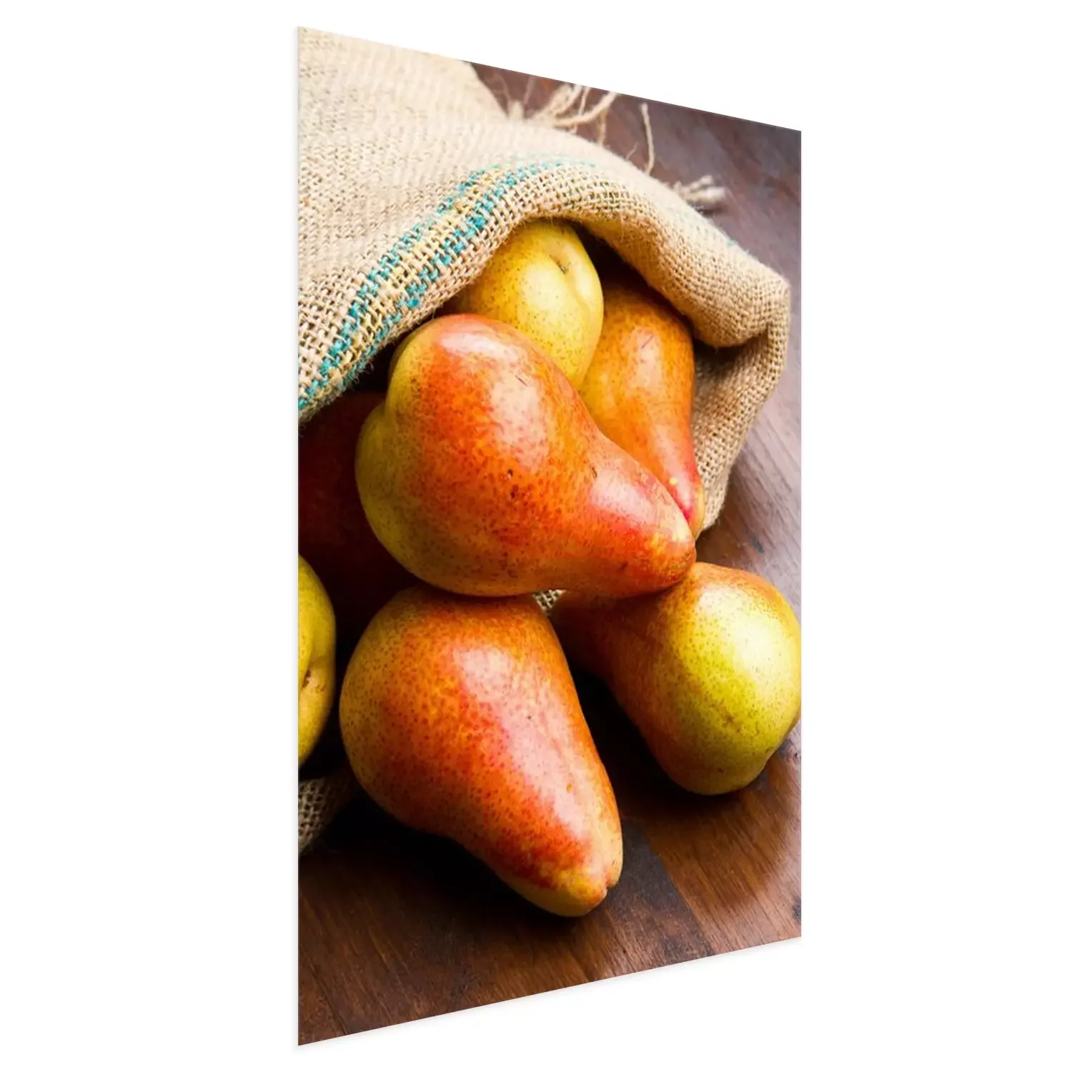 Poster Obst Birnen aus einem Jutesack verschüttet