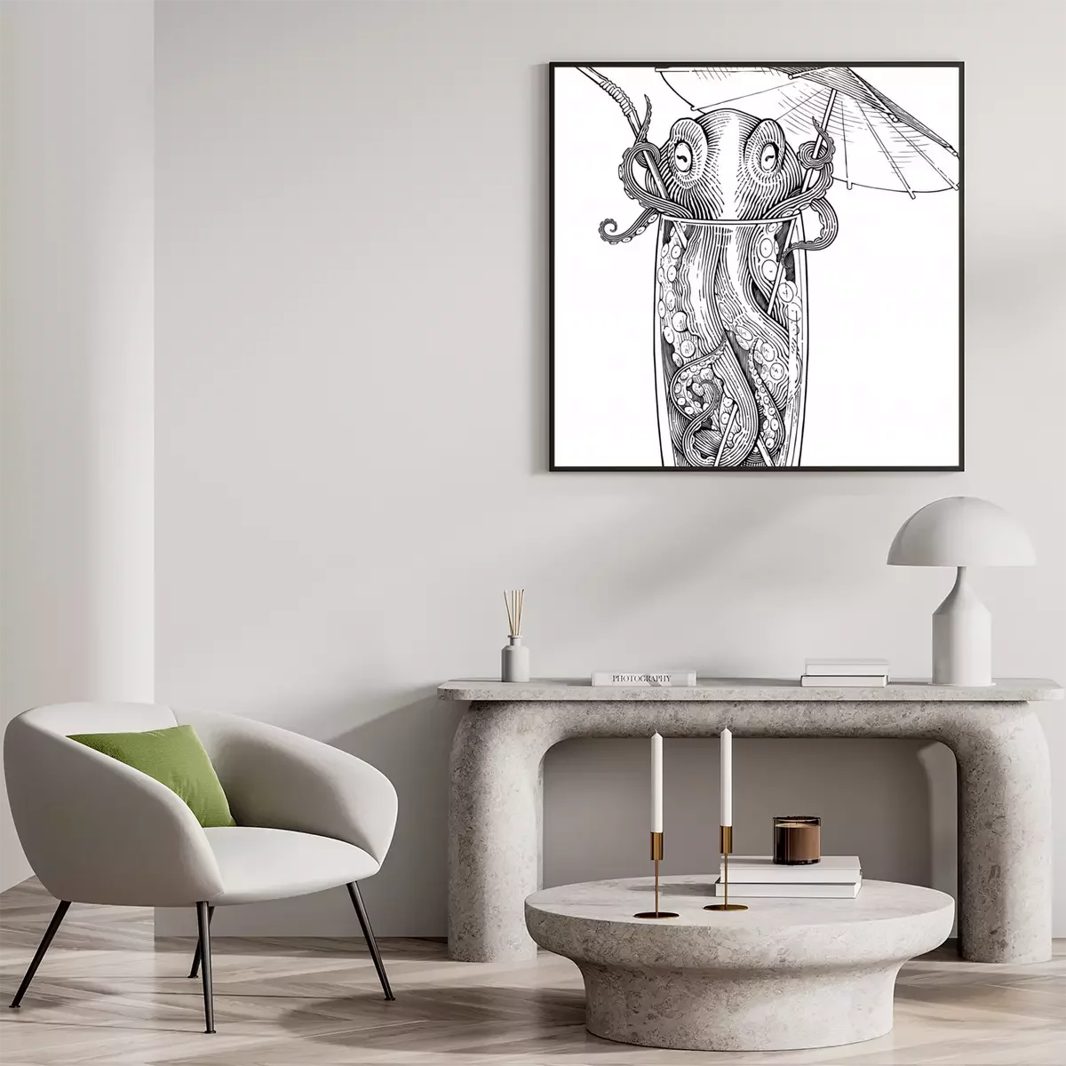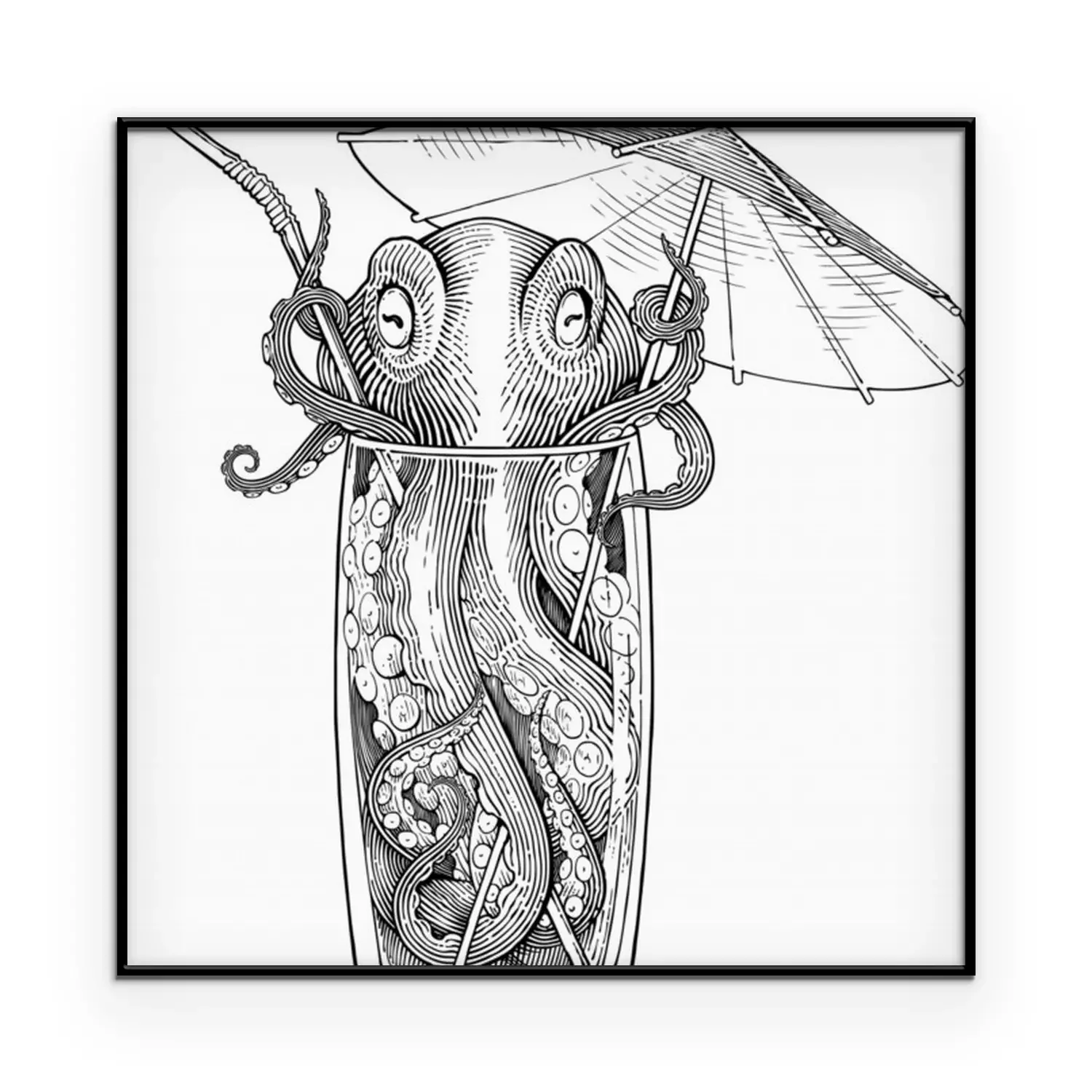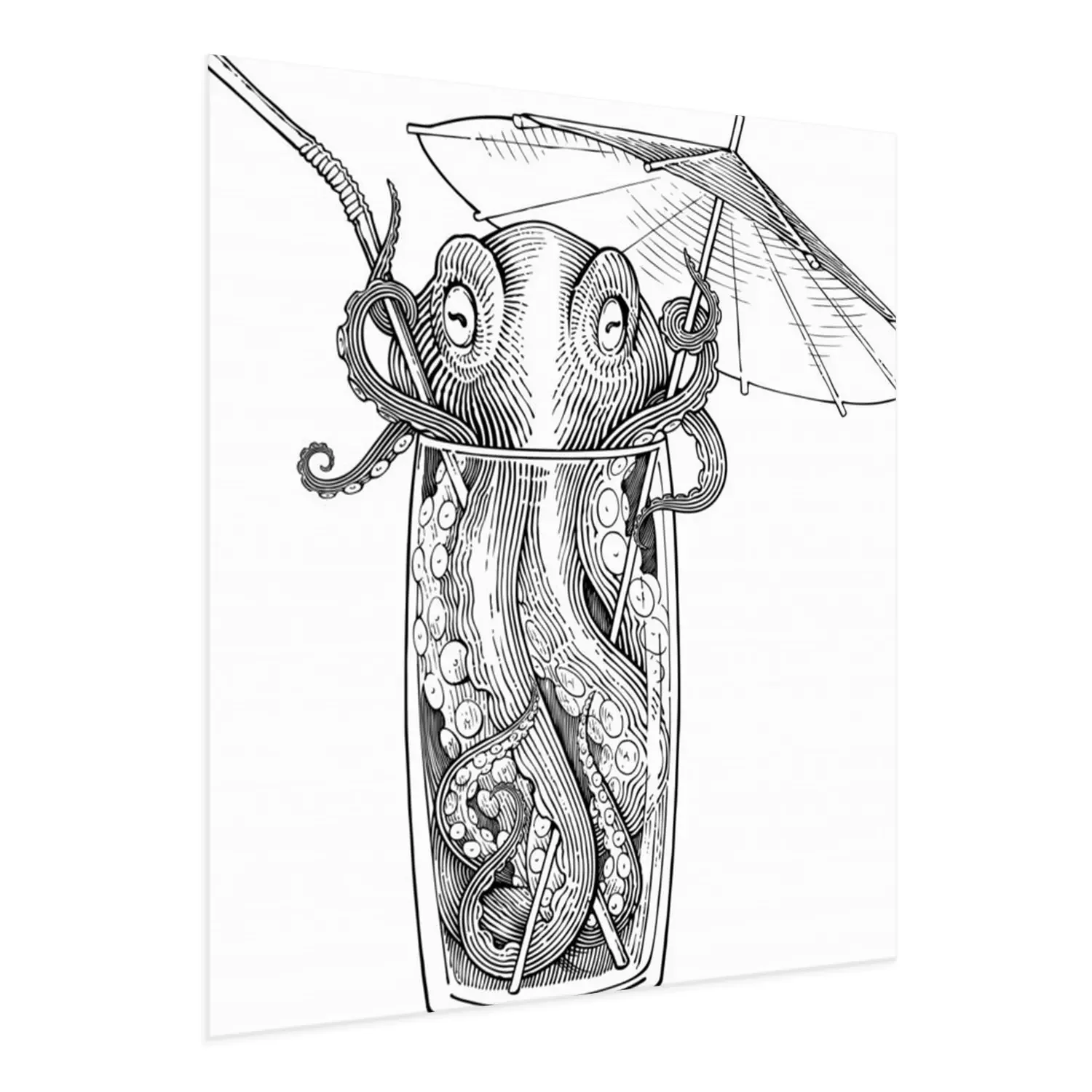 Poster: Oktopus in einem Getränk mit Sonnenschirm