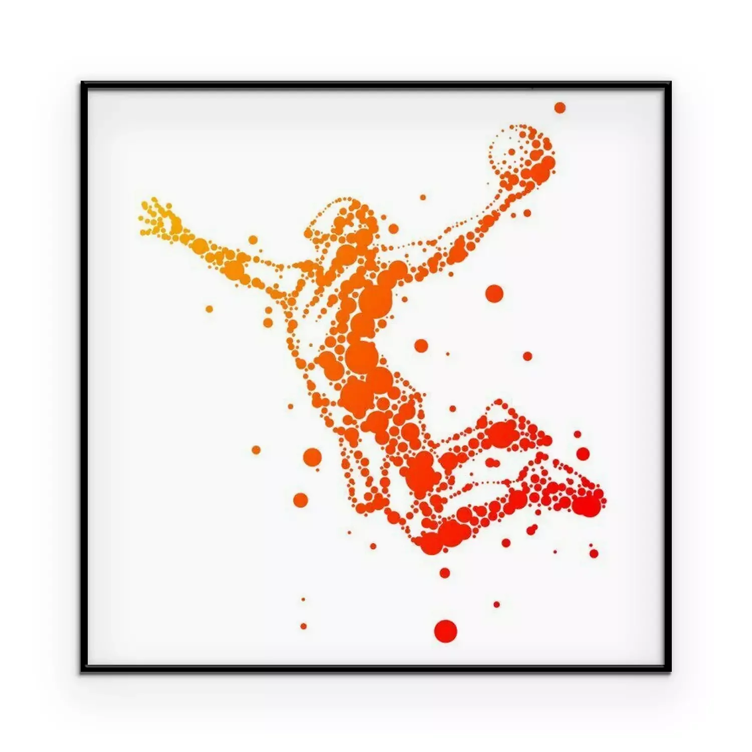 Poster: Orangefarbene abstrakte Figur eines Basketballspielers