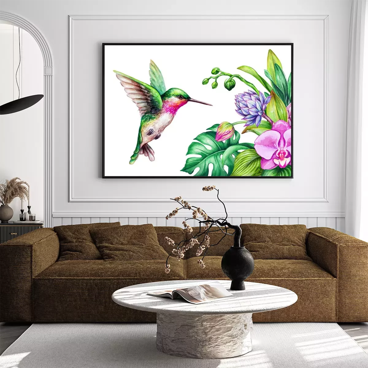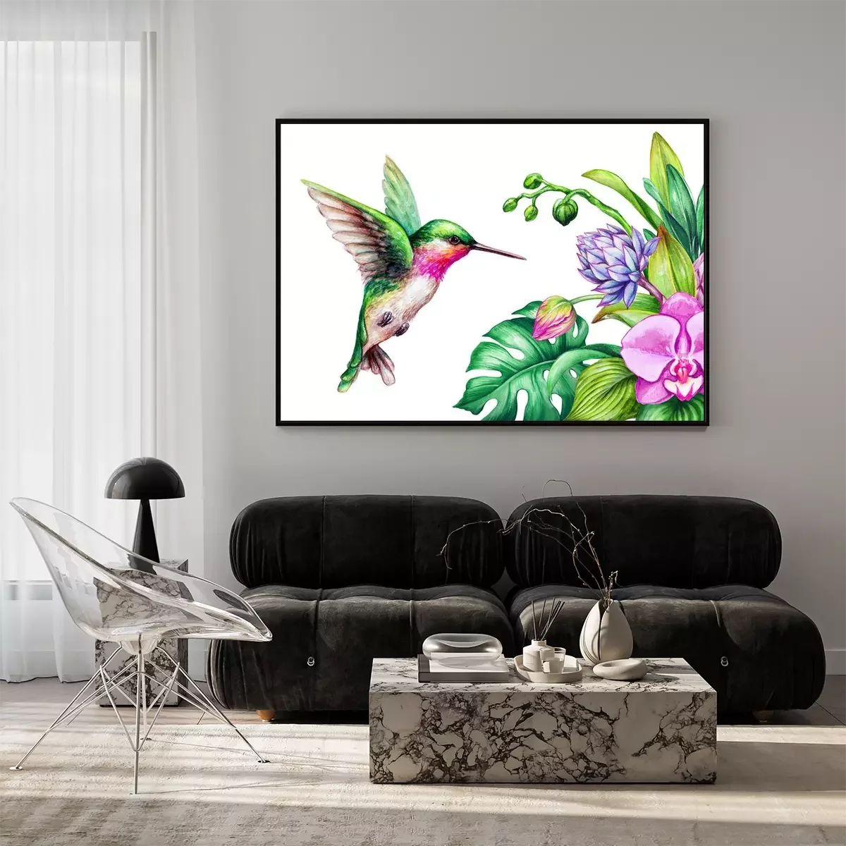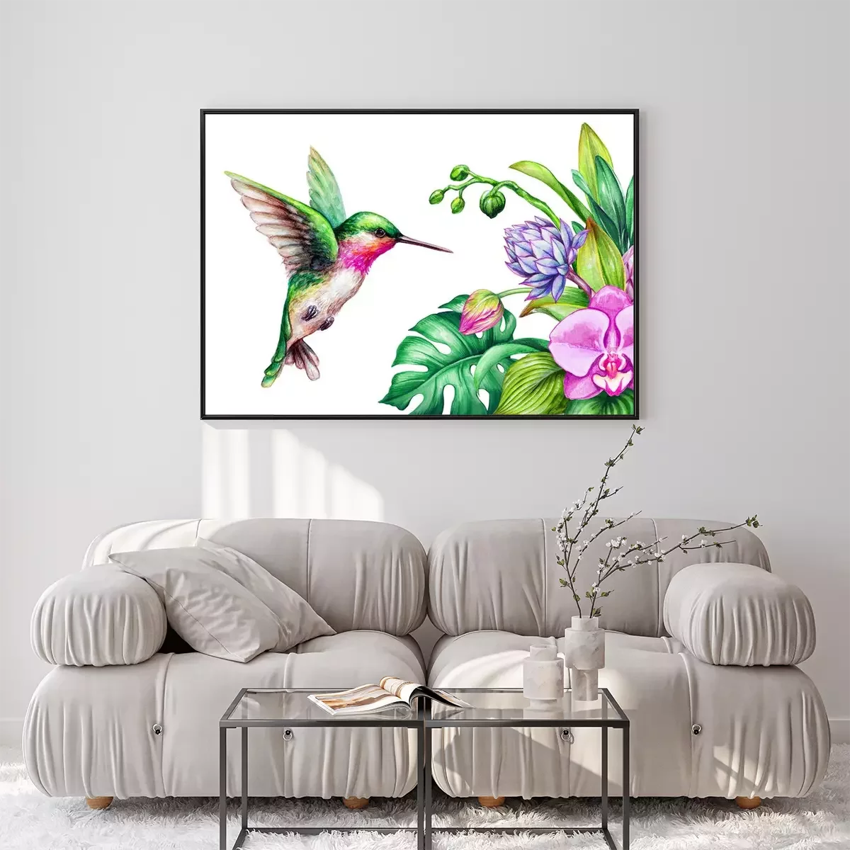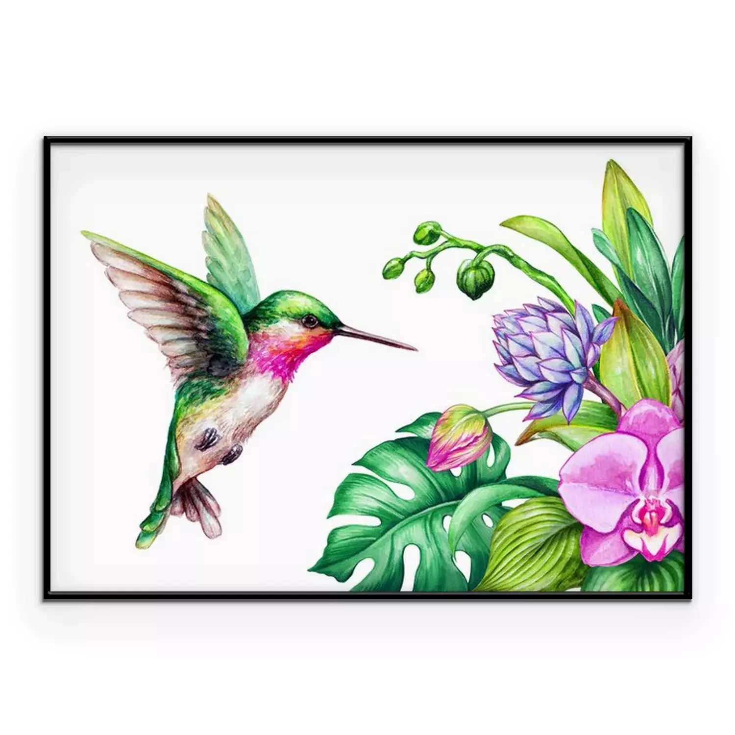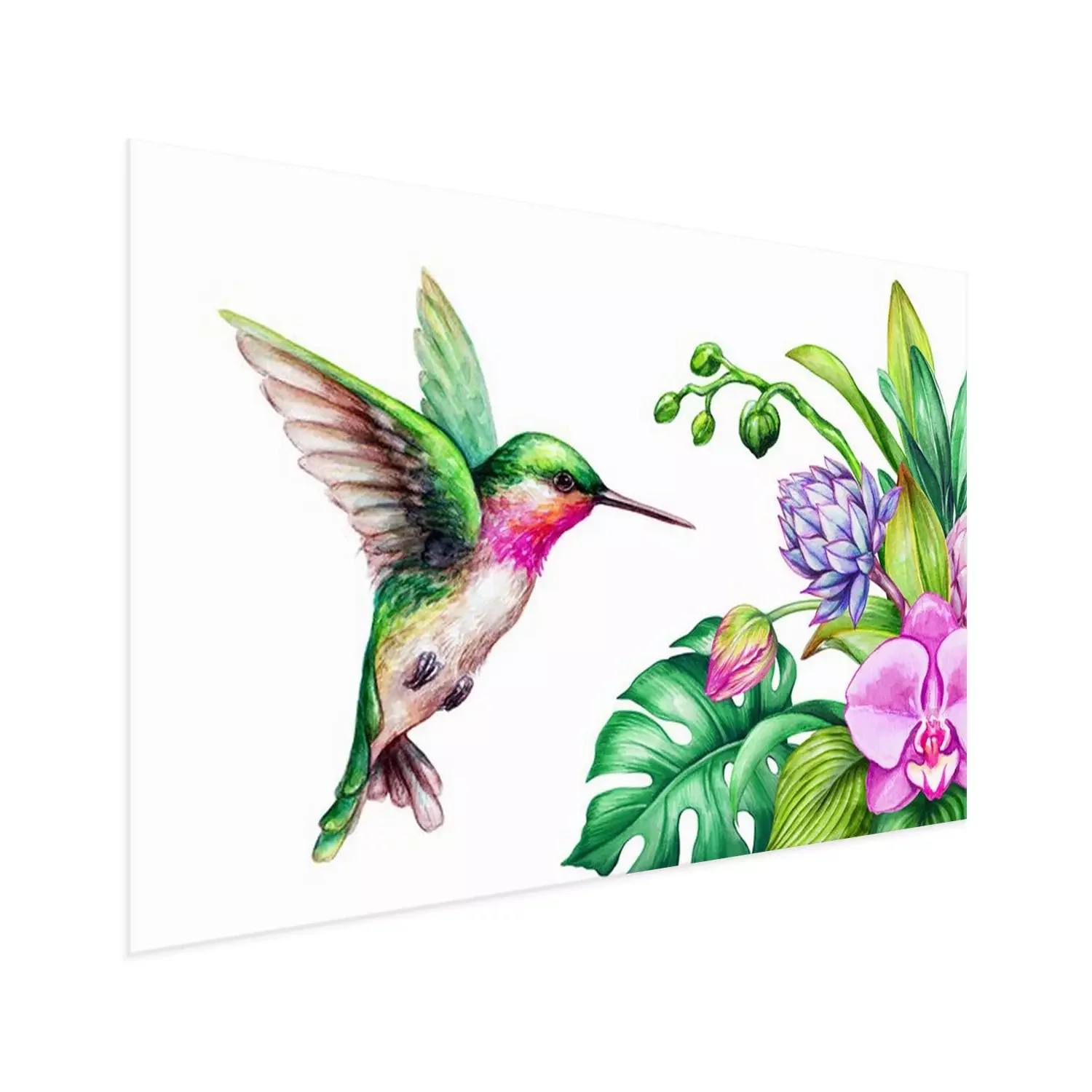 Poster: Orchidee im Strauß und bunter Kolibri