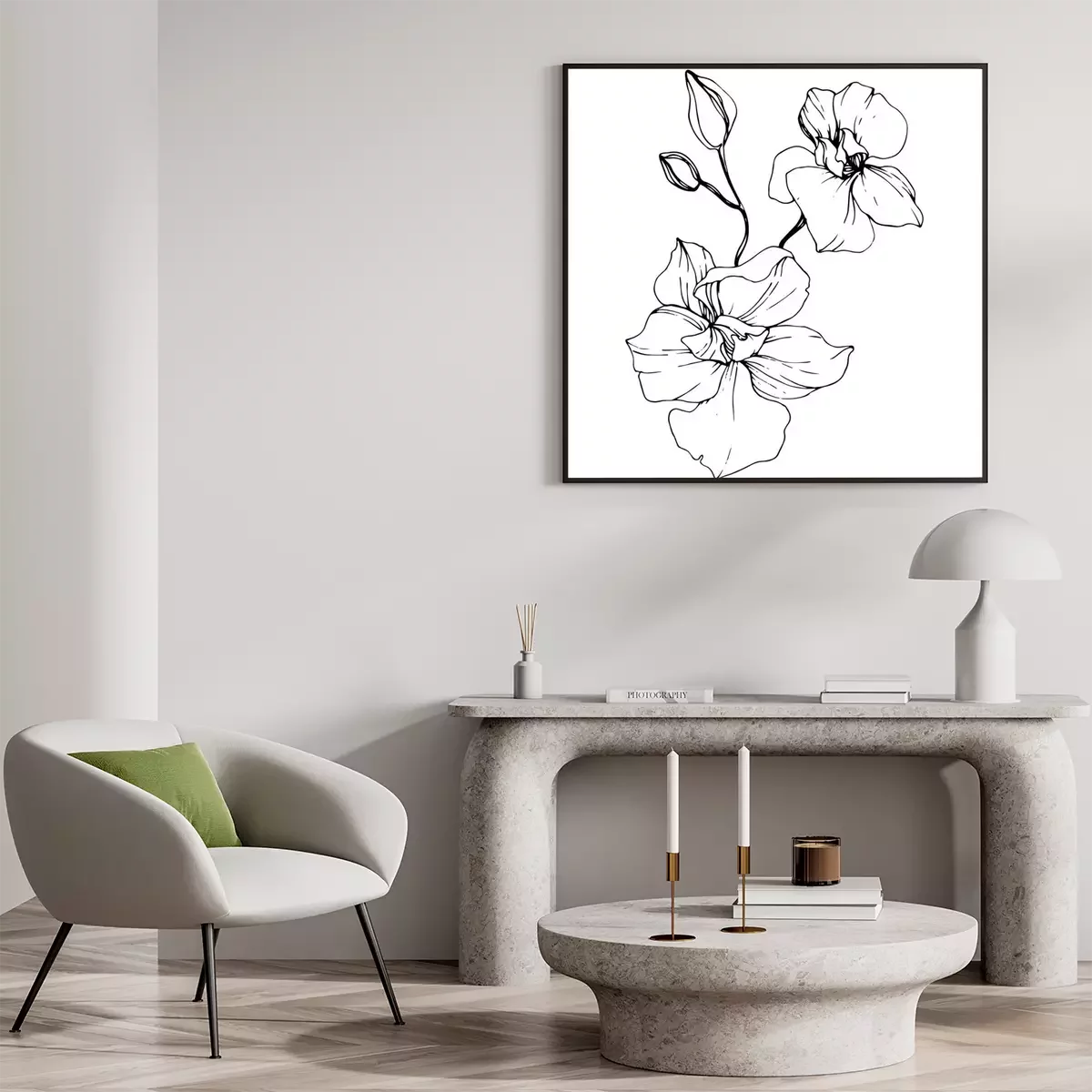 Poster: Orchidee minimalistisch in Schwarz und Weiß