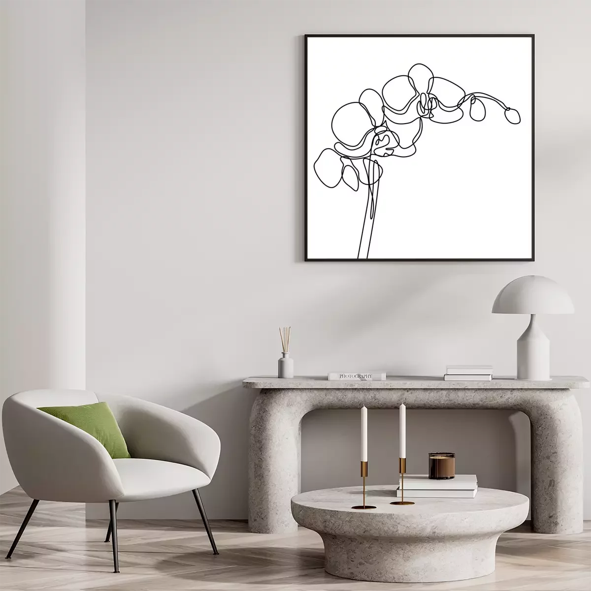 Poster Orchidee mit einer einzigen Linie skizziert