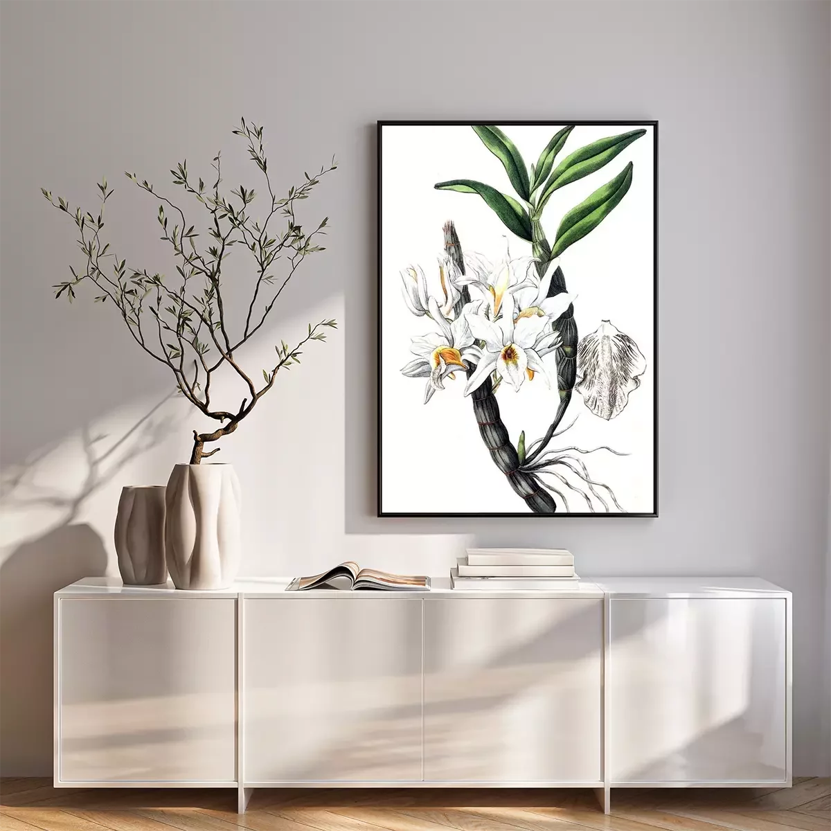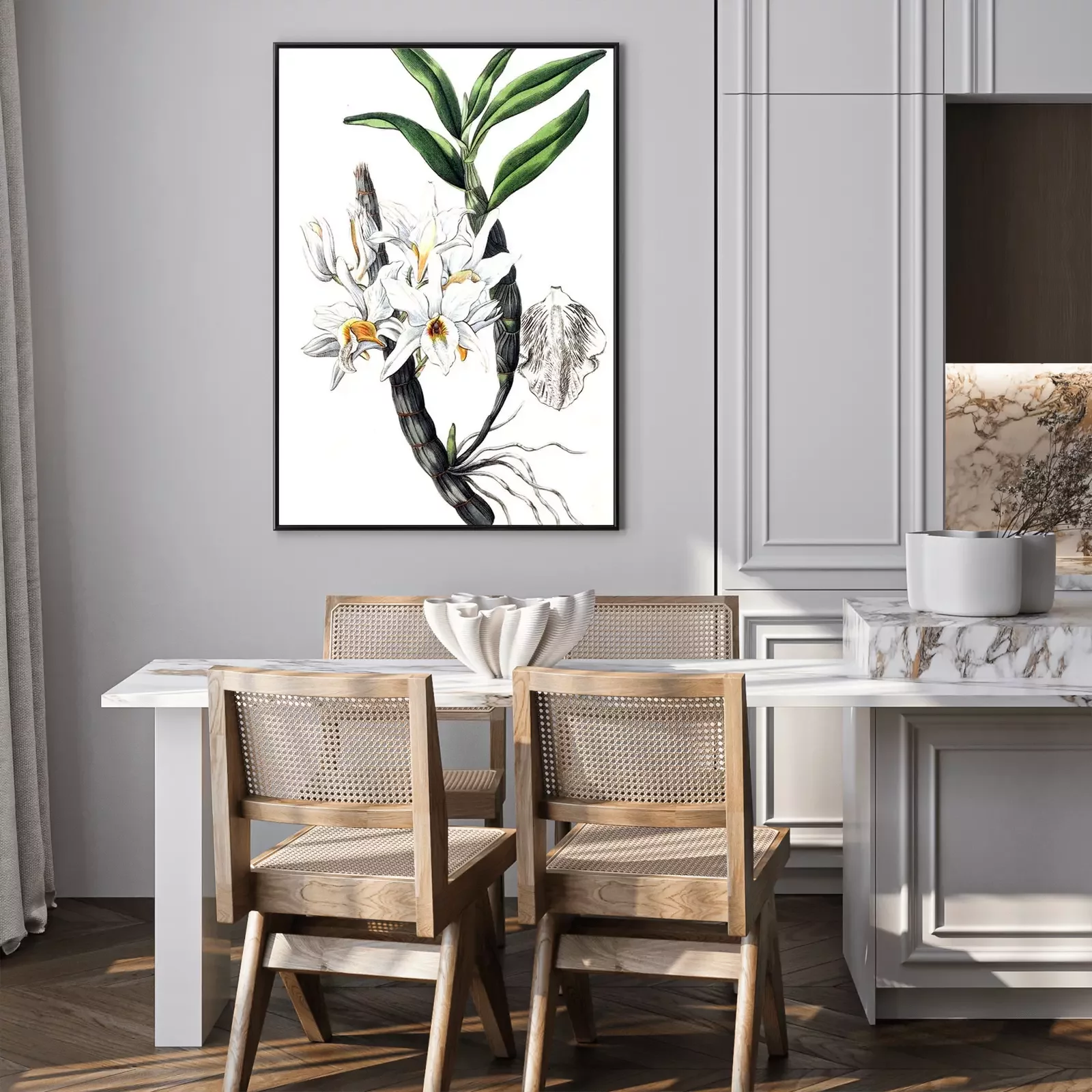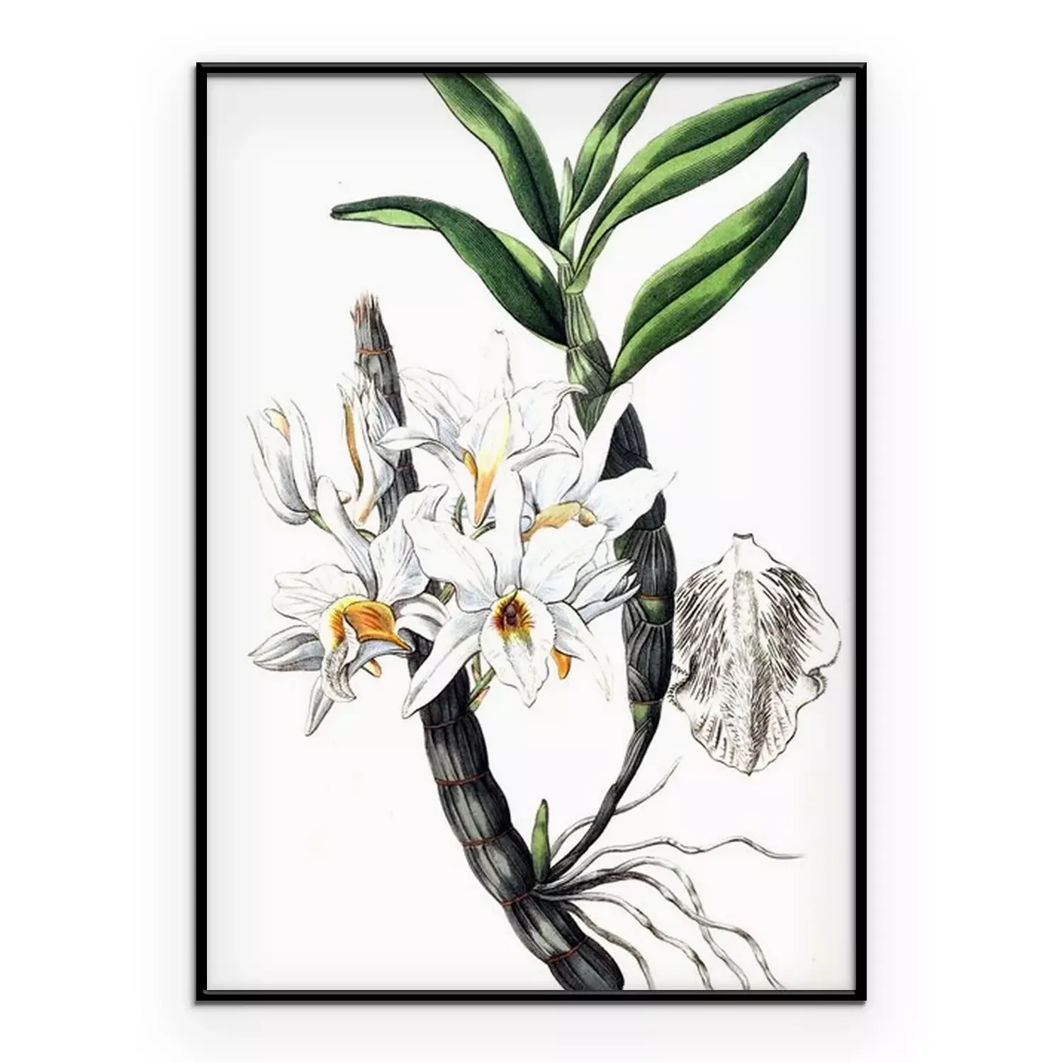 Poster: Orchidee mit gelber Mitte auf grünem Stiel
