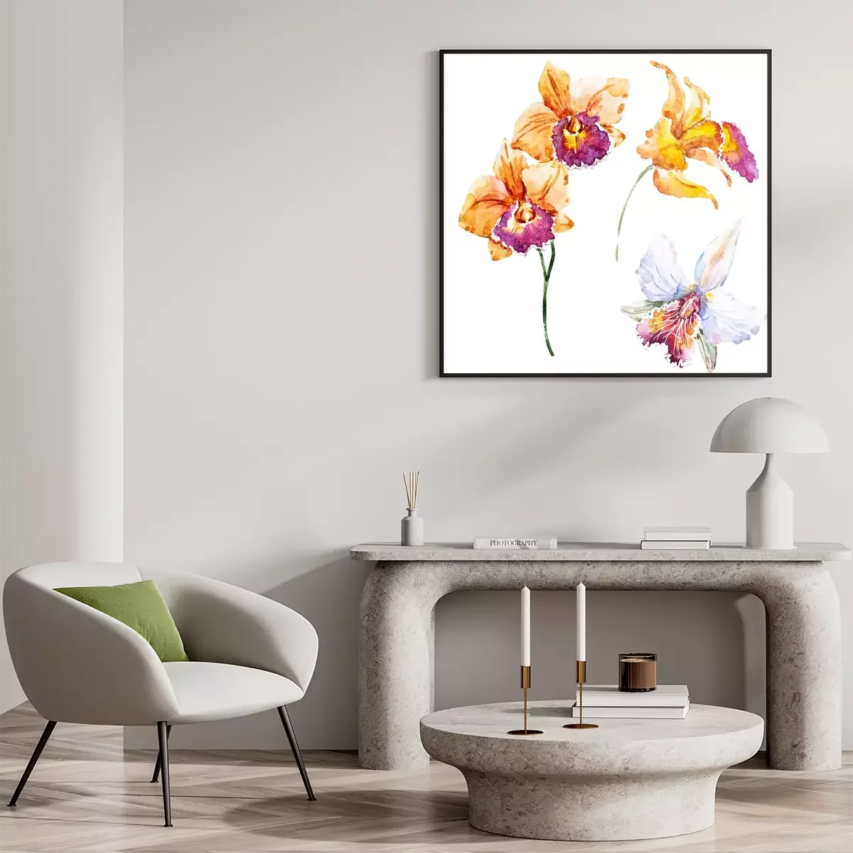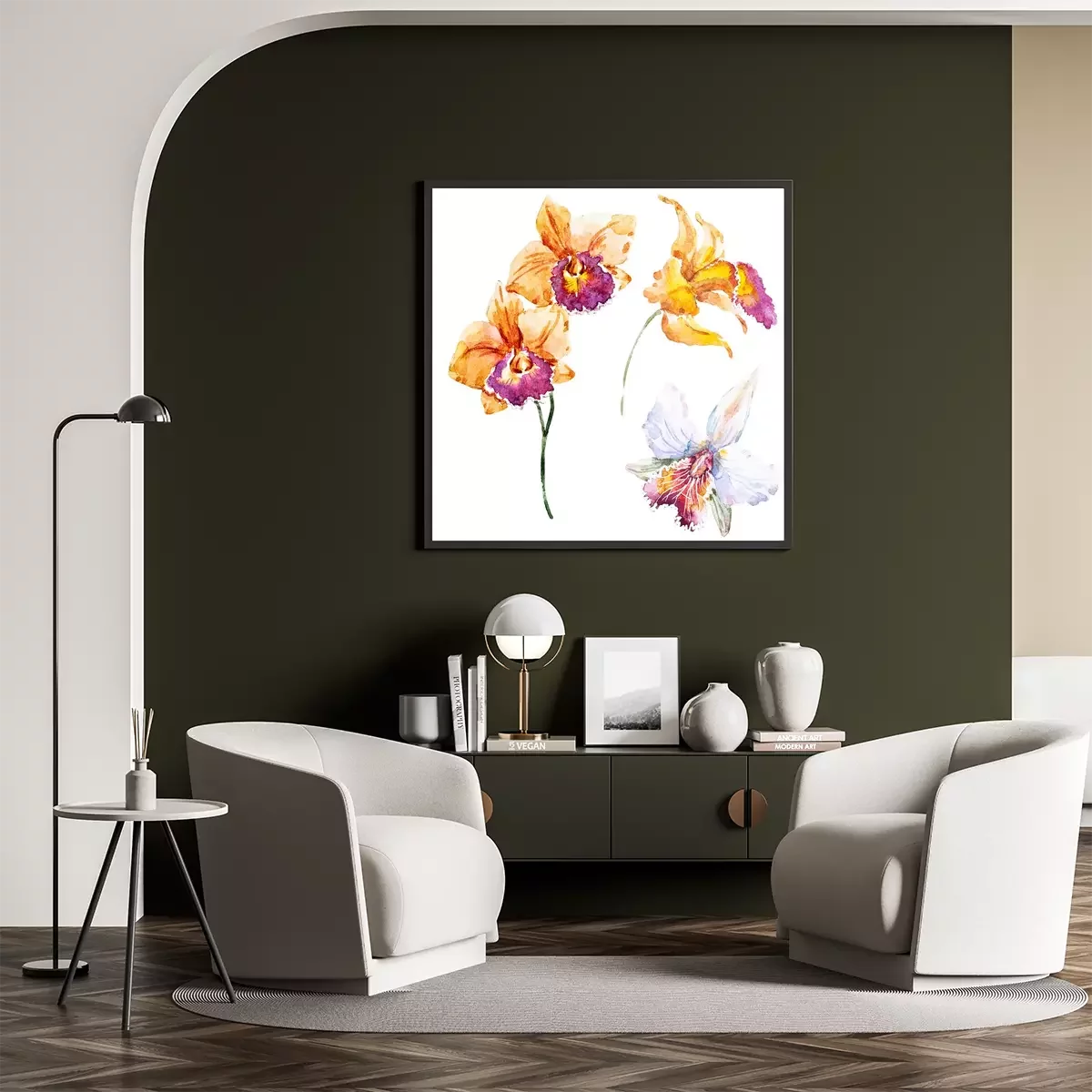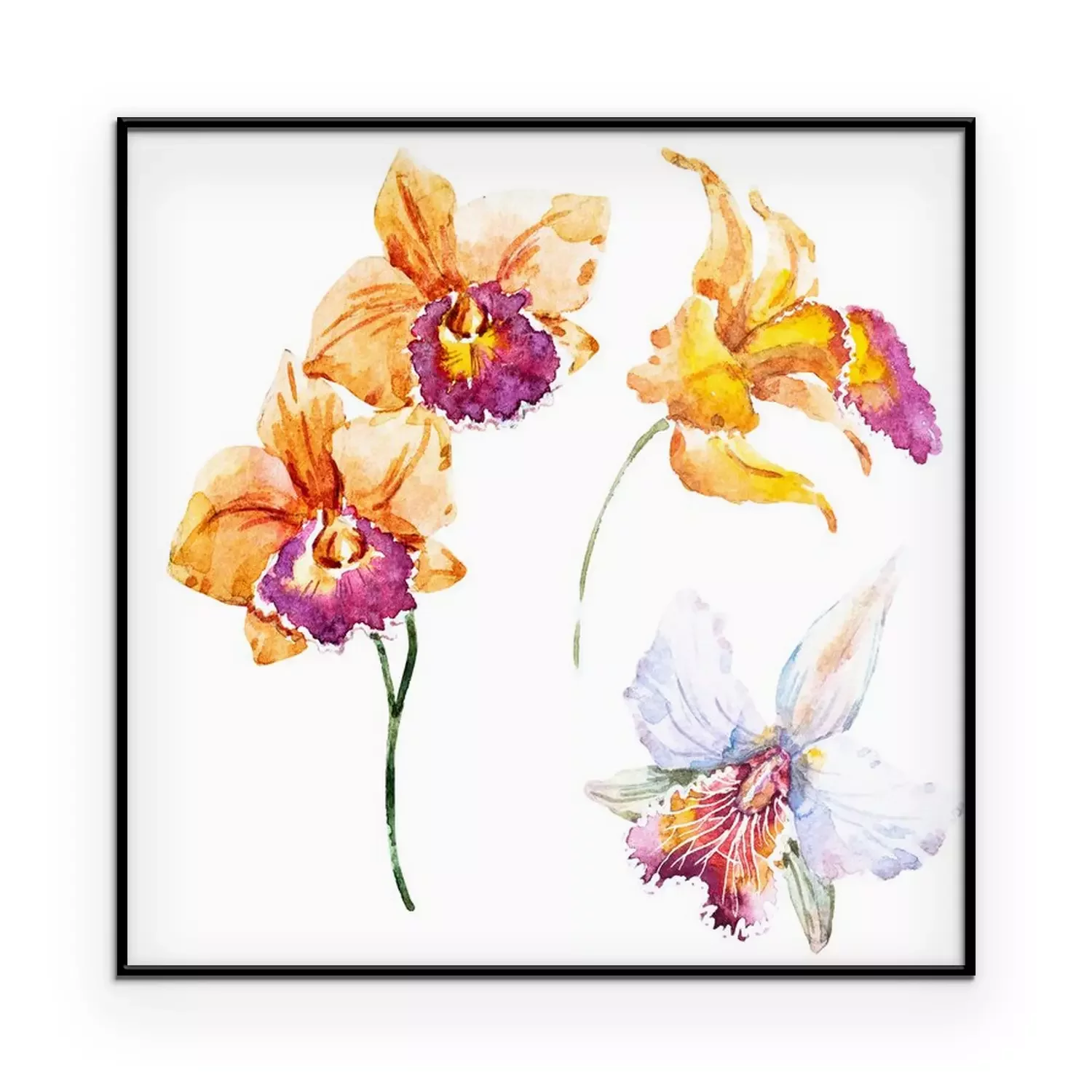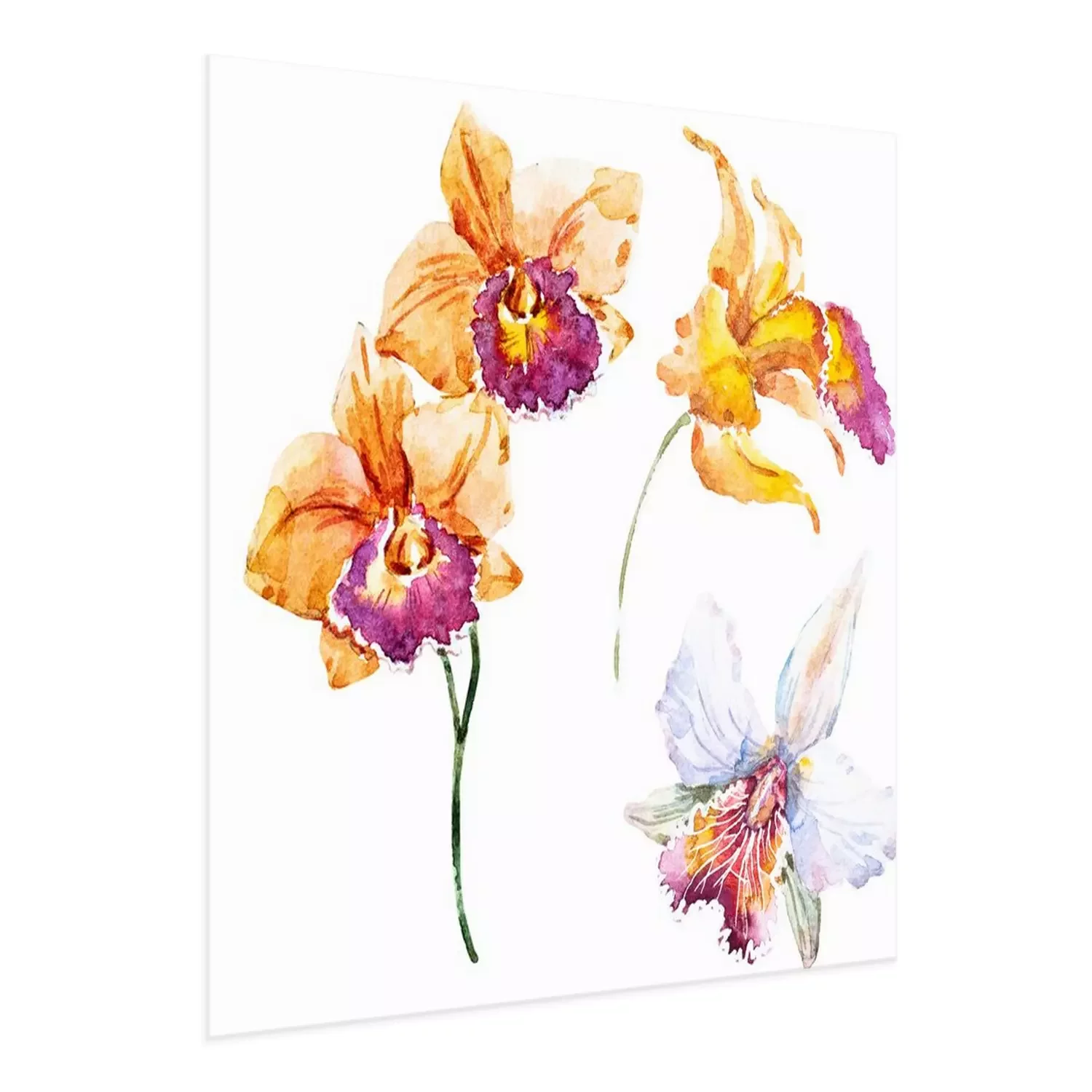Poster Orchidee orange Blütenblätter mit Aquarell gemalt