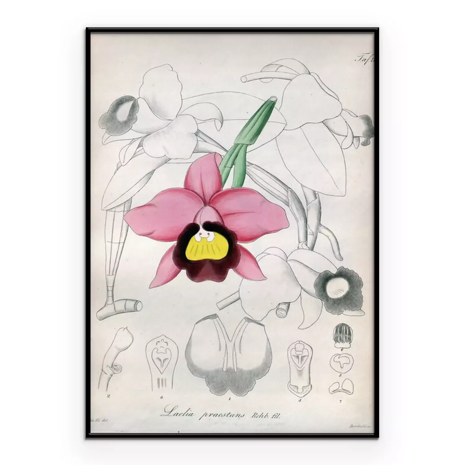 Aufbau einer Orchidee auf botanischer Zeichnung