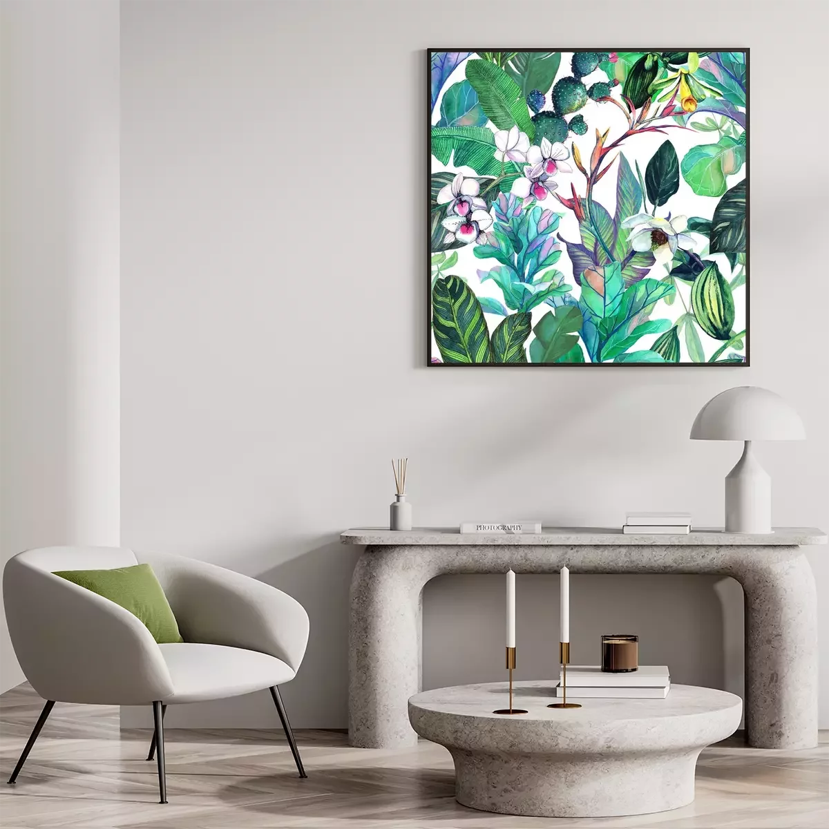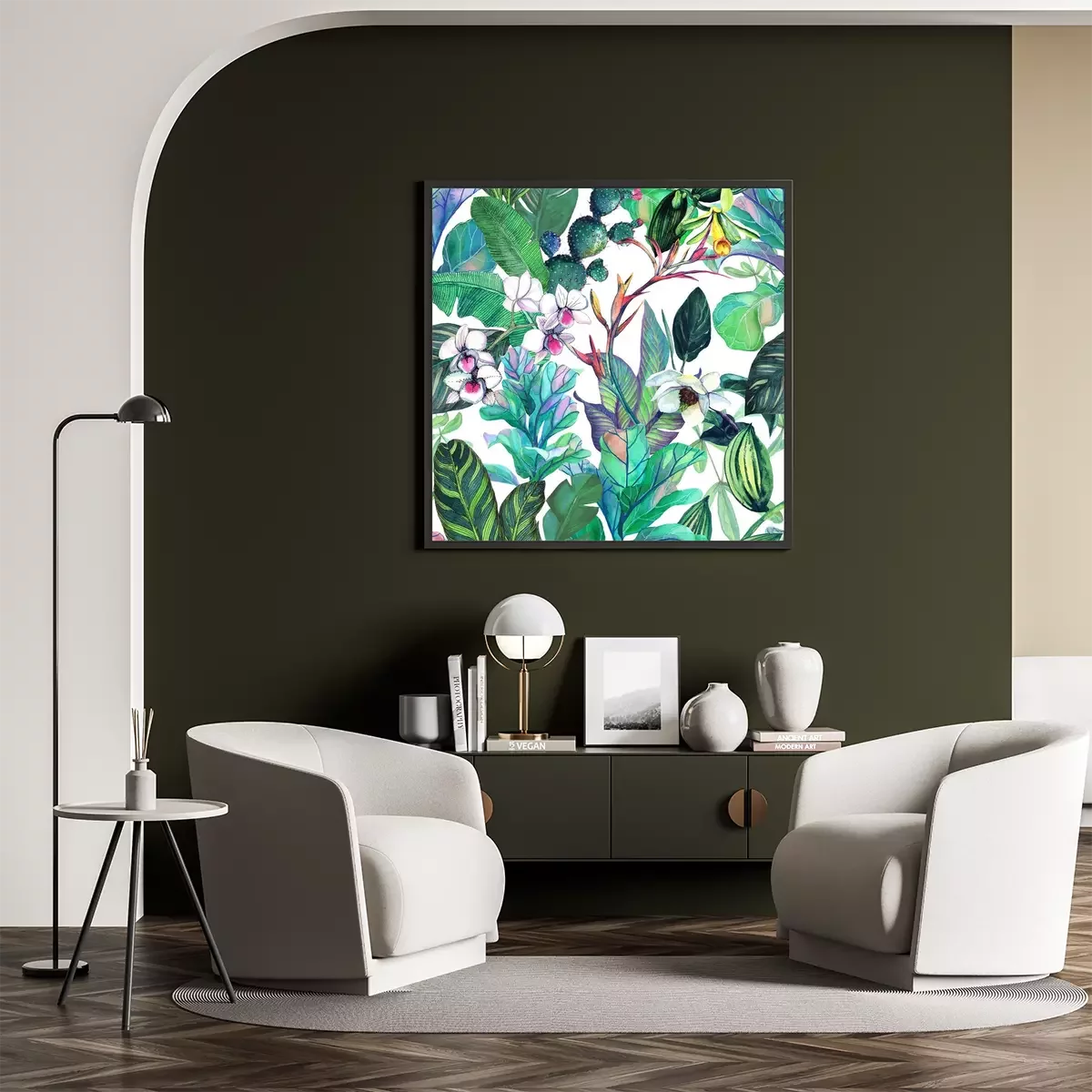 Poster: Orchidee weiß inmitten von exotischem Grün