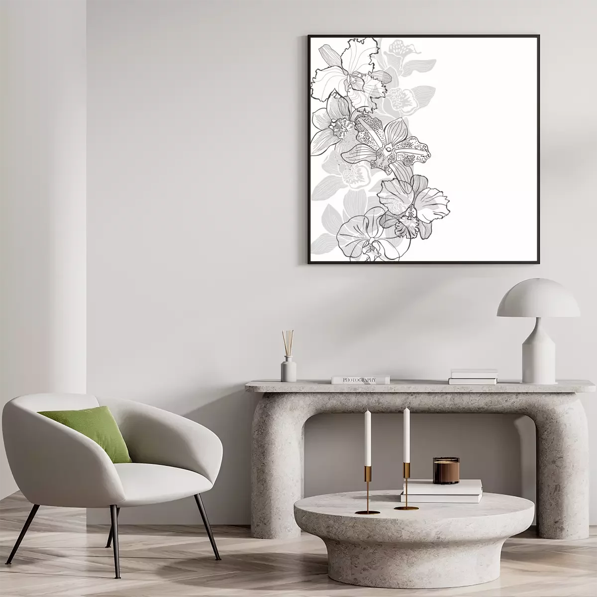 Poster: Orchideen mit weißen und schwarzen Rändern