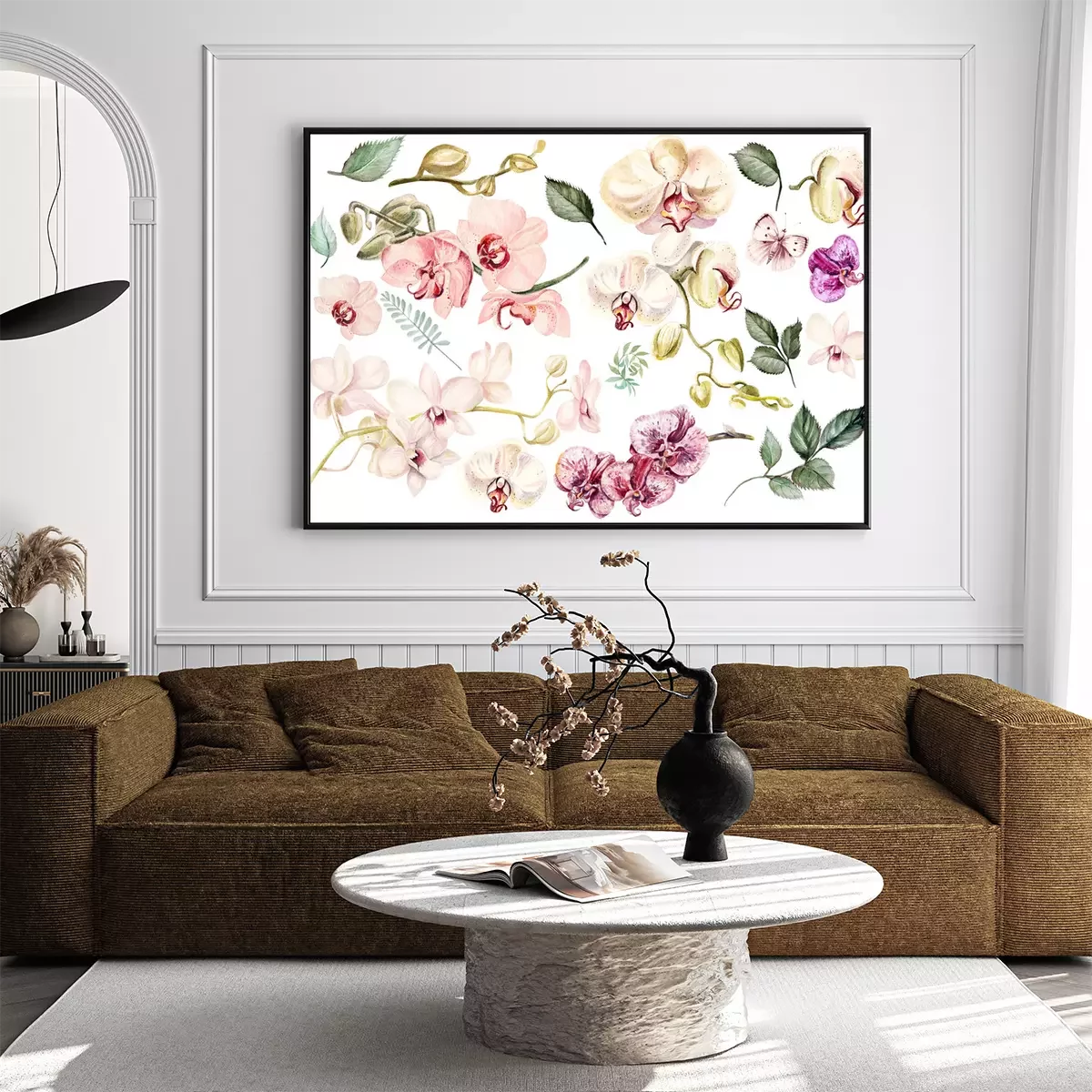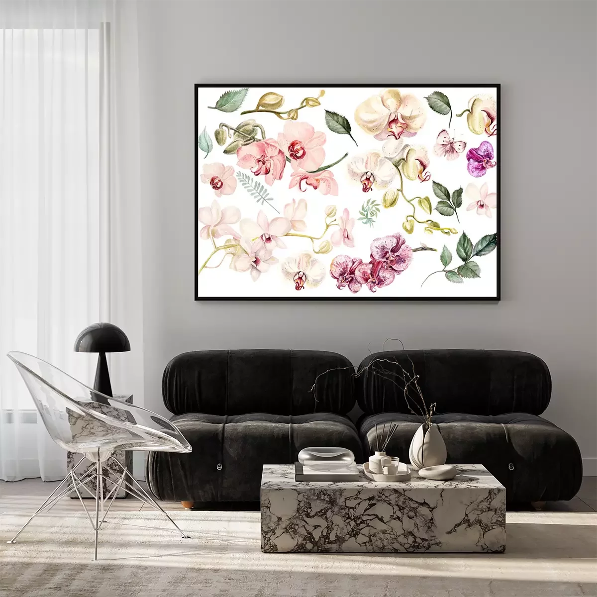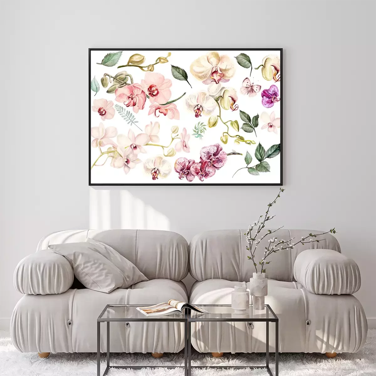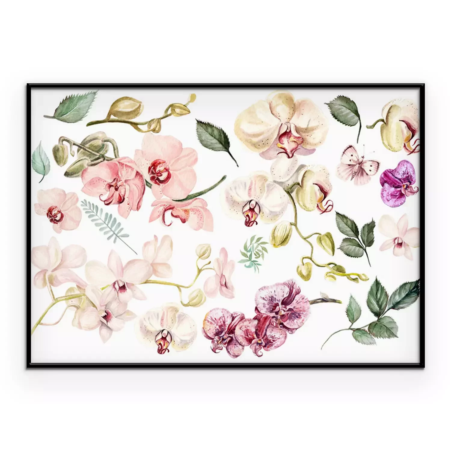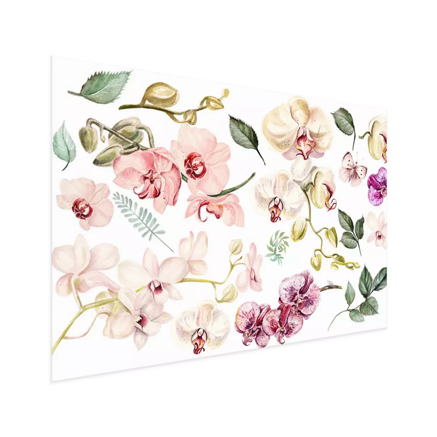 Poster: Orchideenblütenblätter Muster mit Blättern und Schmetterlingen