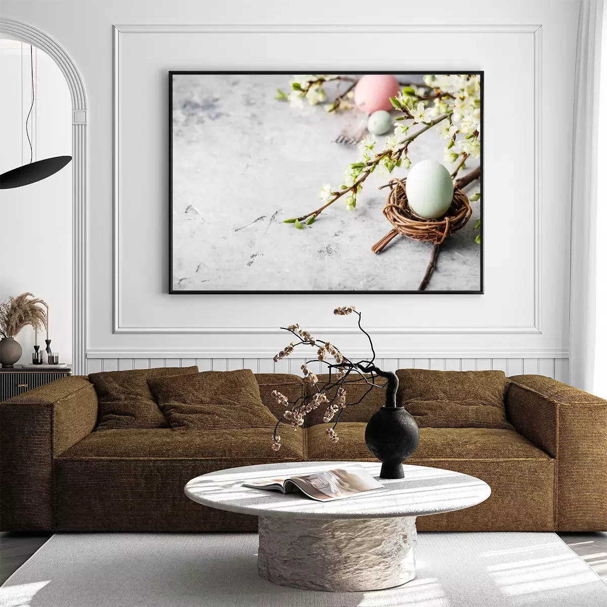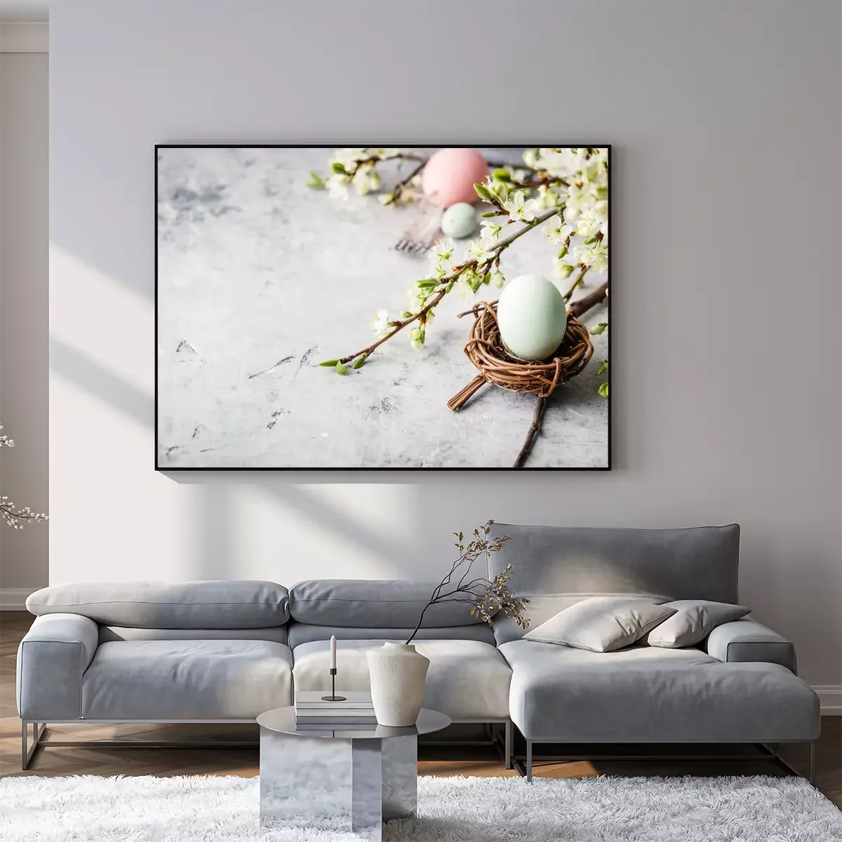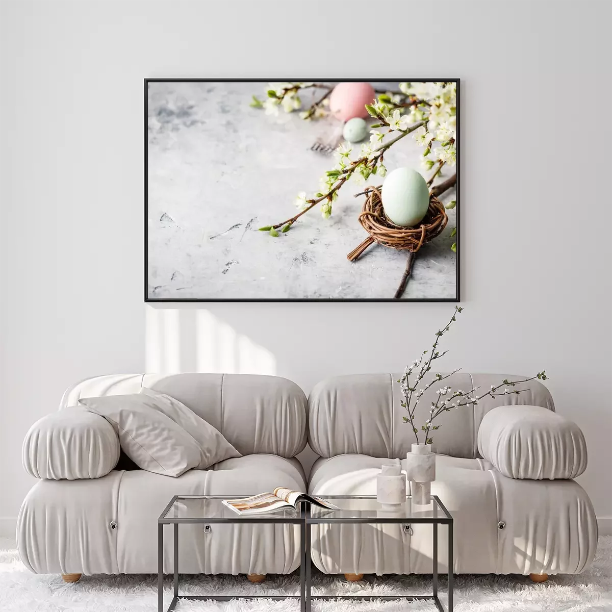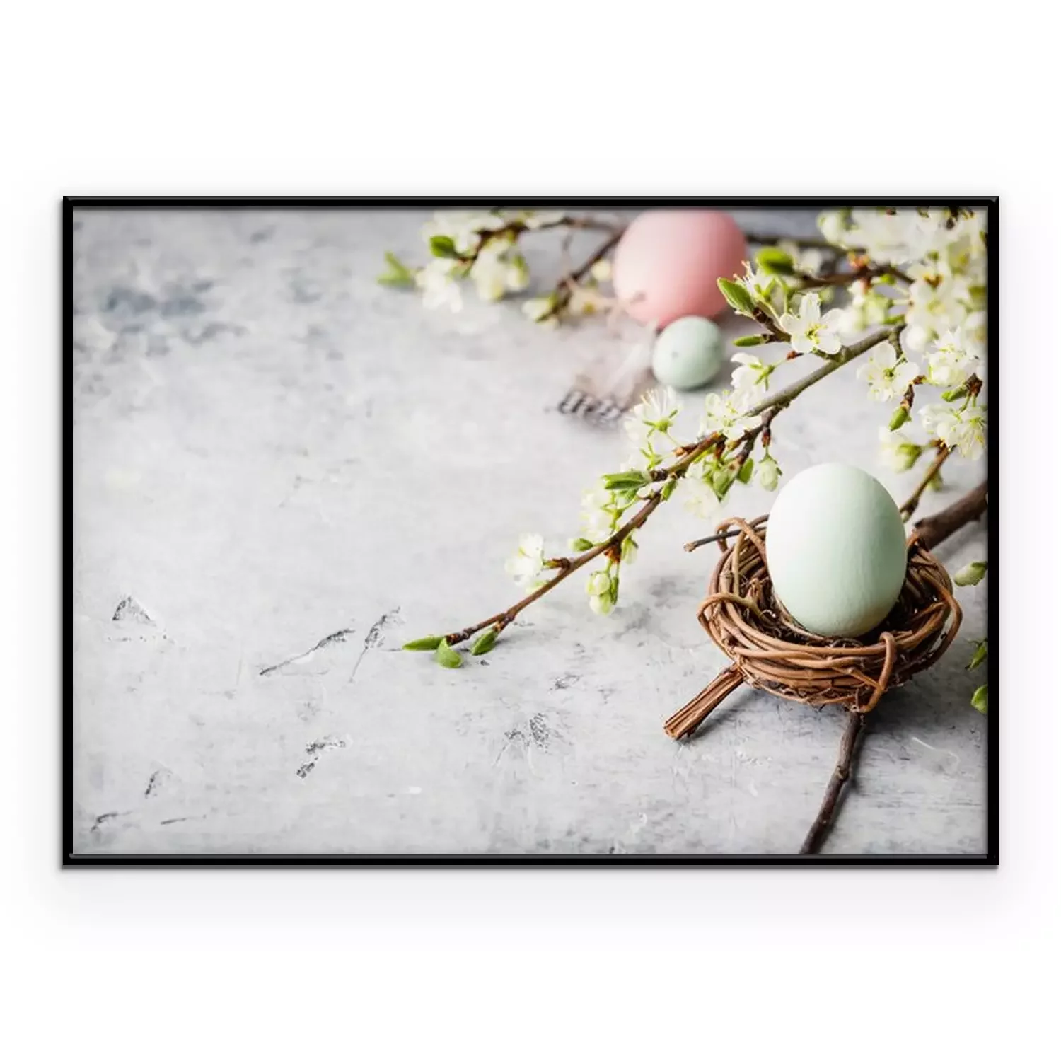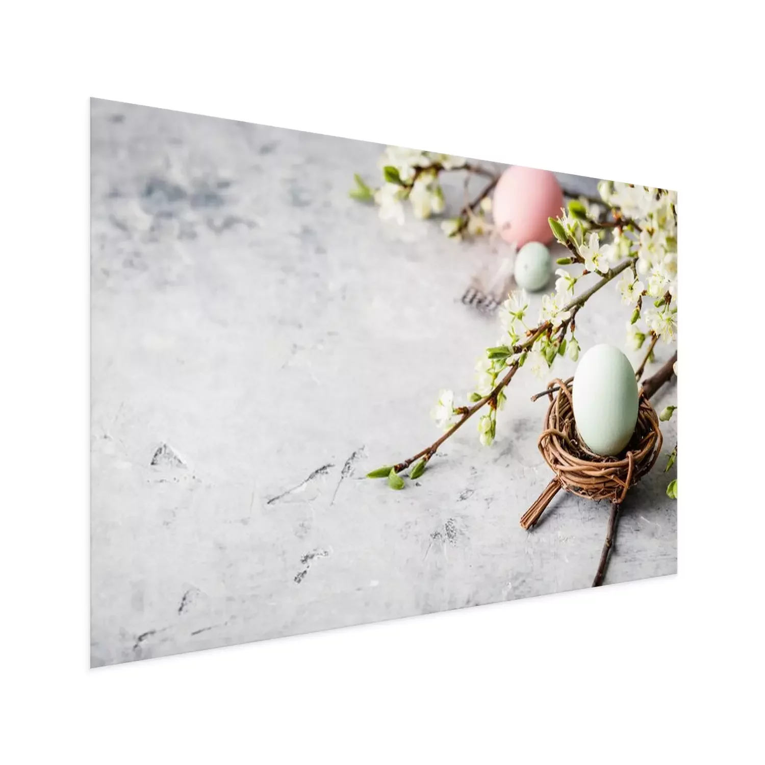Poster: Ostereier in Körben auf grauem Hintergrund