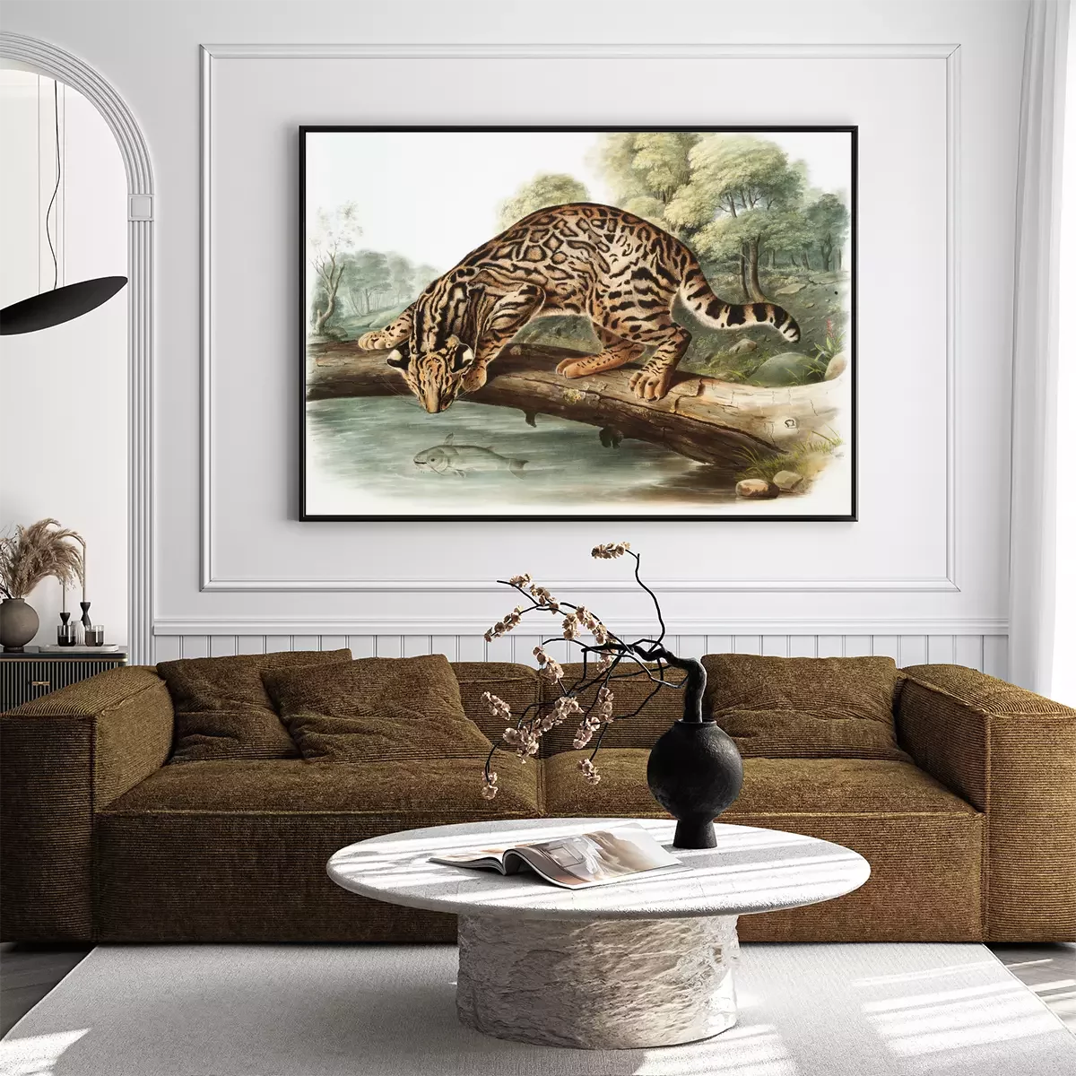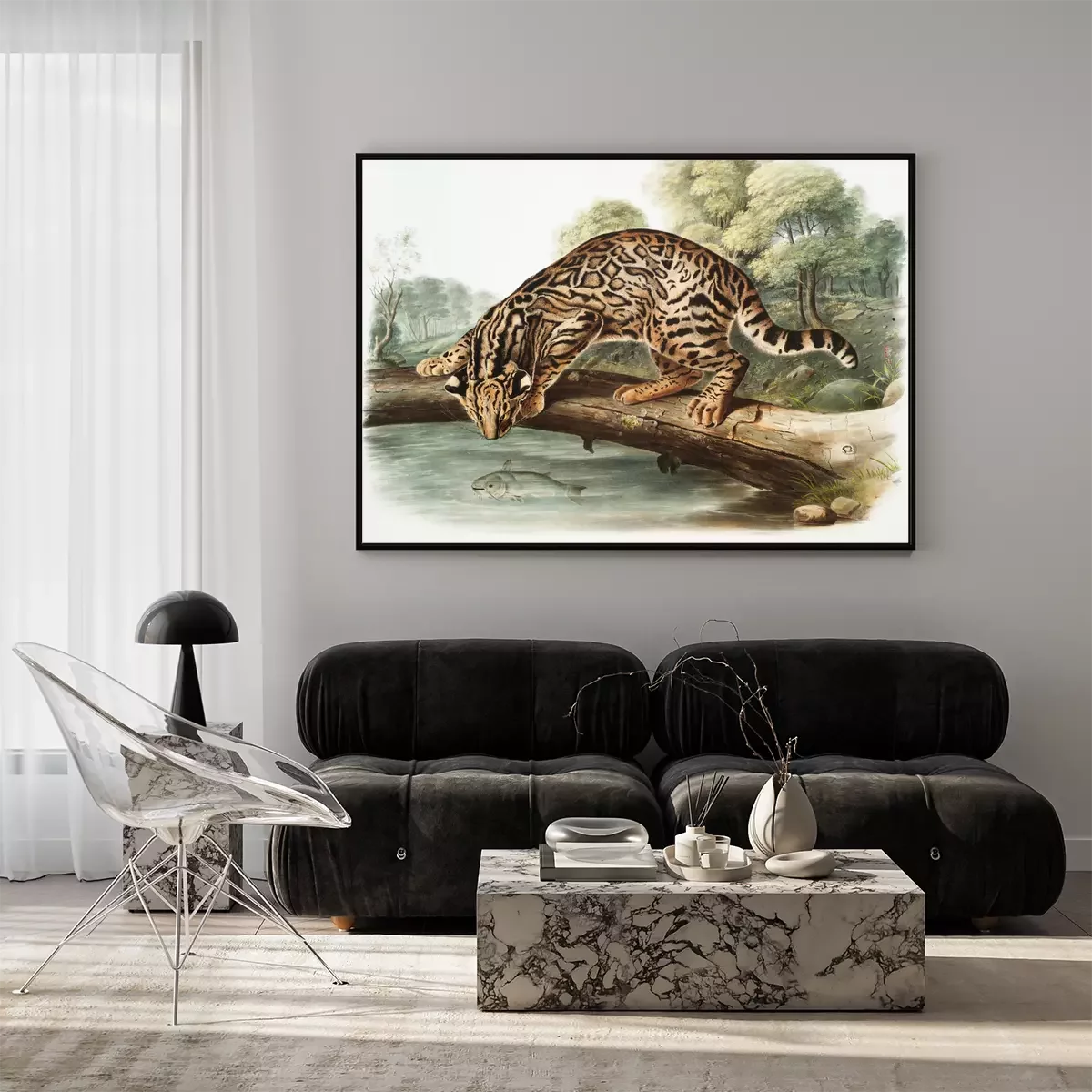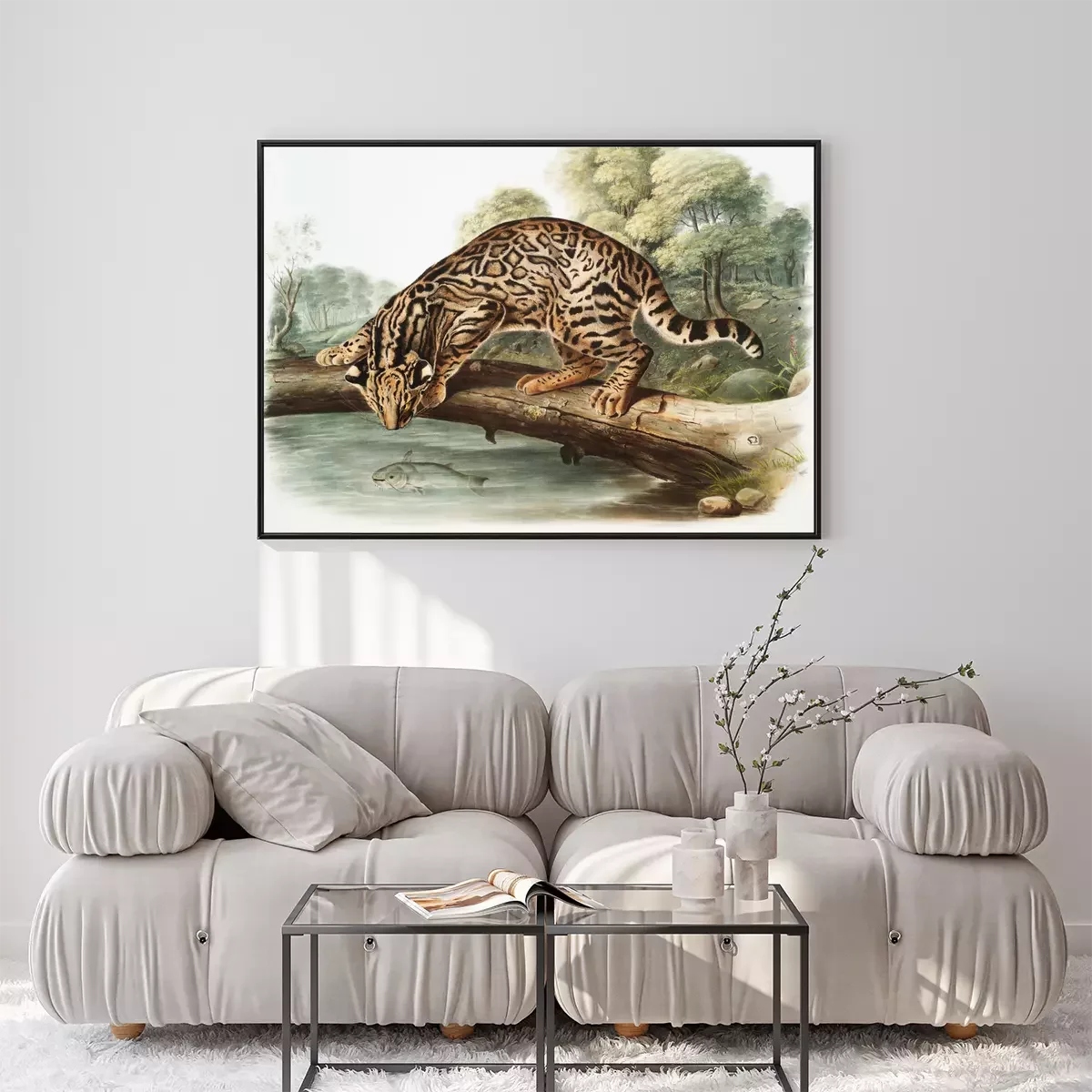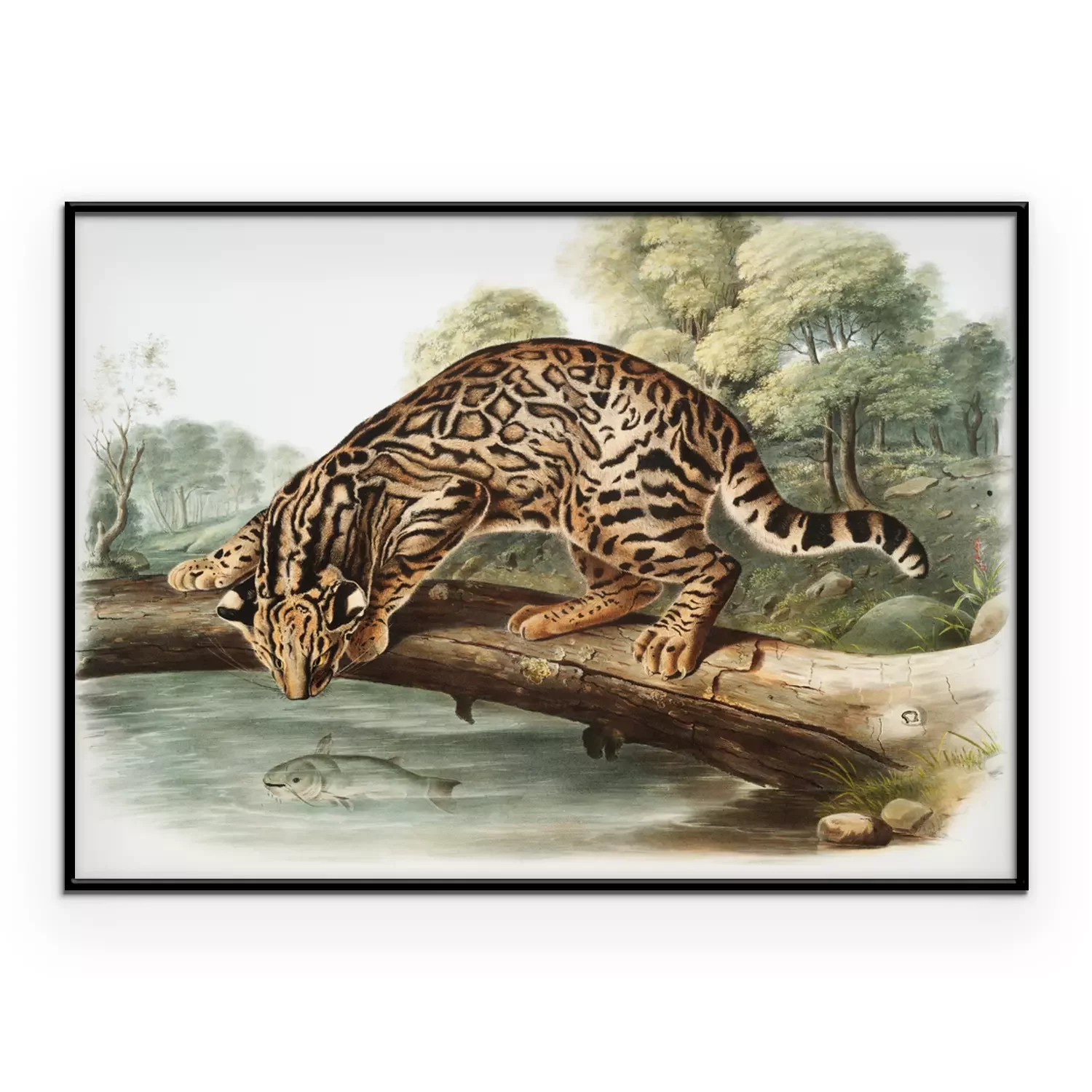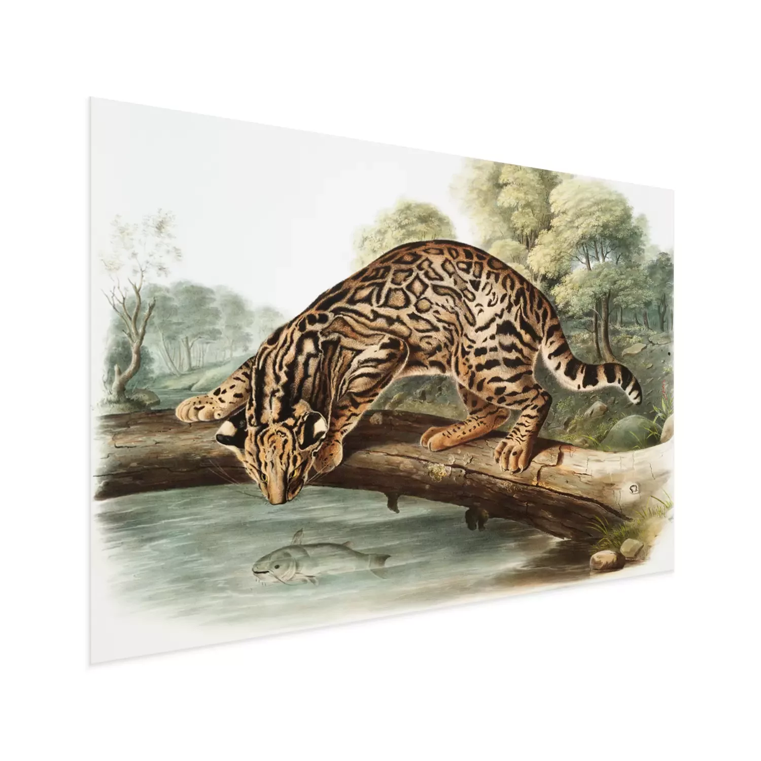 Poster: Ozelot beobachtet einen Fisch