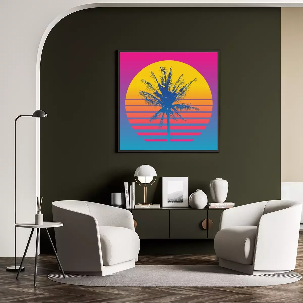 Poster: Palme vor dem Hintergrund der untergehenden Sonne