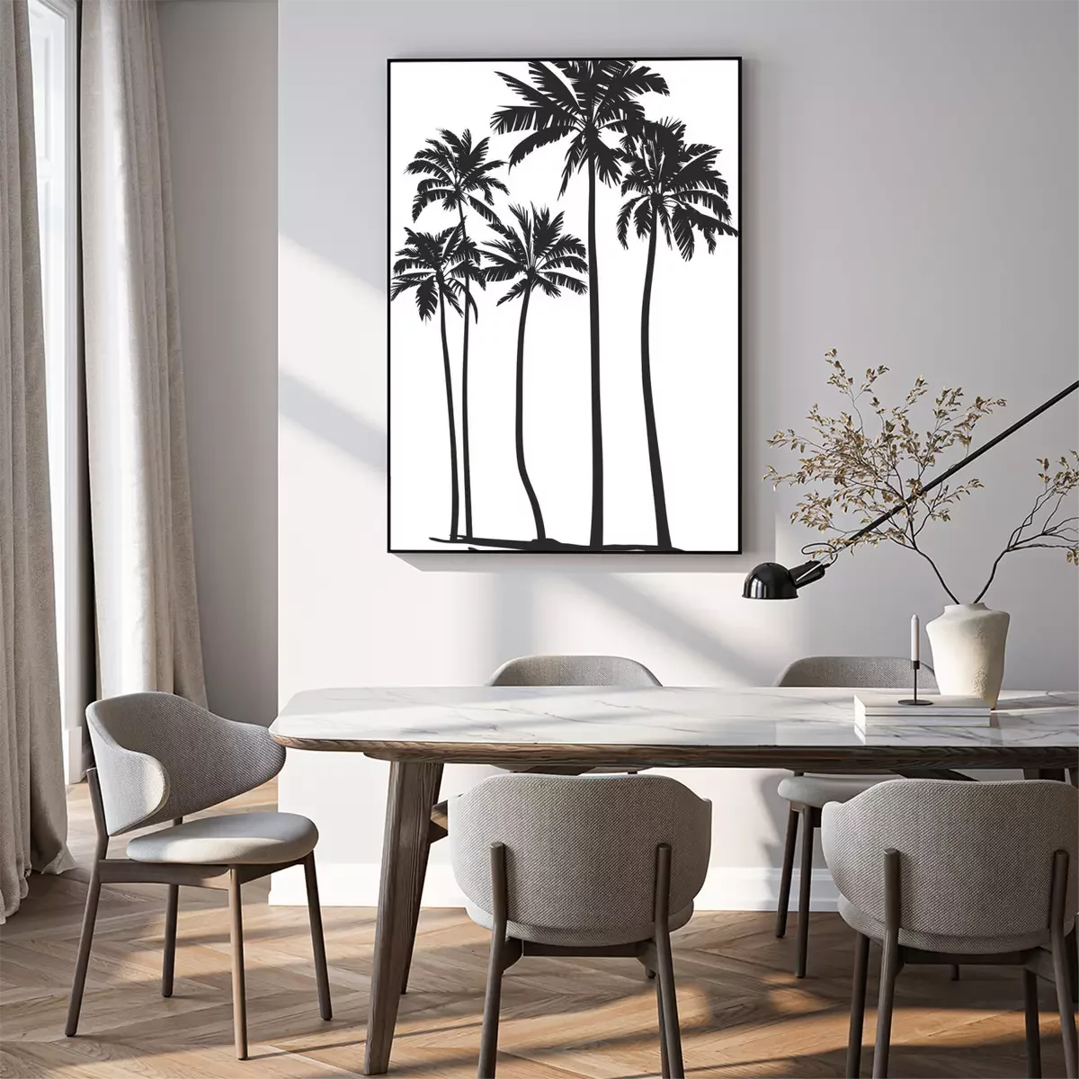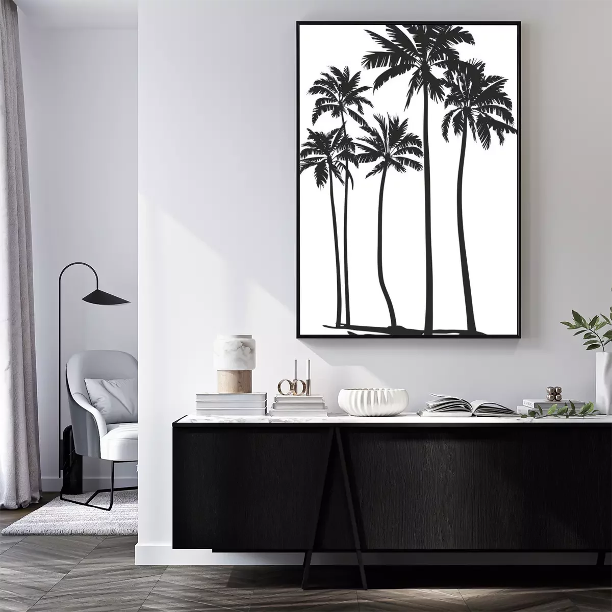 Poster: Palmen schwarz-weiß dunkle Konturen