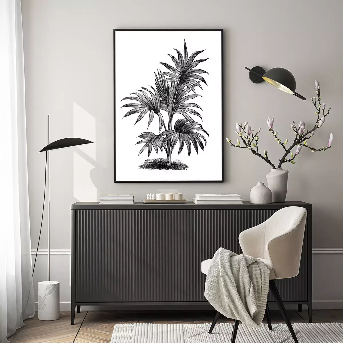 Poster: Palmen schwarz-weiß Skizze der Blätter