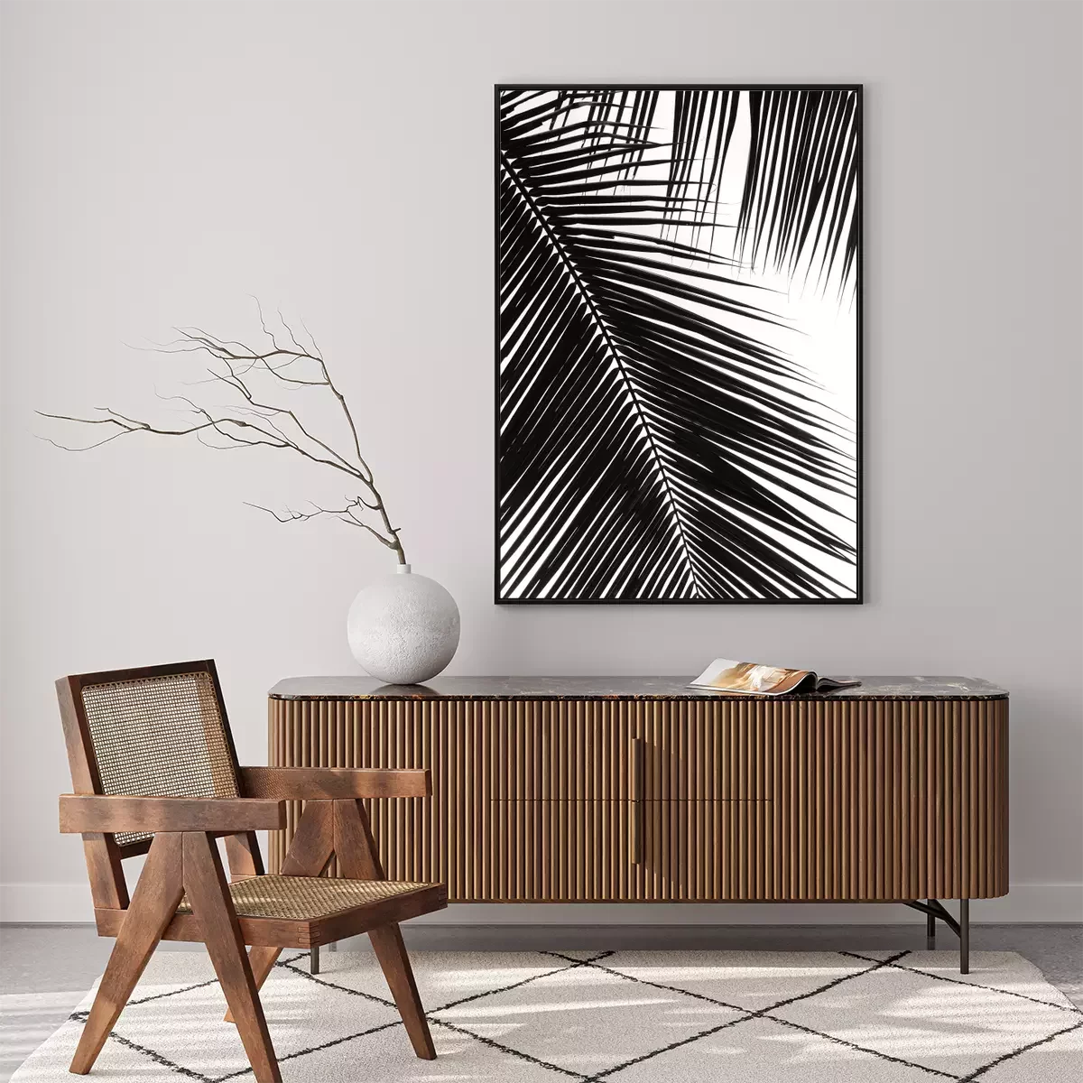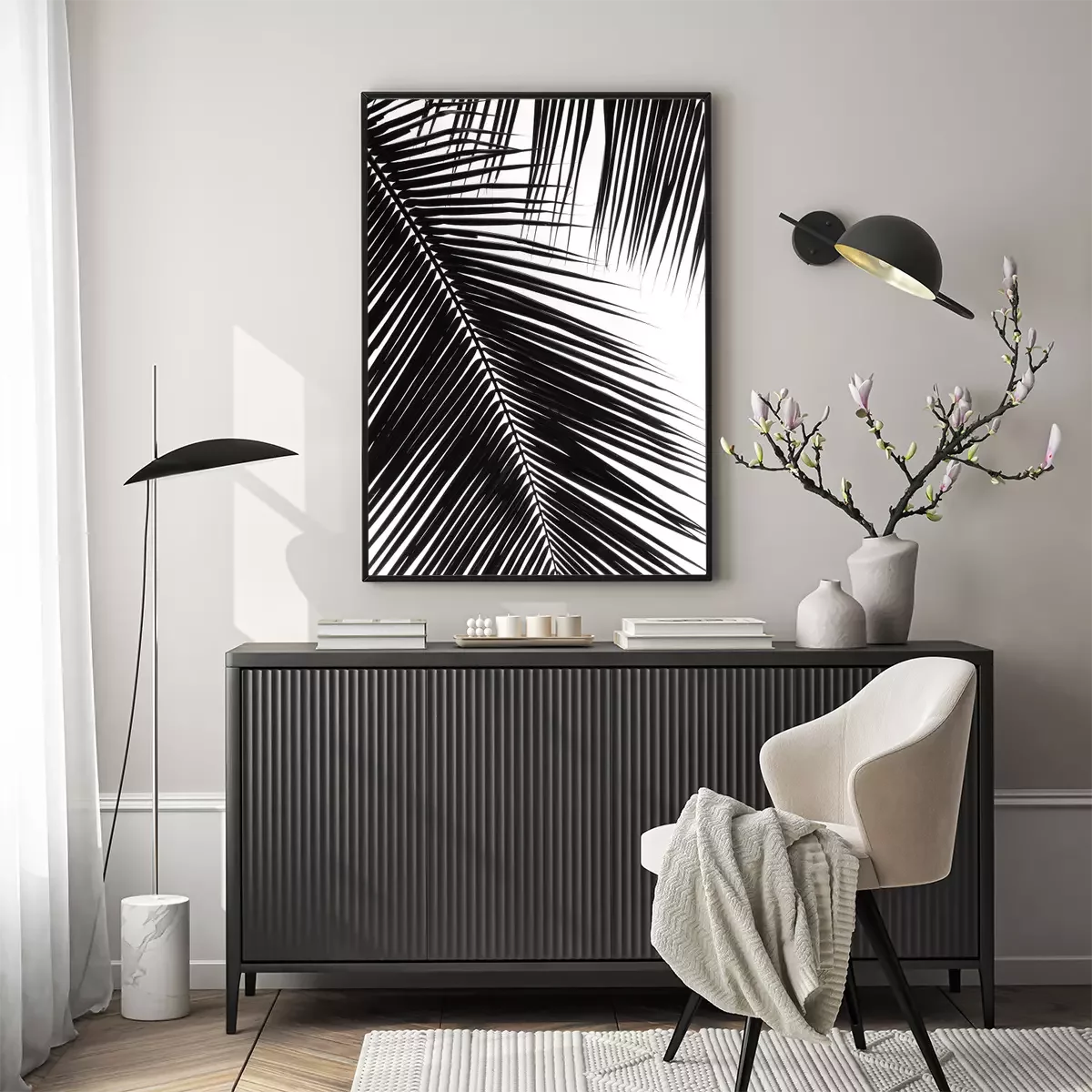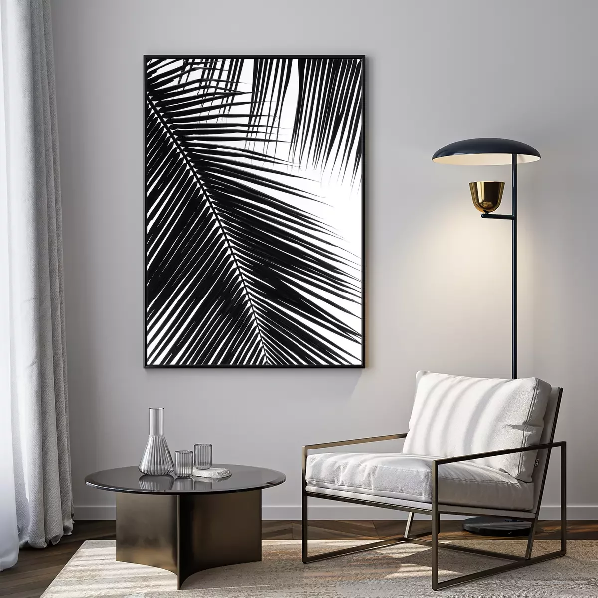 Motiv schwarz-weiß mit Palmenblatt