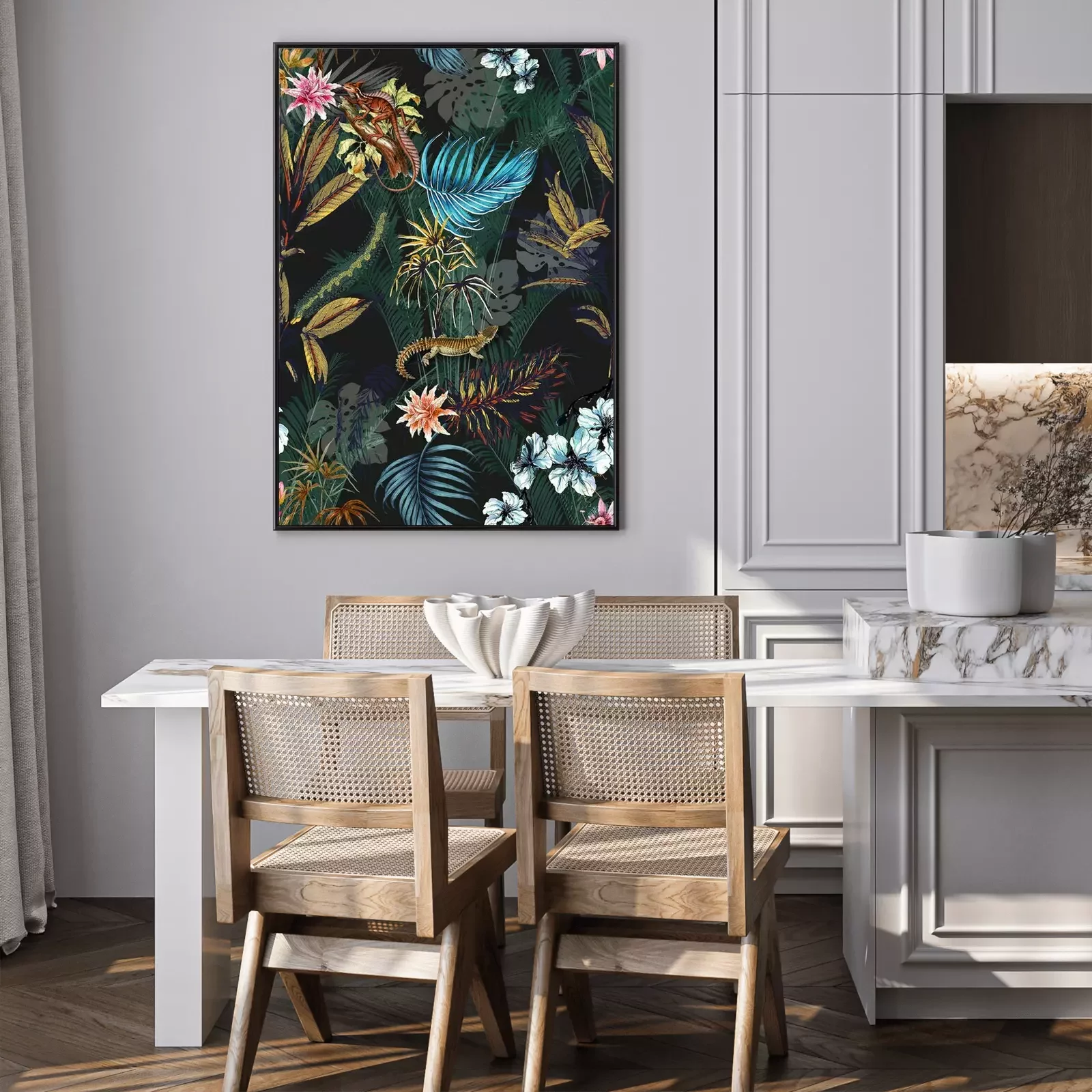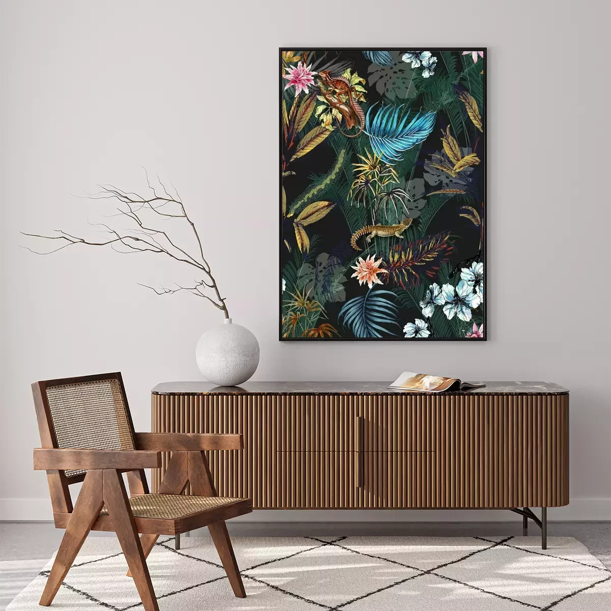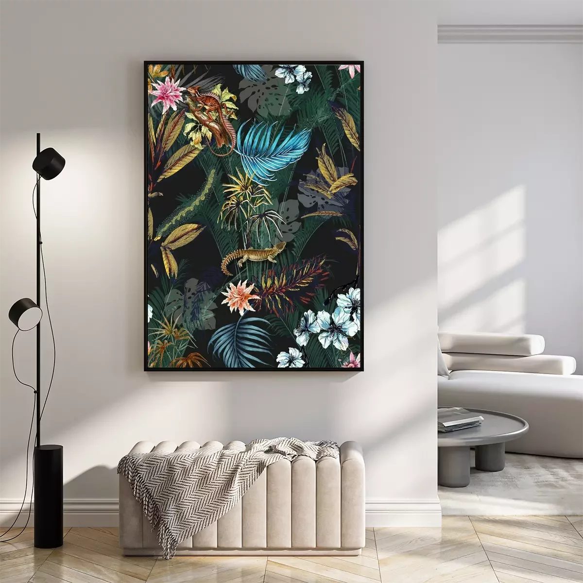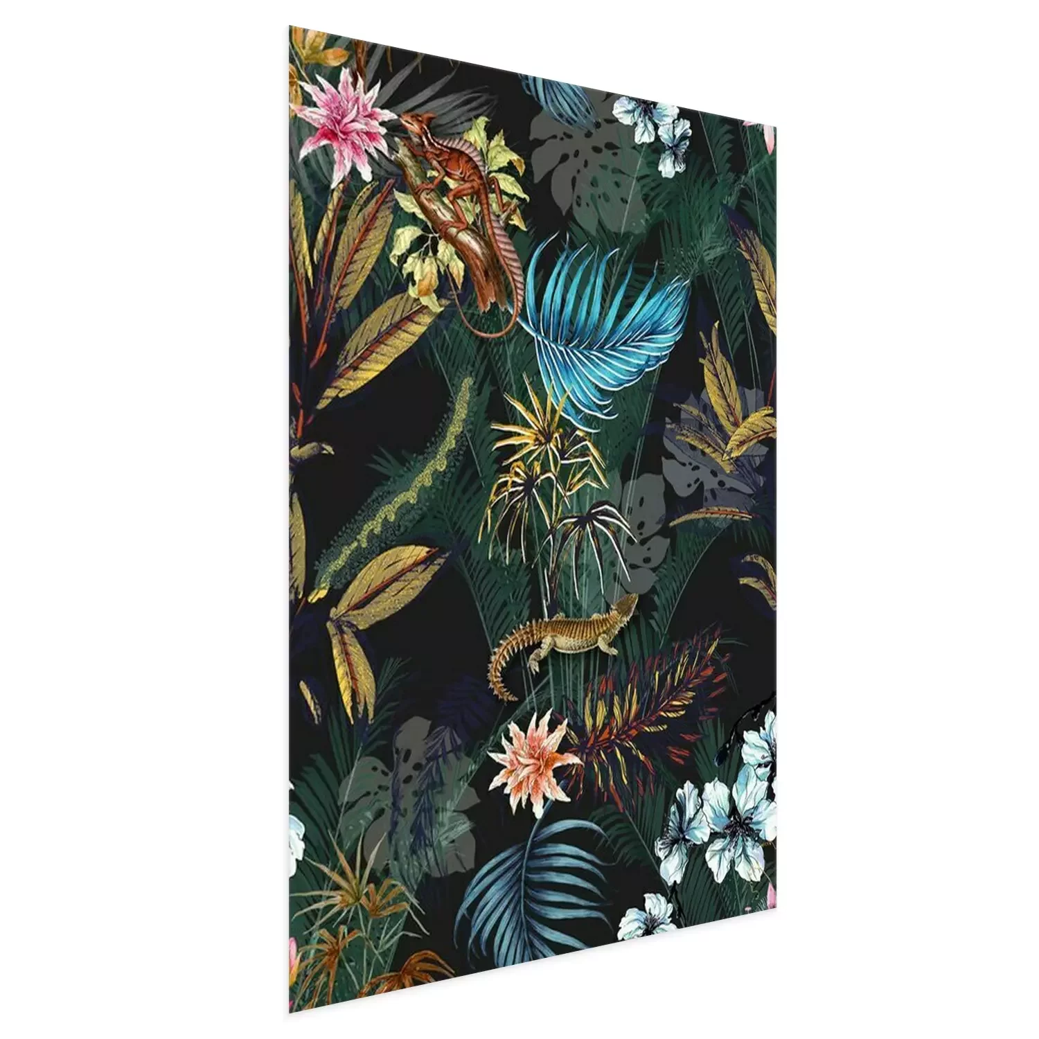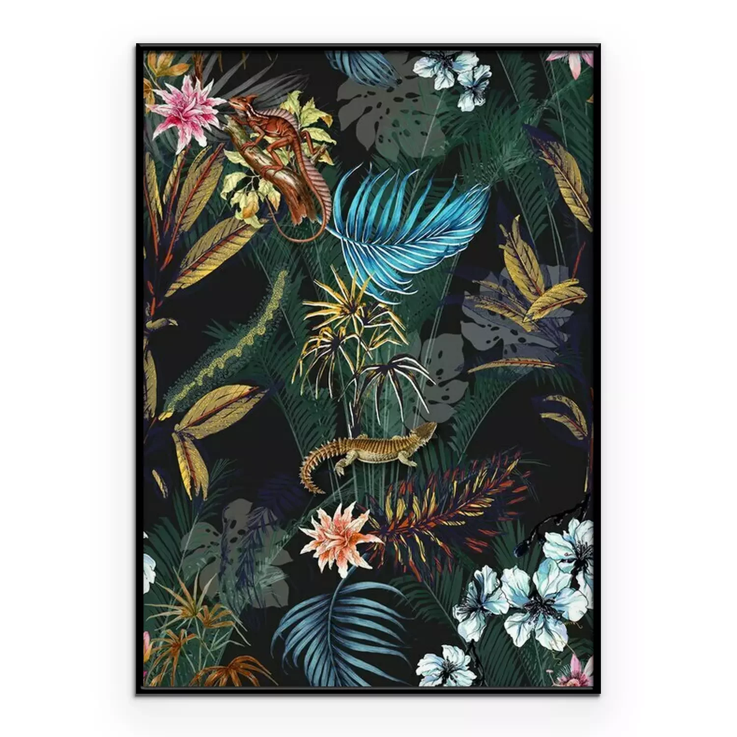 Poster: Palmenblätter Monstera und exotische Tiere