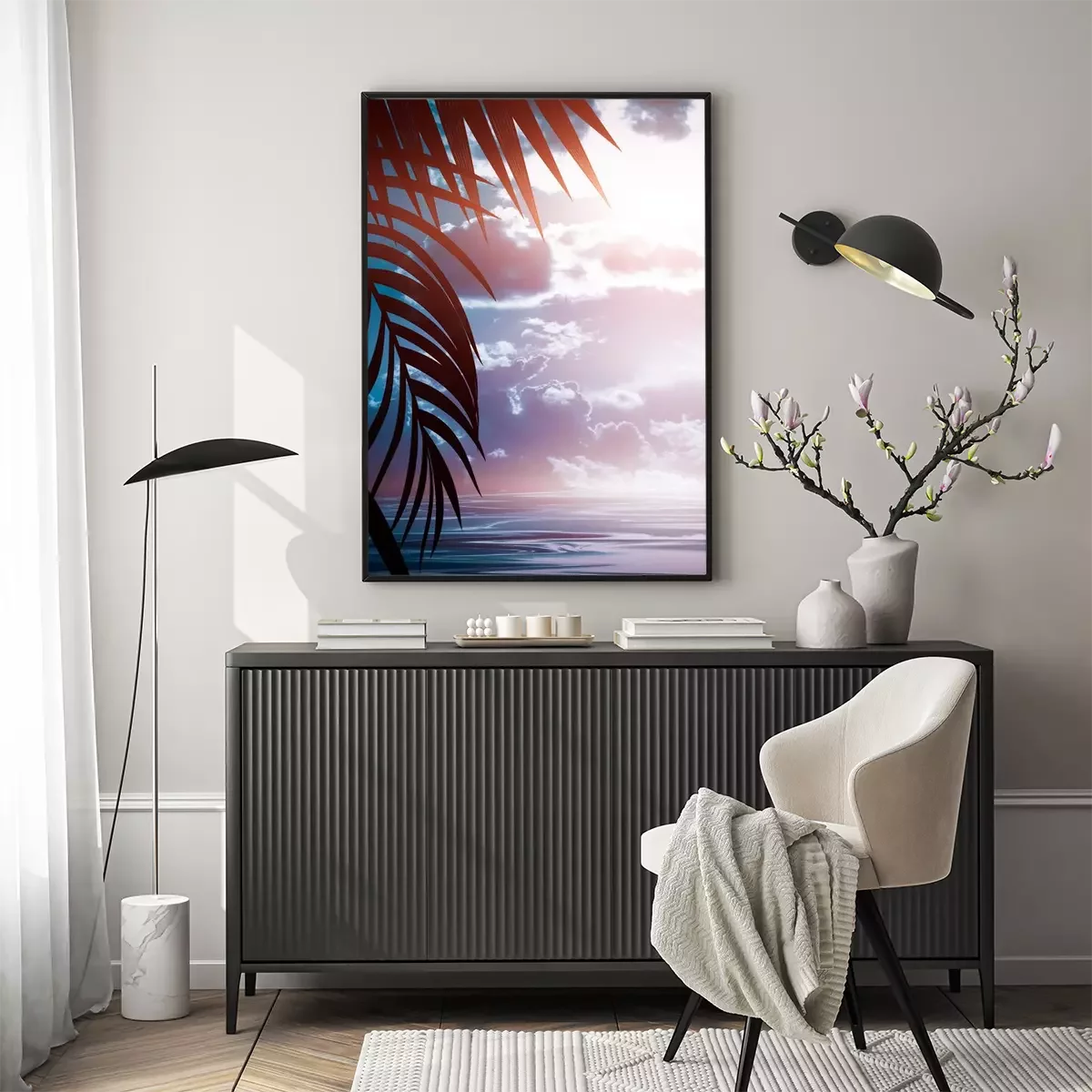 Poster: Palmenblätter vor dem Hintergrund der Wolken