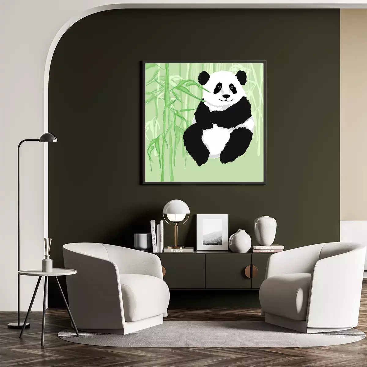 Poster: Panda auf dem Hintergrund eines Bambuswaldes
