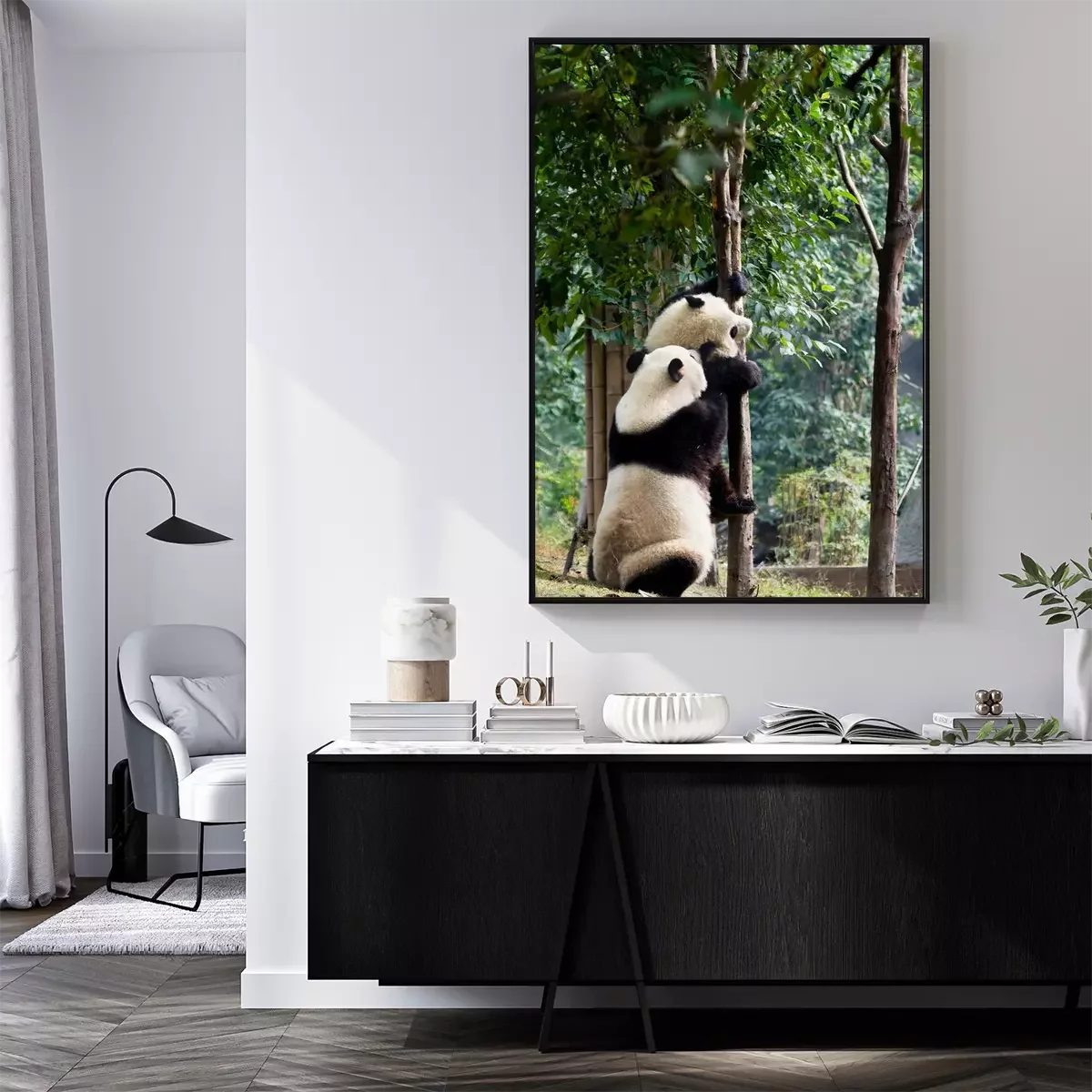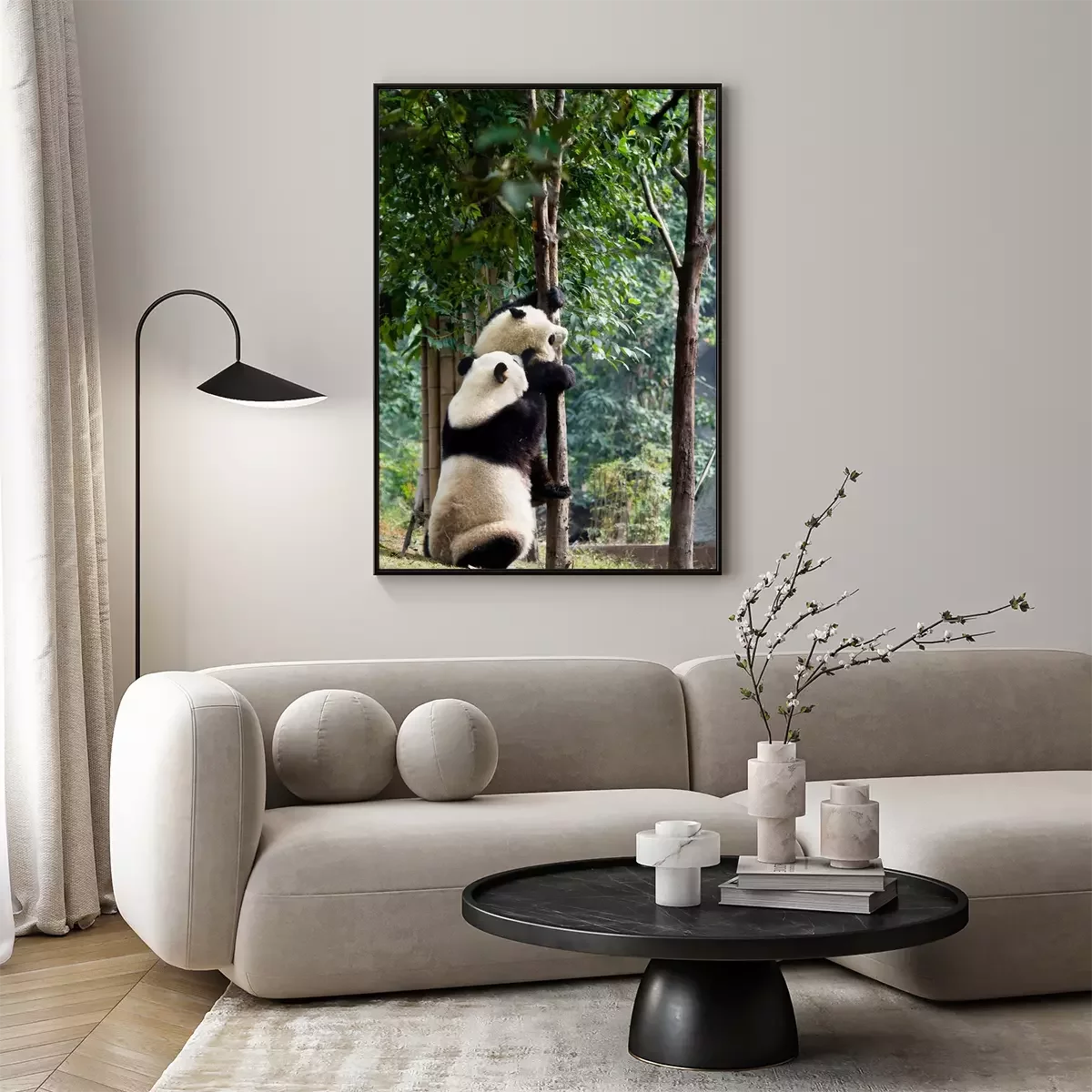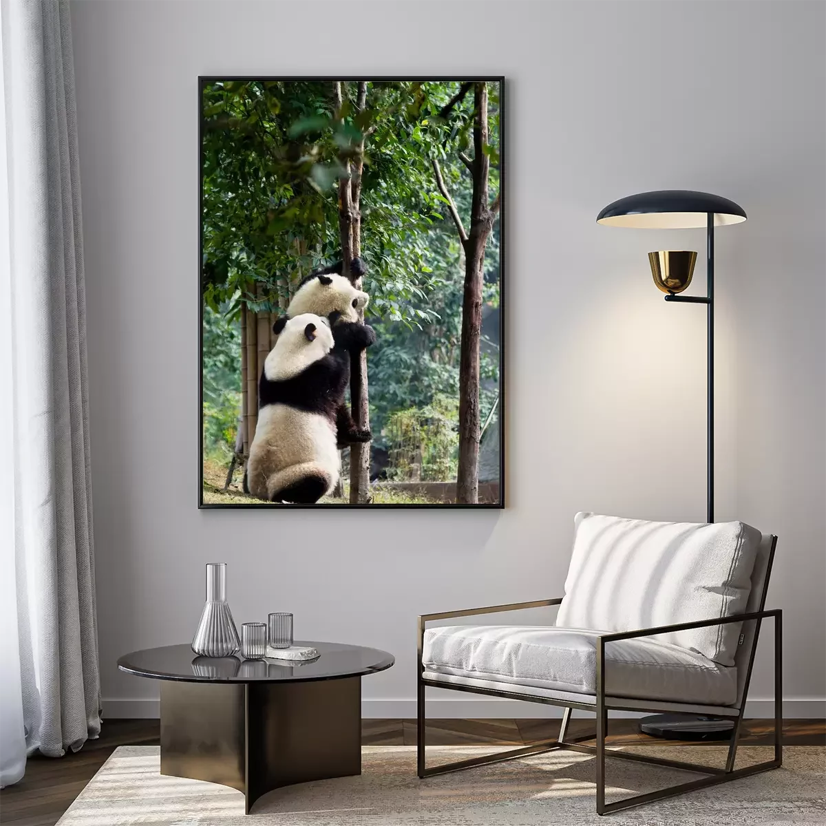 Poster: Panda klettert auf den Baum