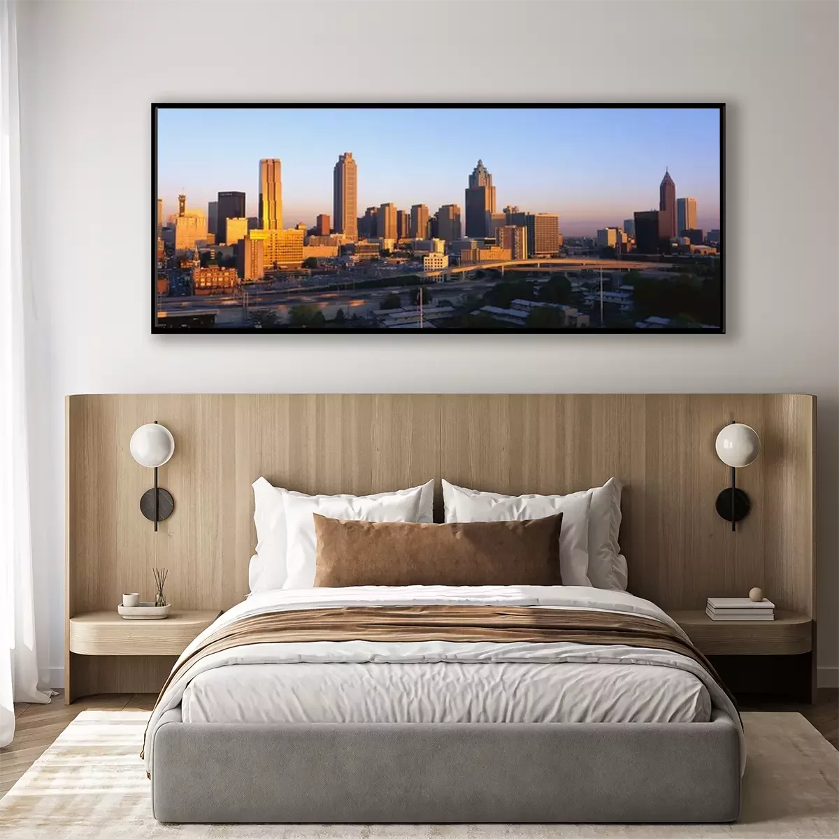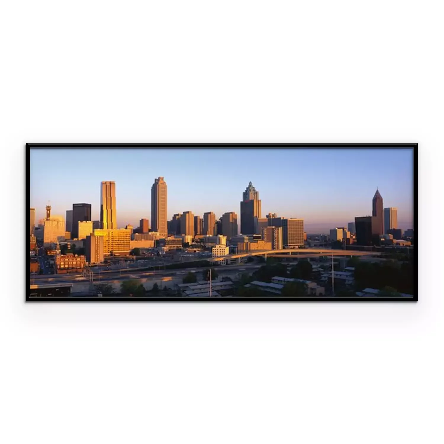 Poster: Panorama der Stadt und Sonnenuntergang