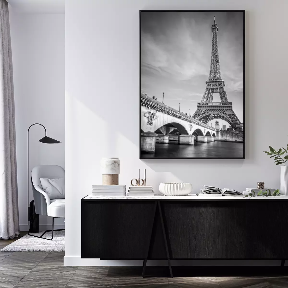 Poster: Pariser Stimmung in Schwarz Weiß Eiffelturm