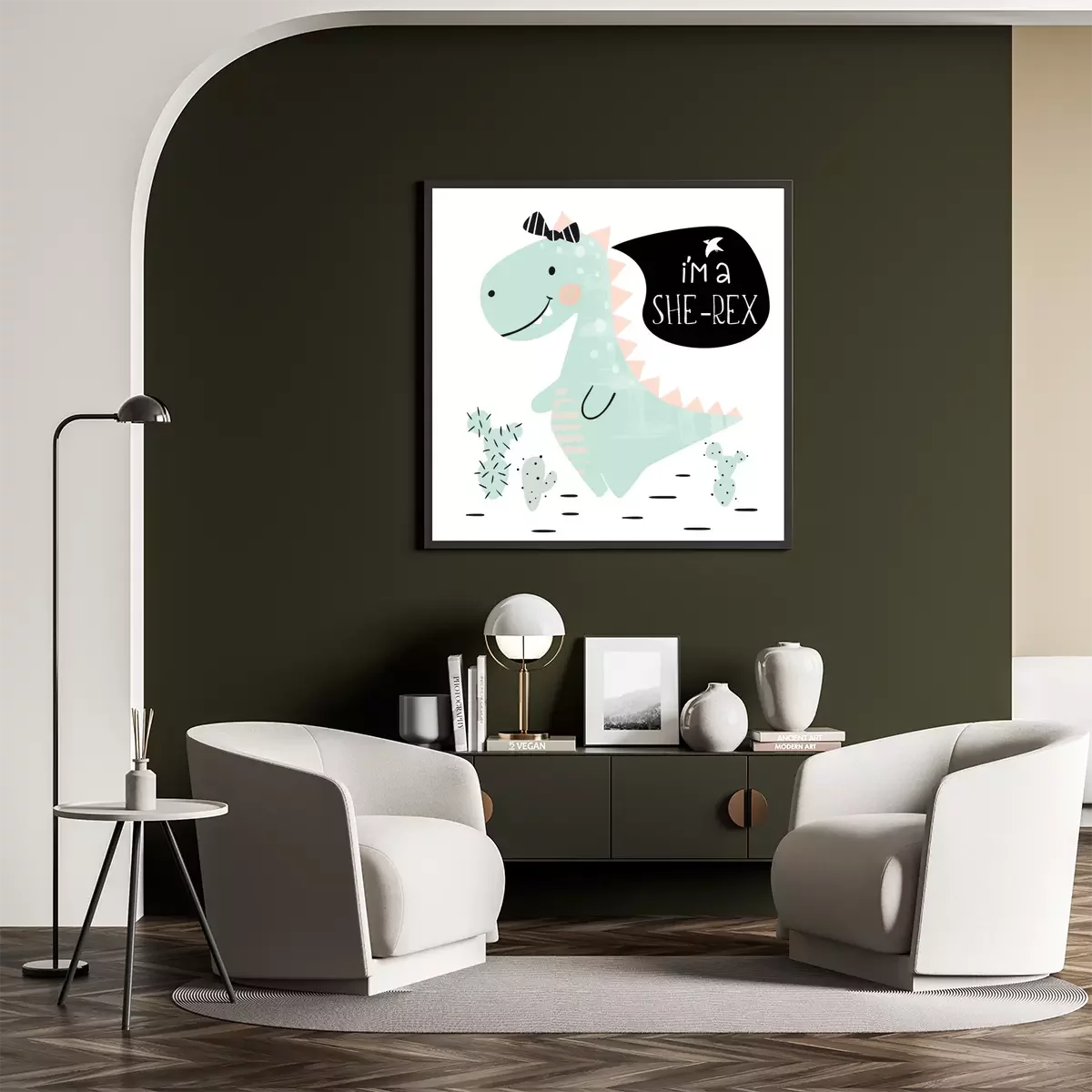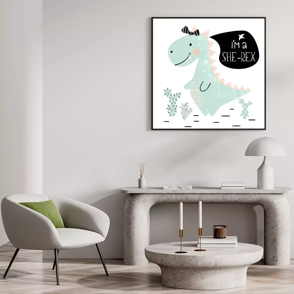 Poster: Pastellfarbener Tyrannosaurus mit rosa Stacheln