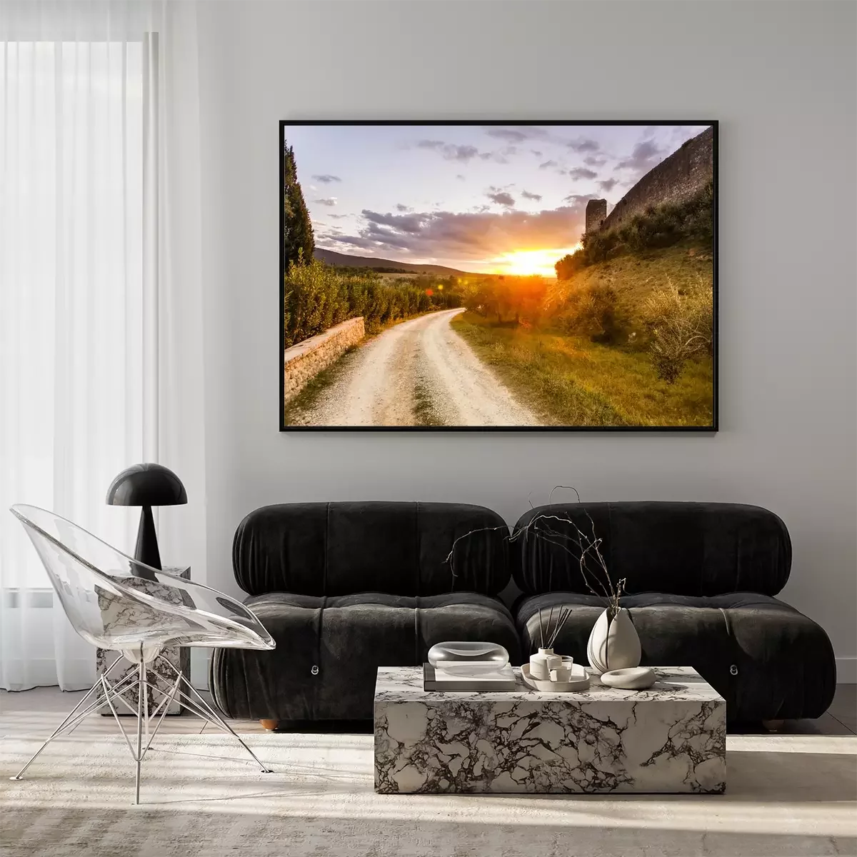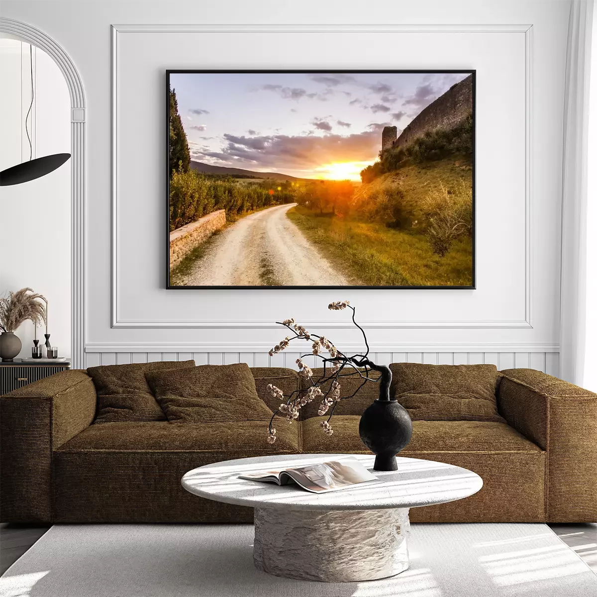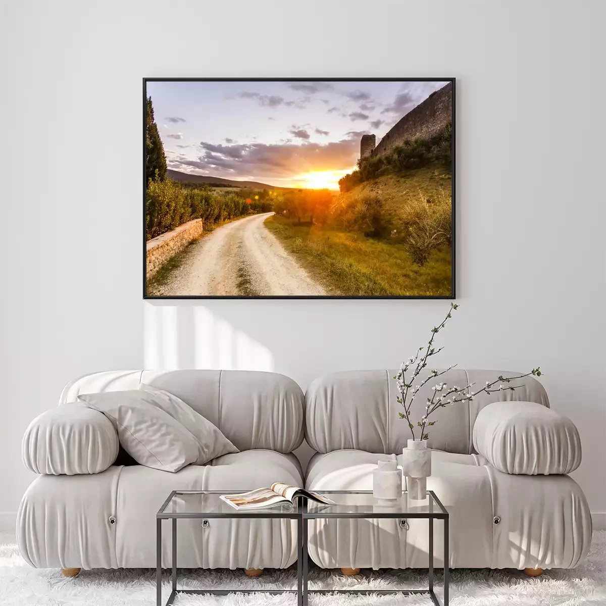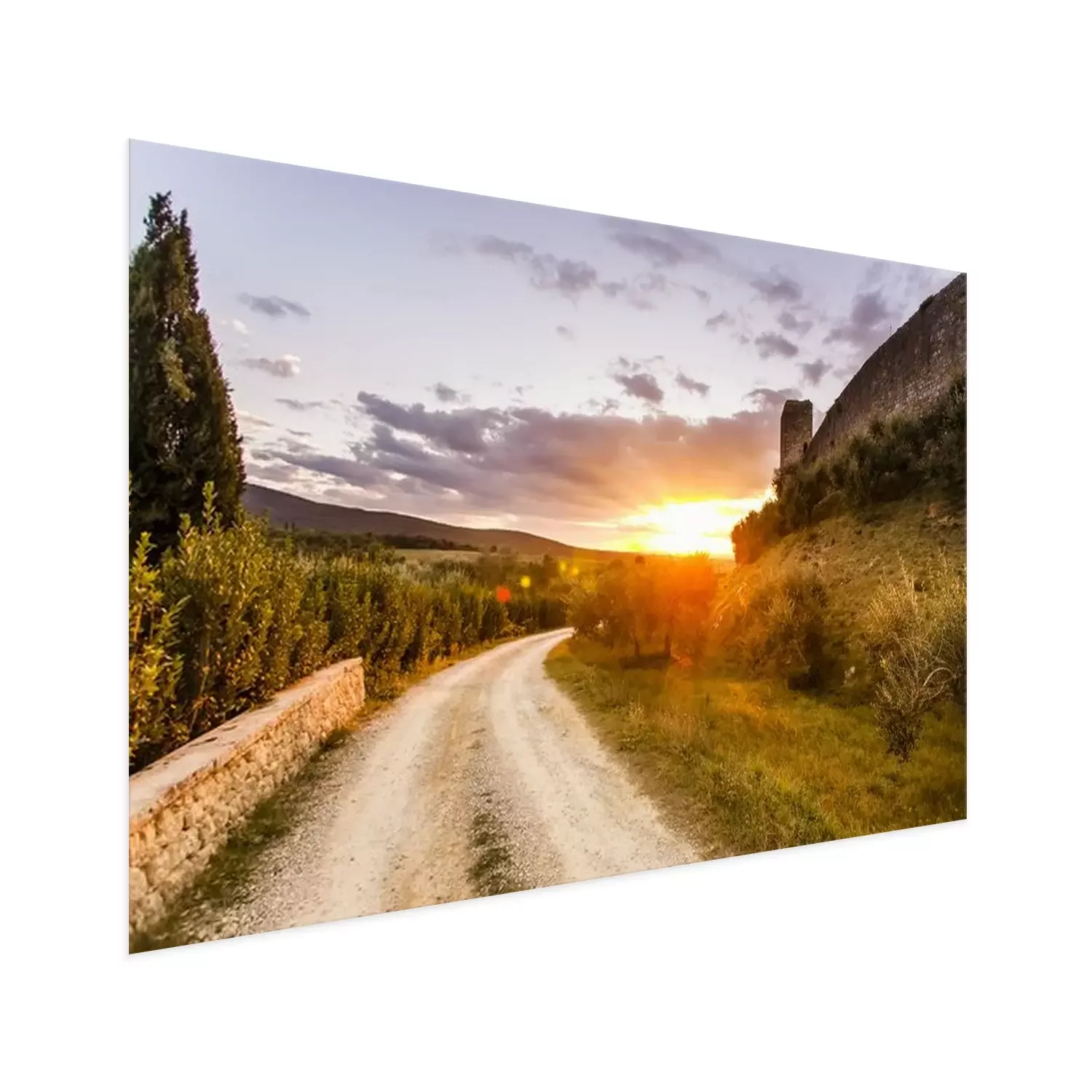 Poster: Pfad in der Toskana bei Sonnenuntergang