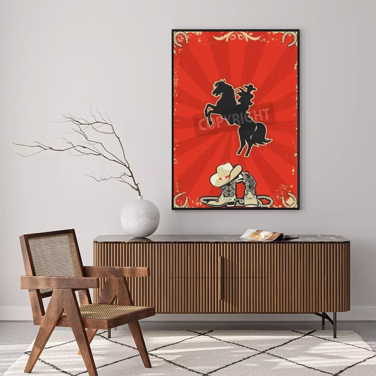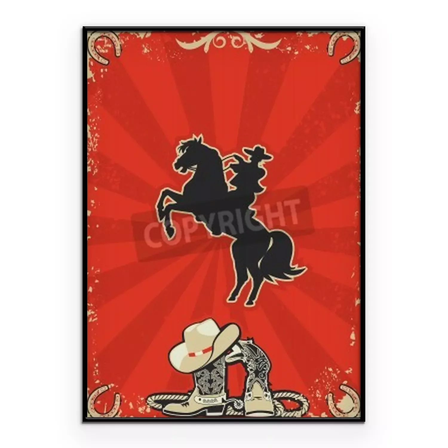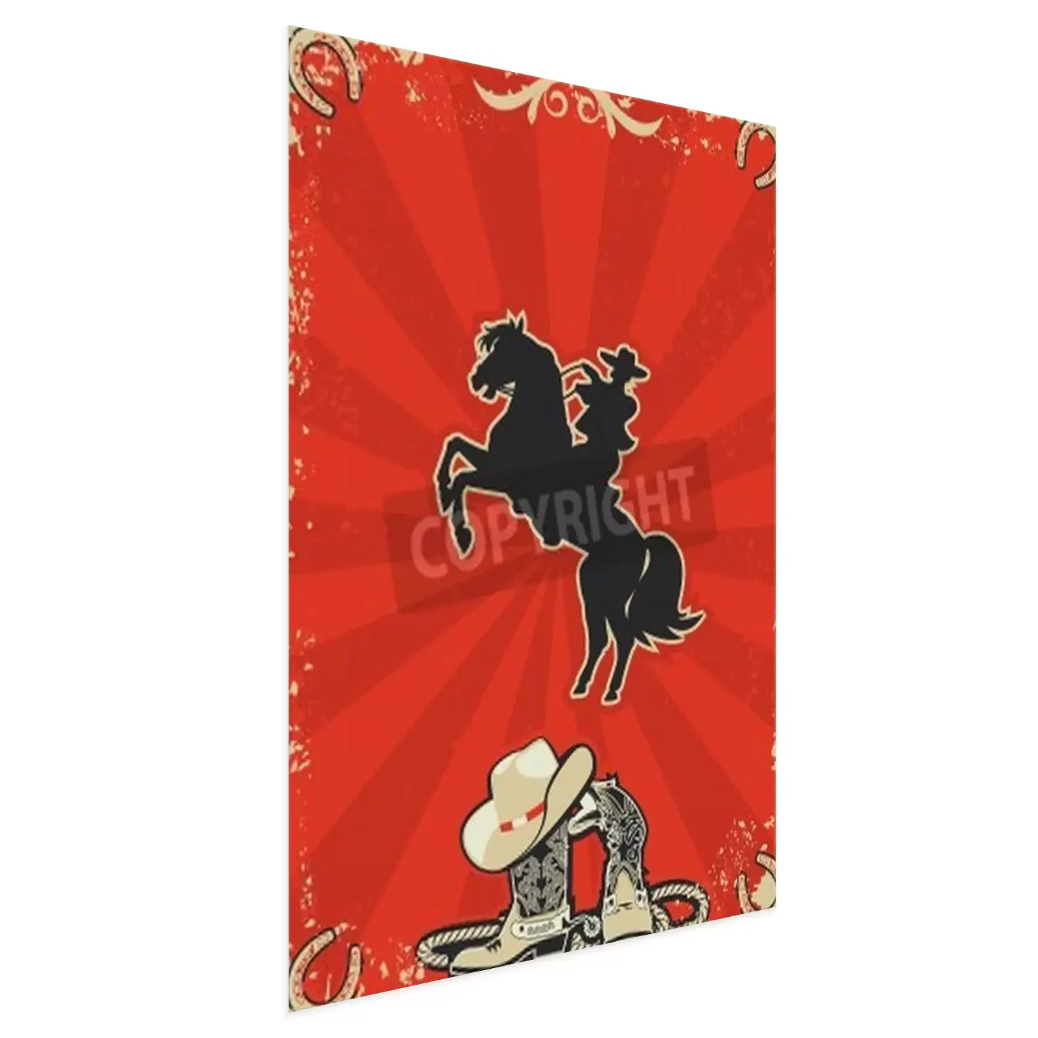 Poster: Pferd und Cowboy auf rotem Hintergrund