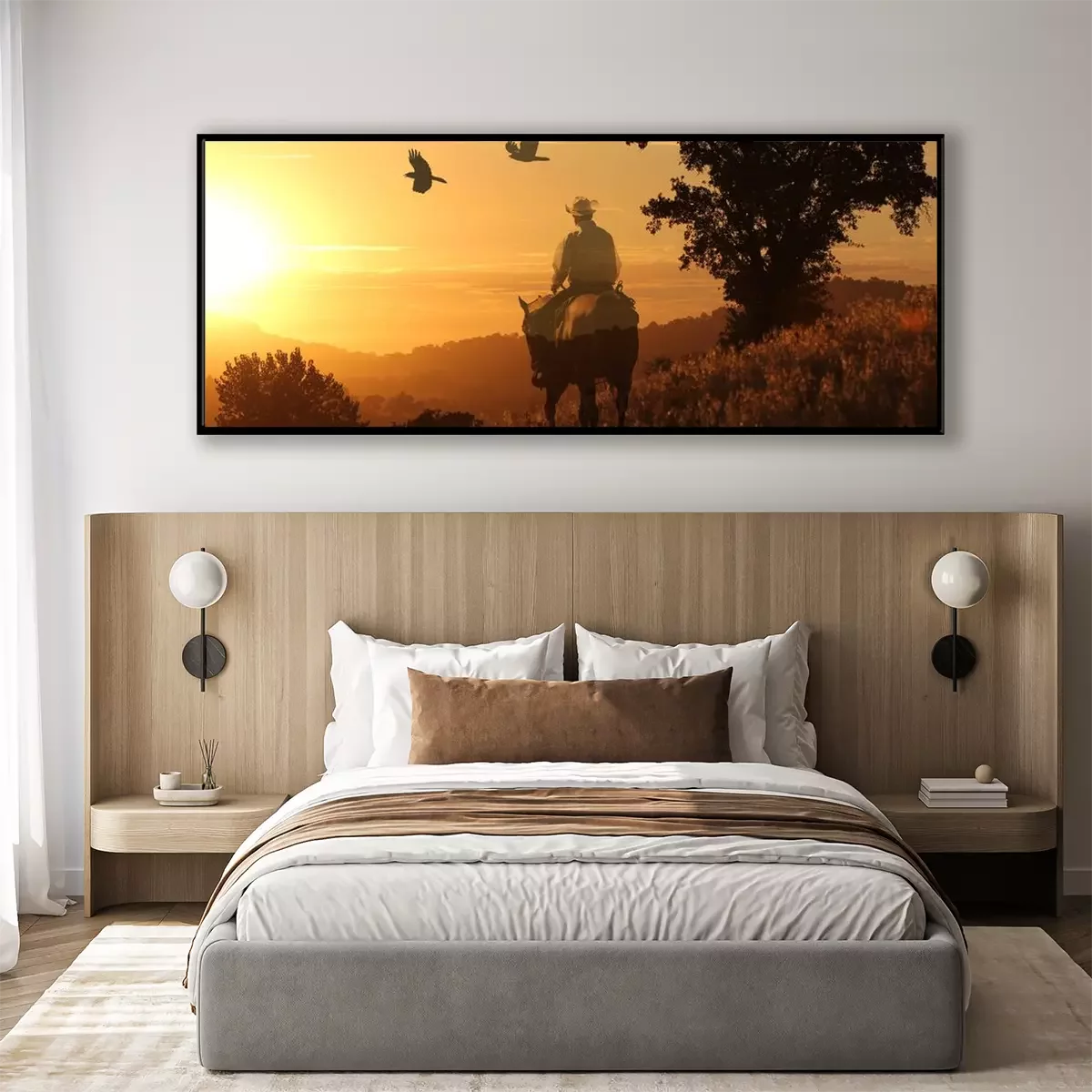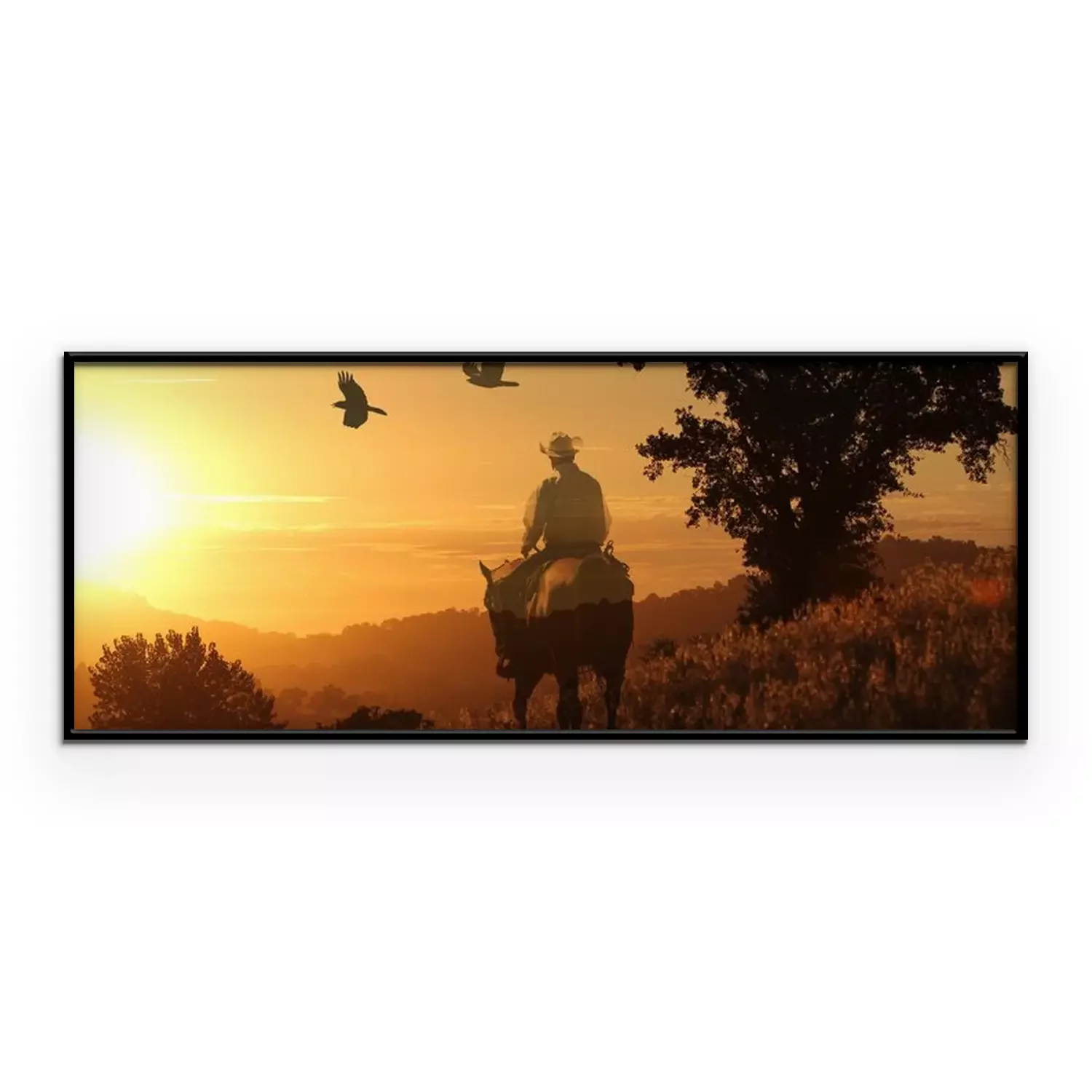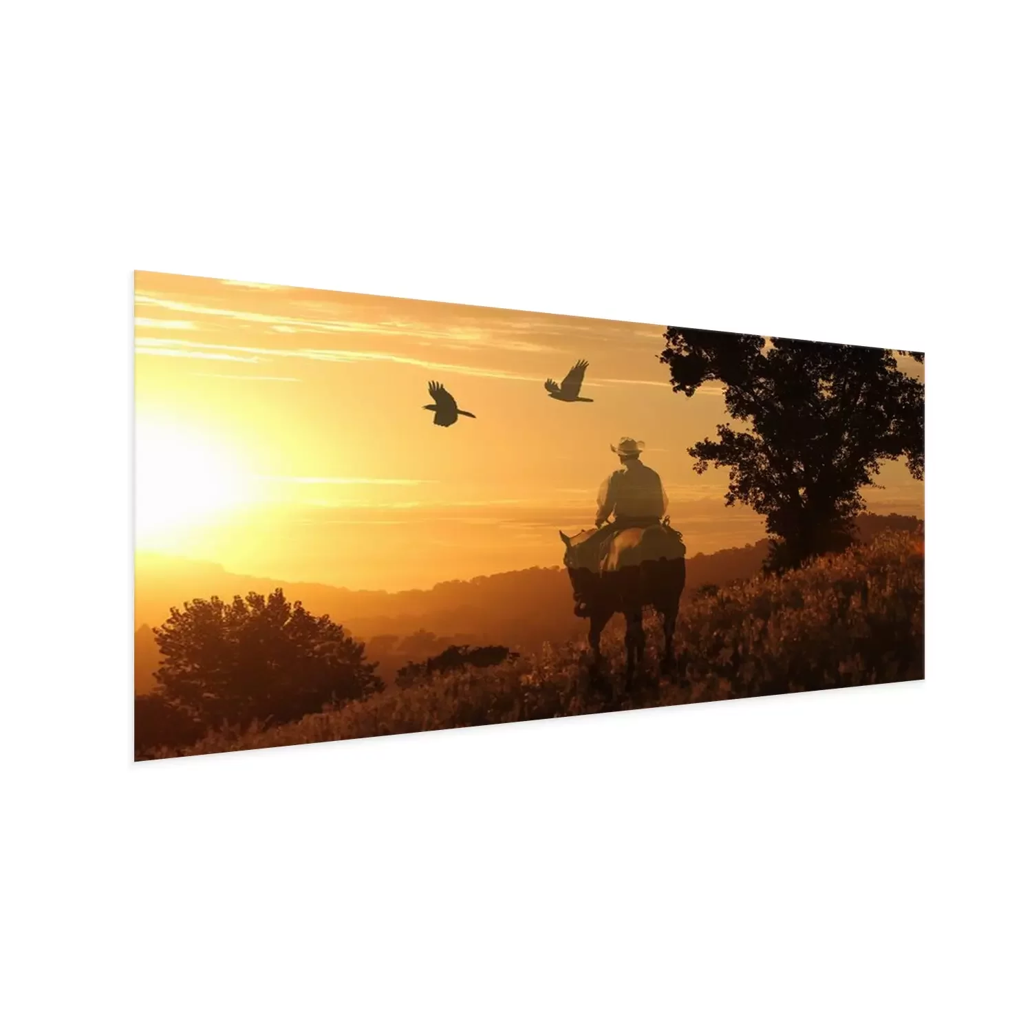 Poster: Pferd und Reiter in der untergehenden Sonne