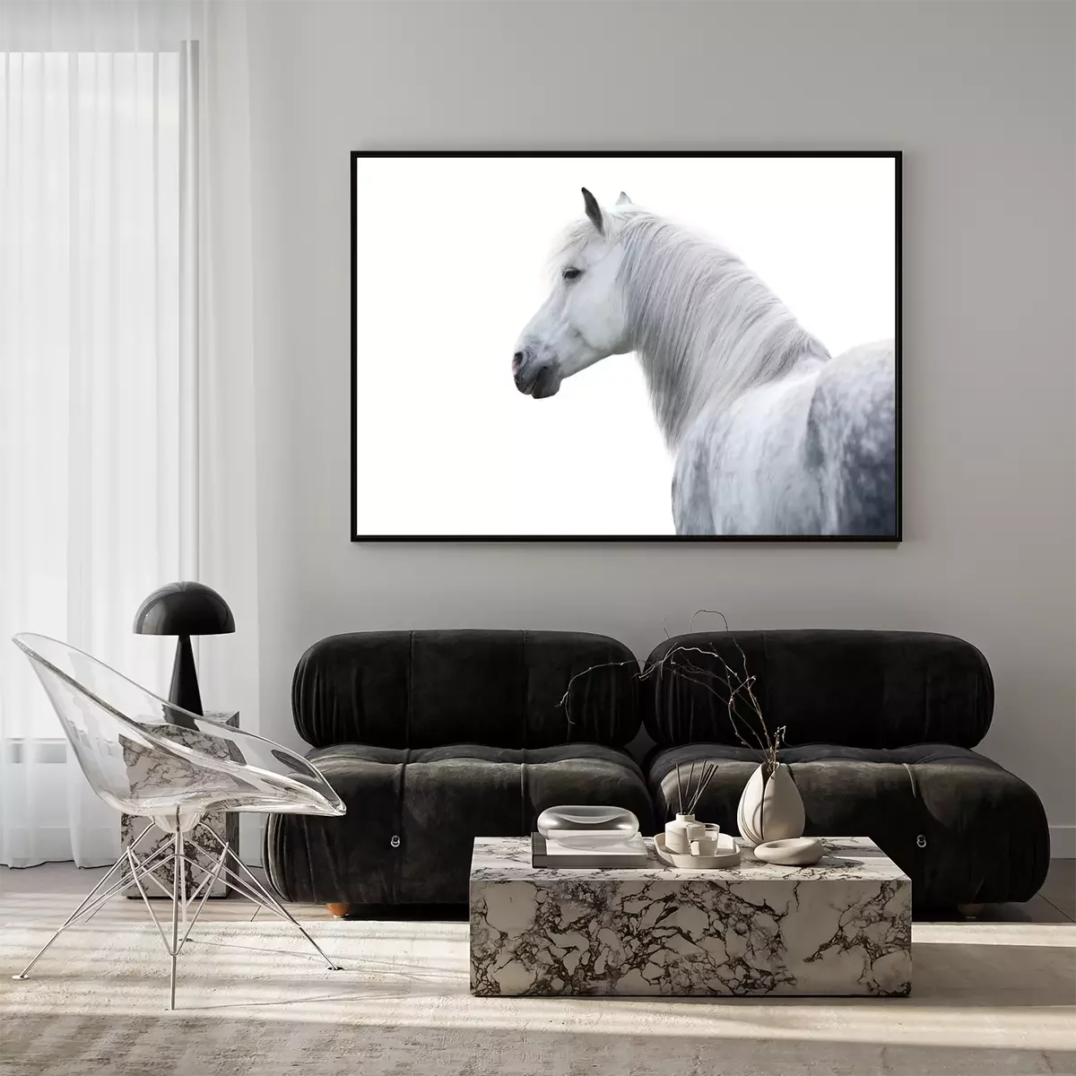 Poster Pferd weiß auf hellem Hintergrund
