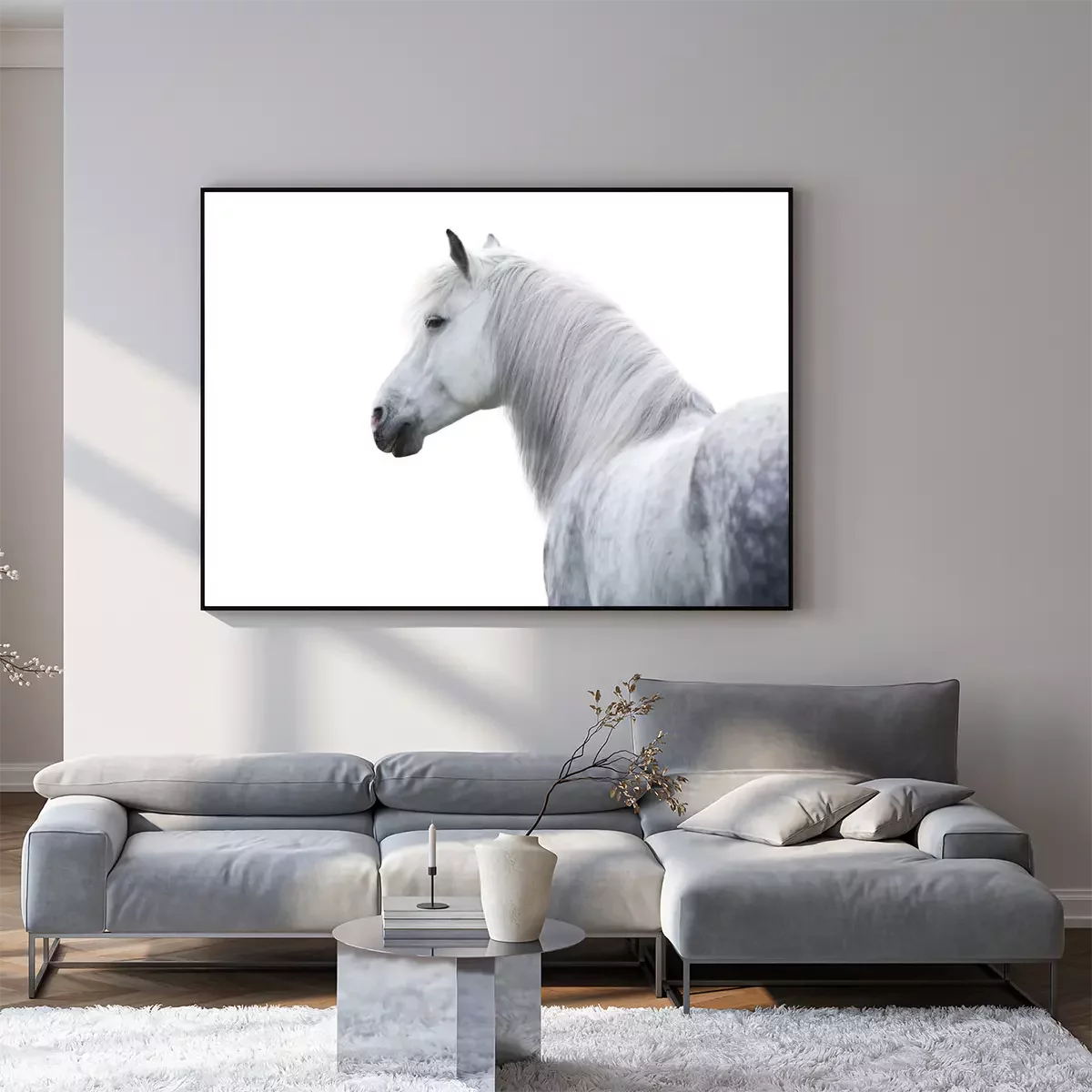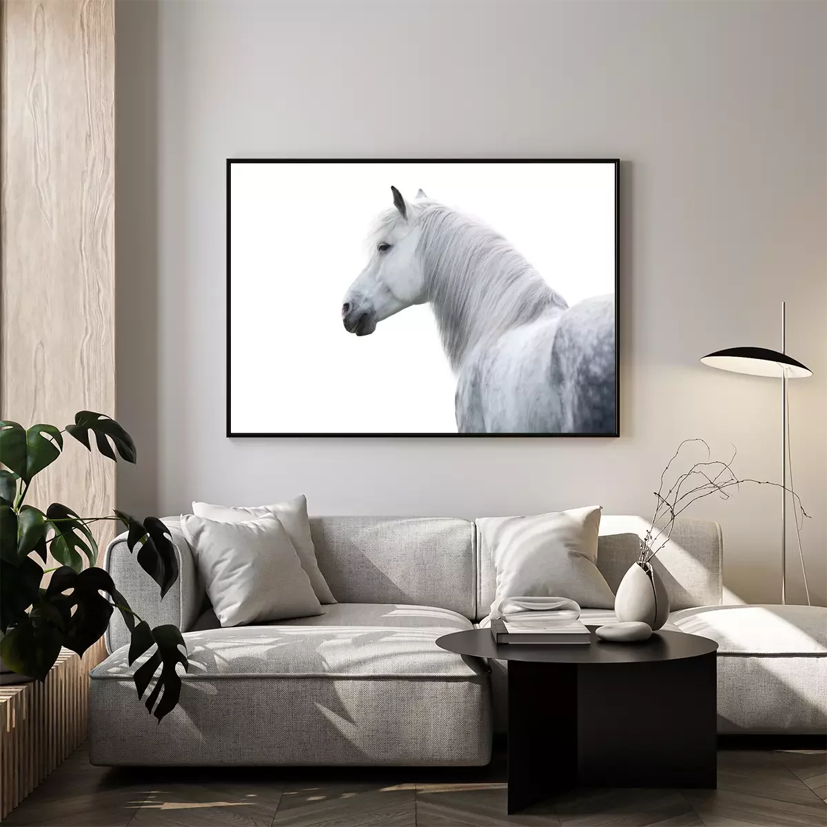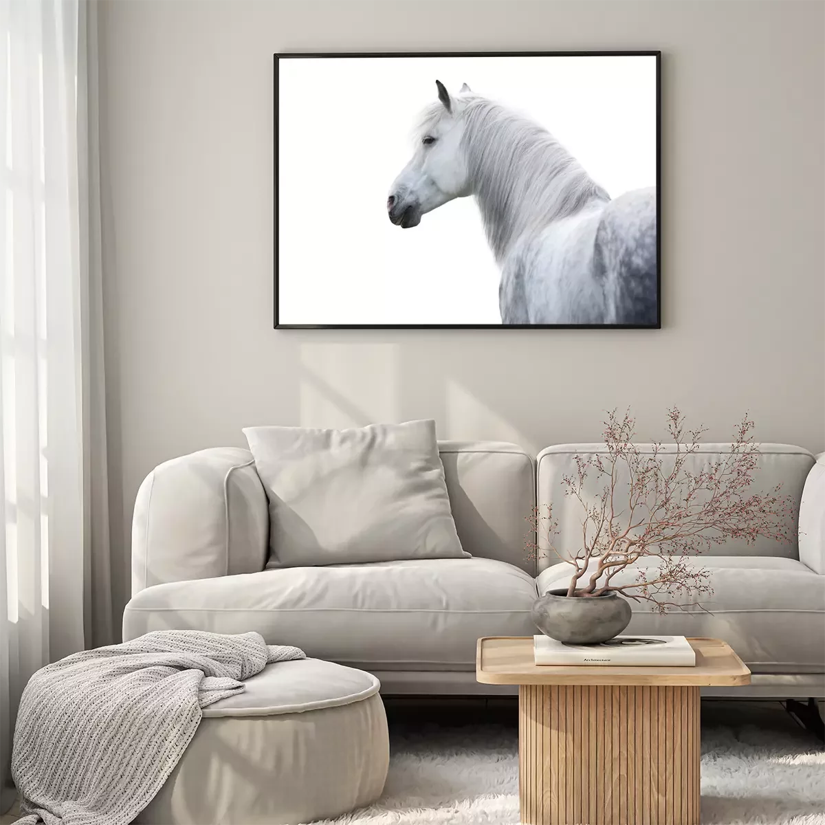 Poster: Pferd weiß auf hellem Hintergrund
