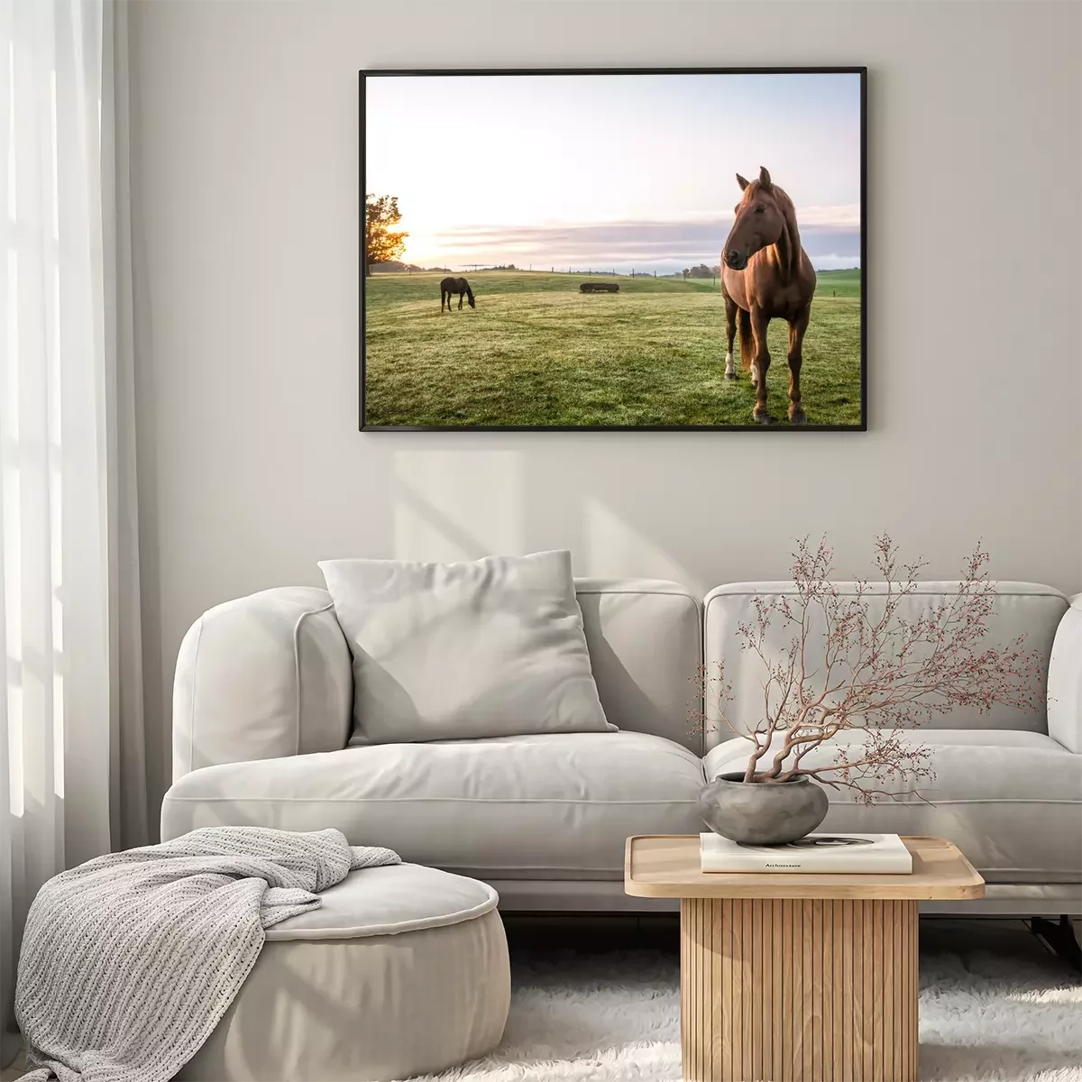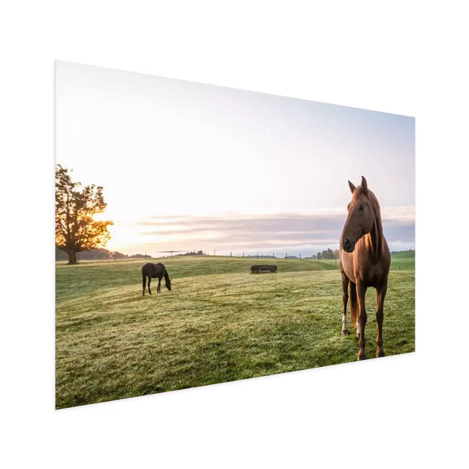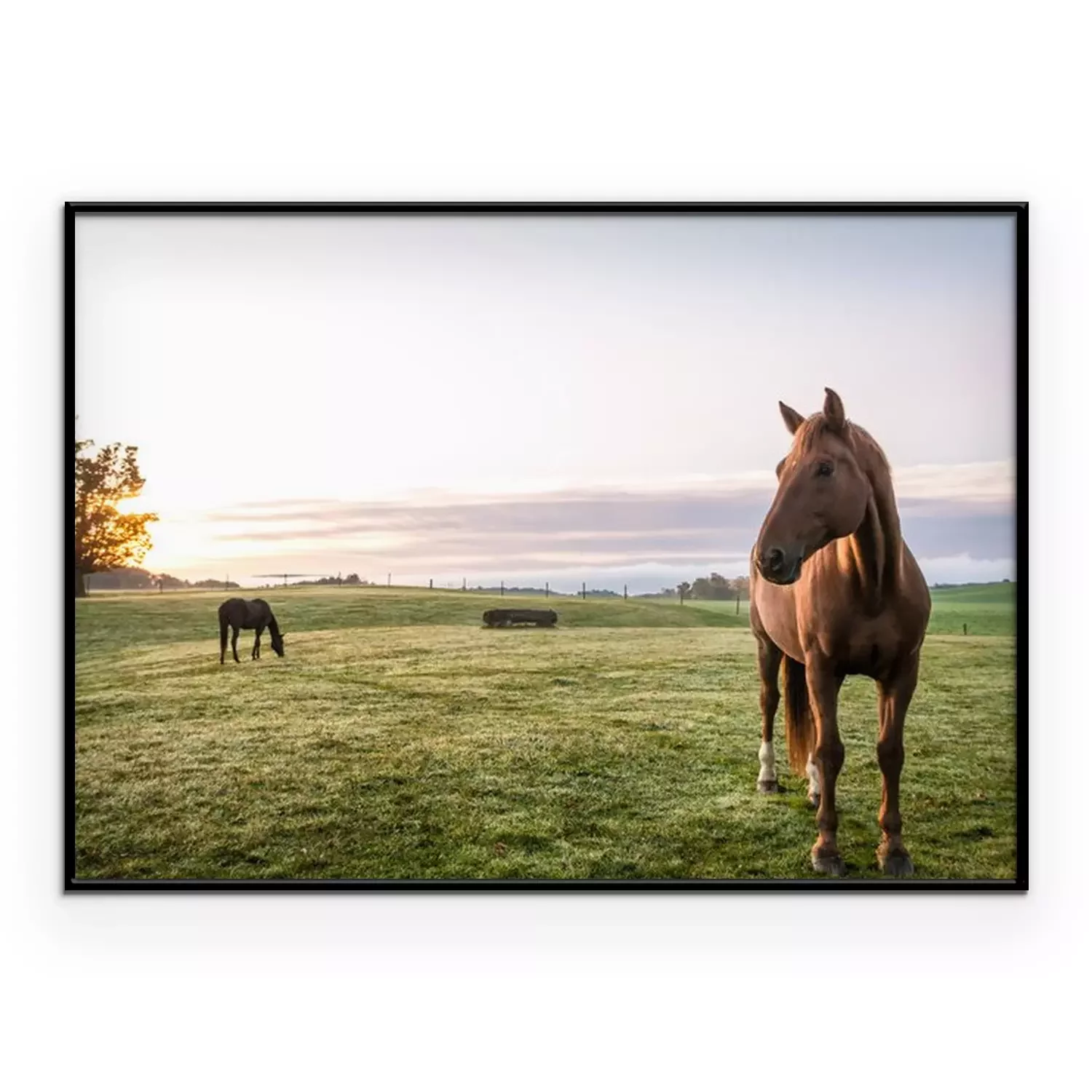 Poster: Pferde auf einer Wiese in der Abenddämmerung