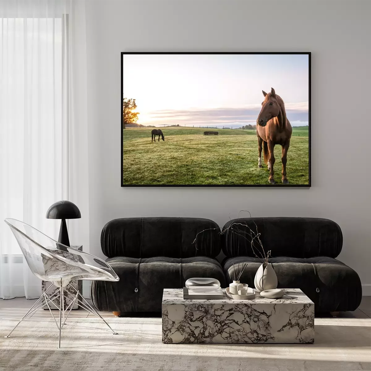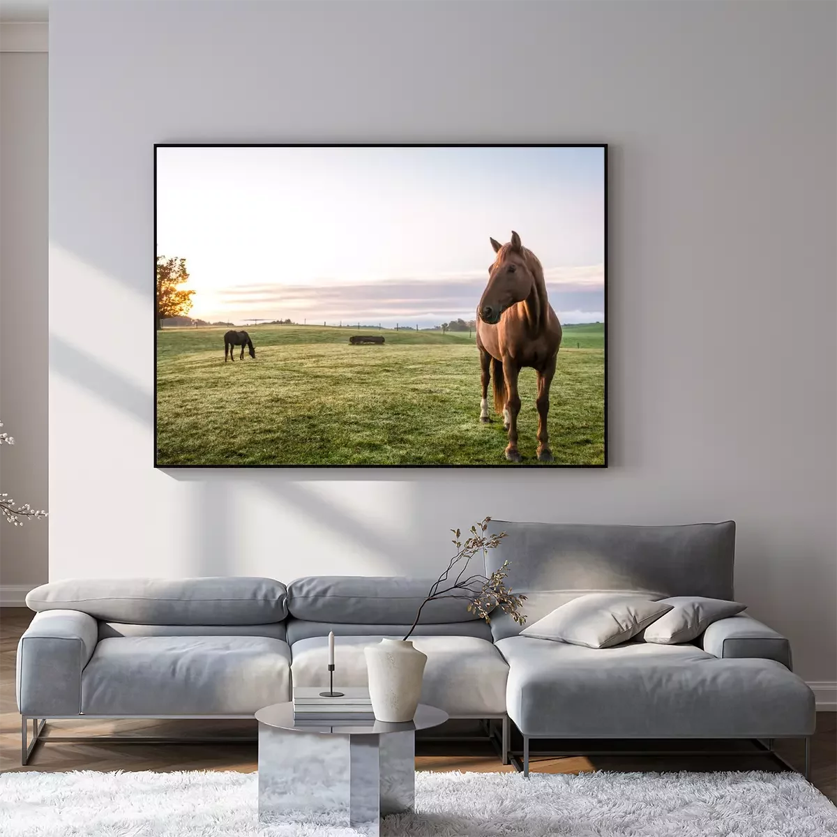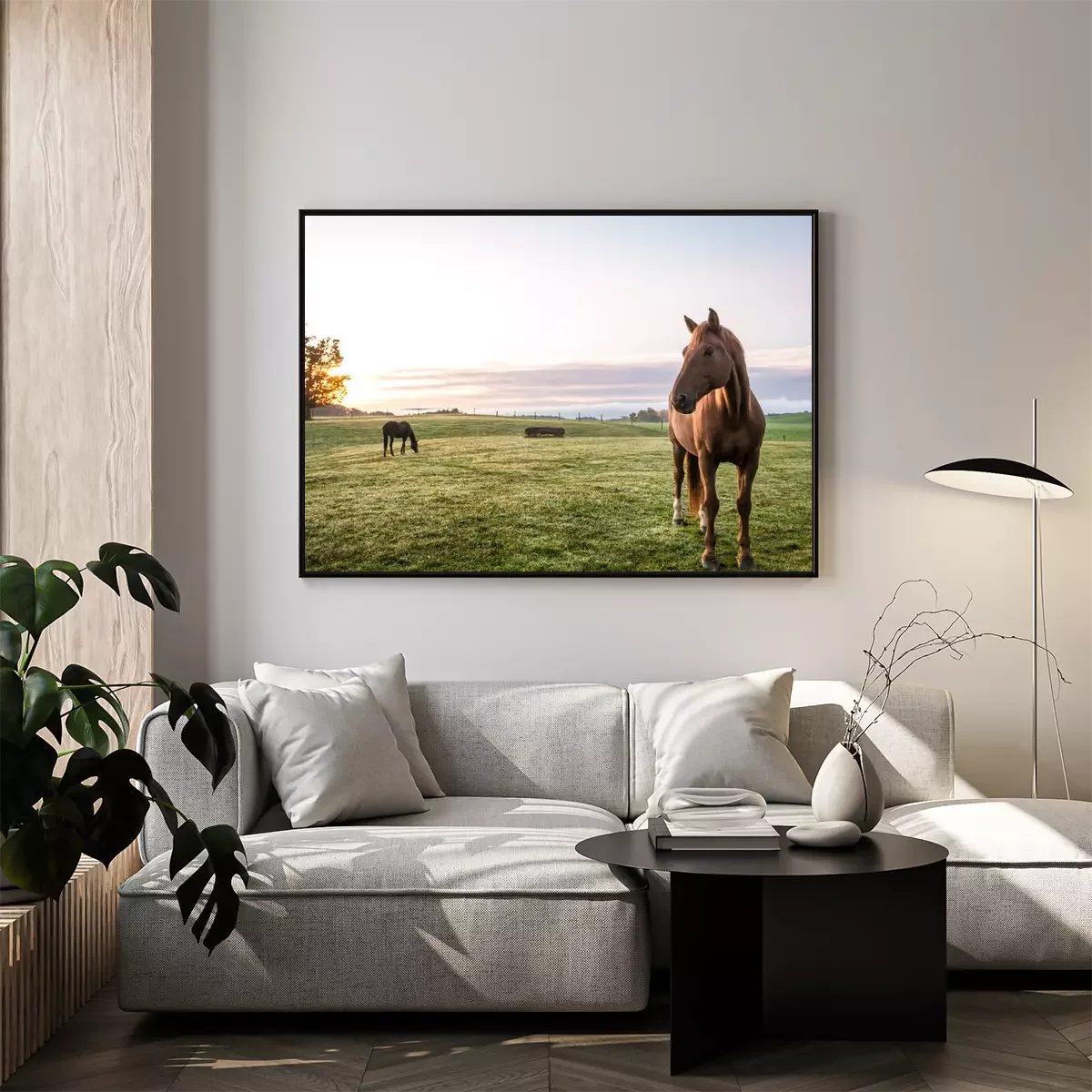 Poster: Pferde auf einer Wiese in der Abenddämmerung