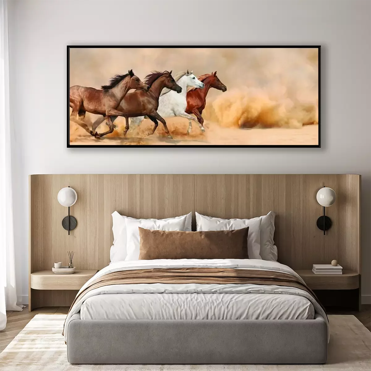 In der wüste rennende pferdegruppeProblemlose Lieferung durch vertrauenswürdige Spediteure