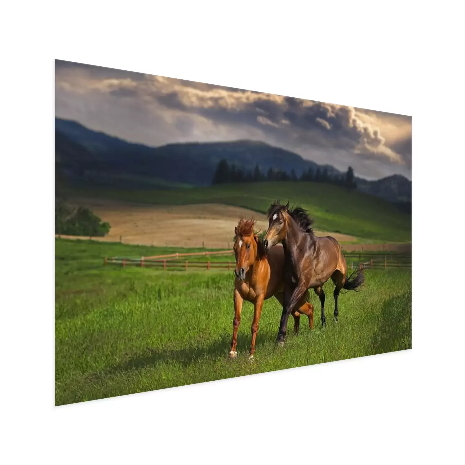 Poster: Pferde im Galopp vor dem Hintergrund der Berge