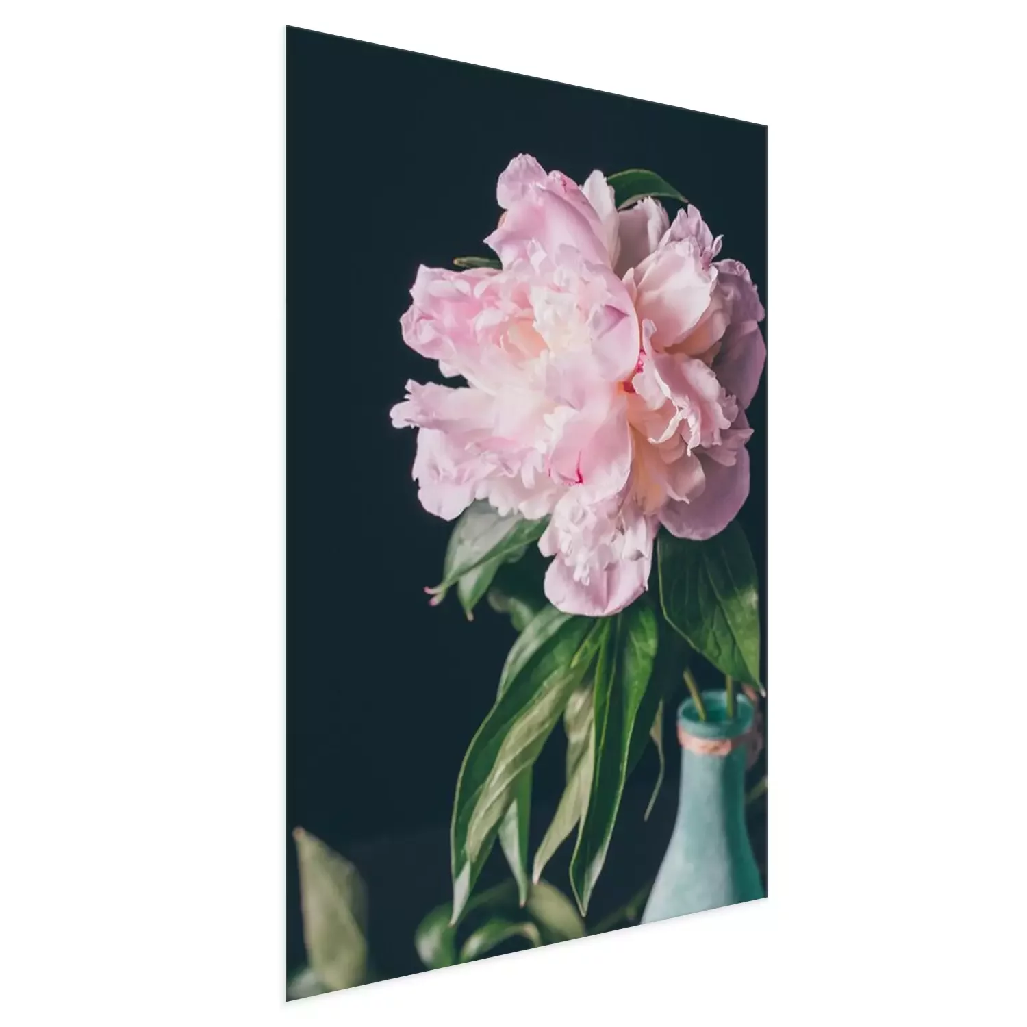 Poster: Pfingstrose in einer blau lackierten Flasche