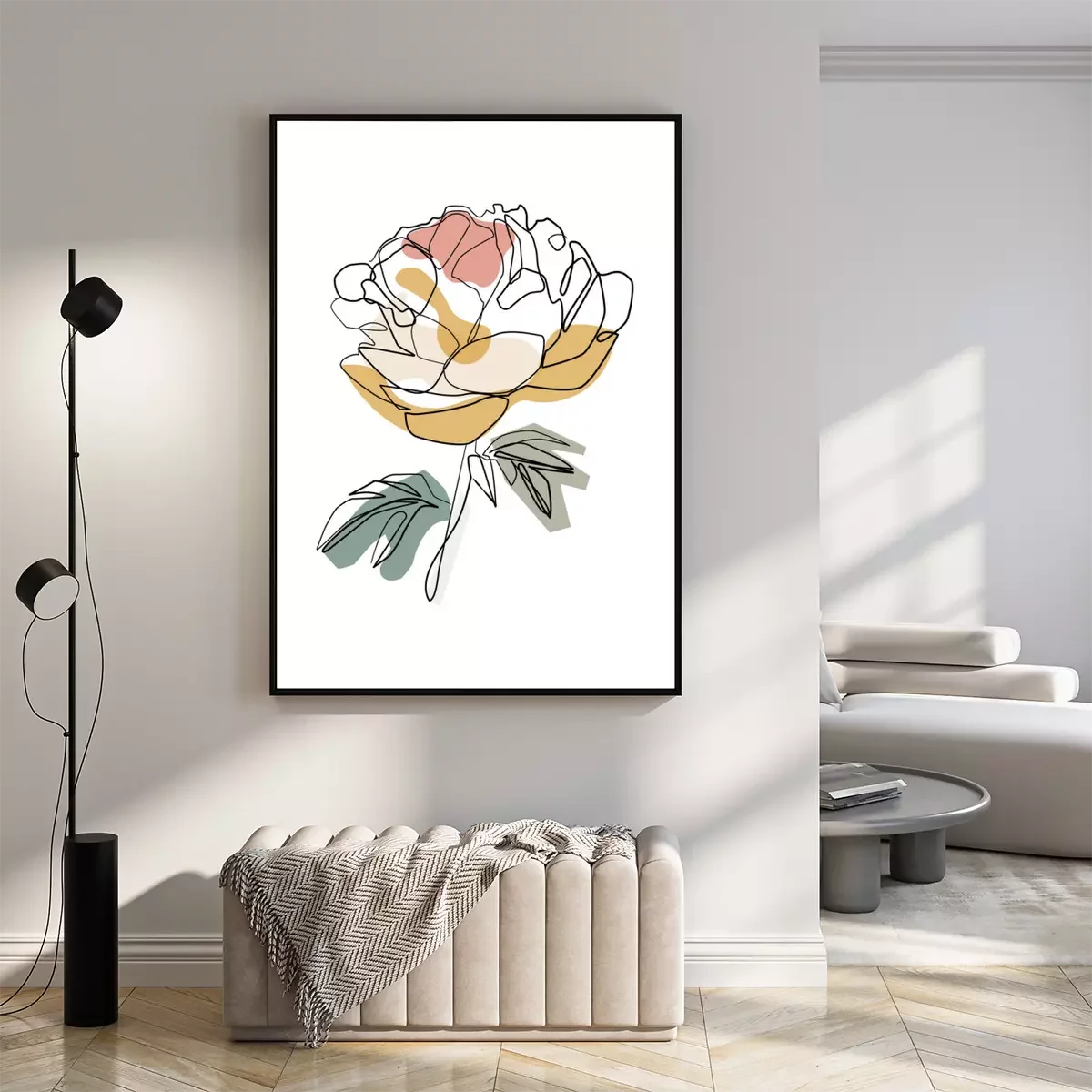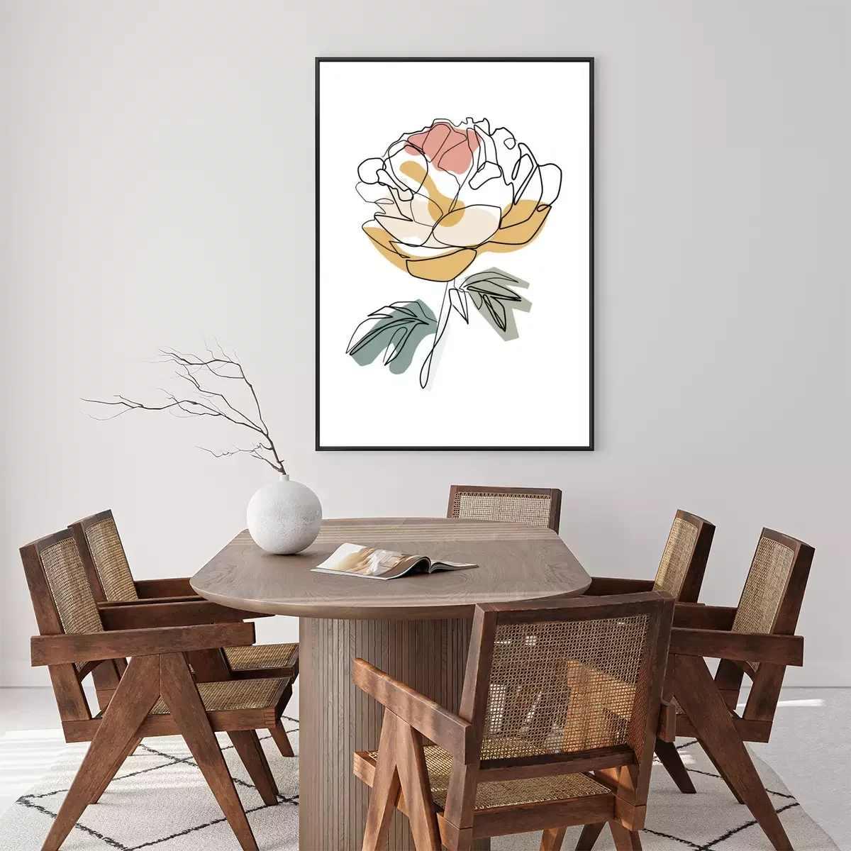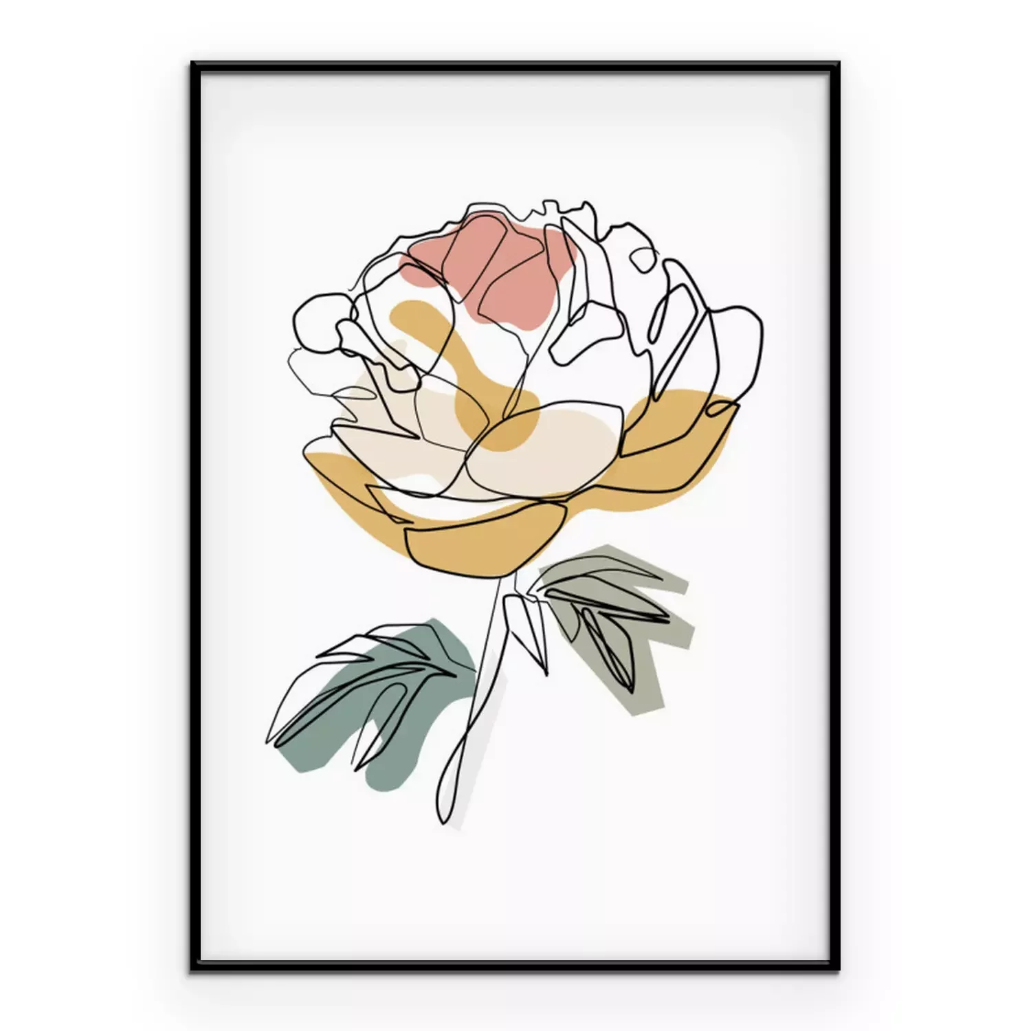 Poster Pfingstrose mit schwarzen Konturen