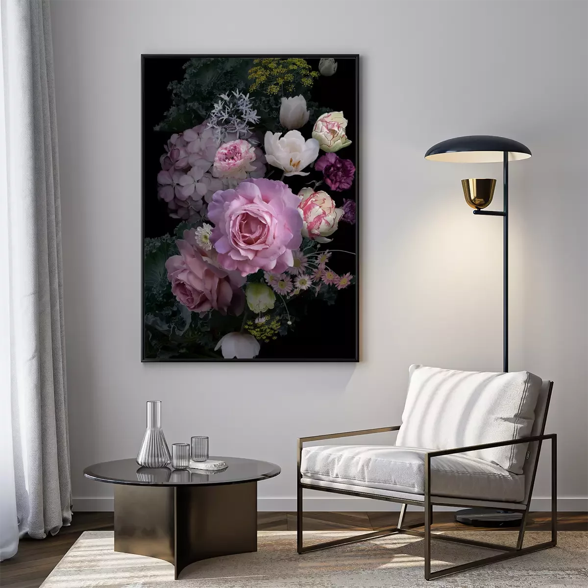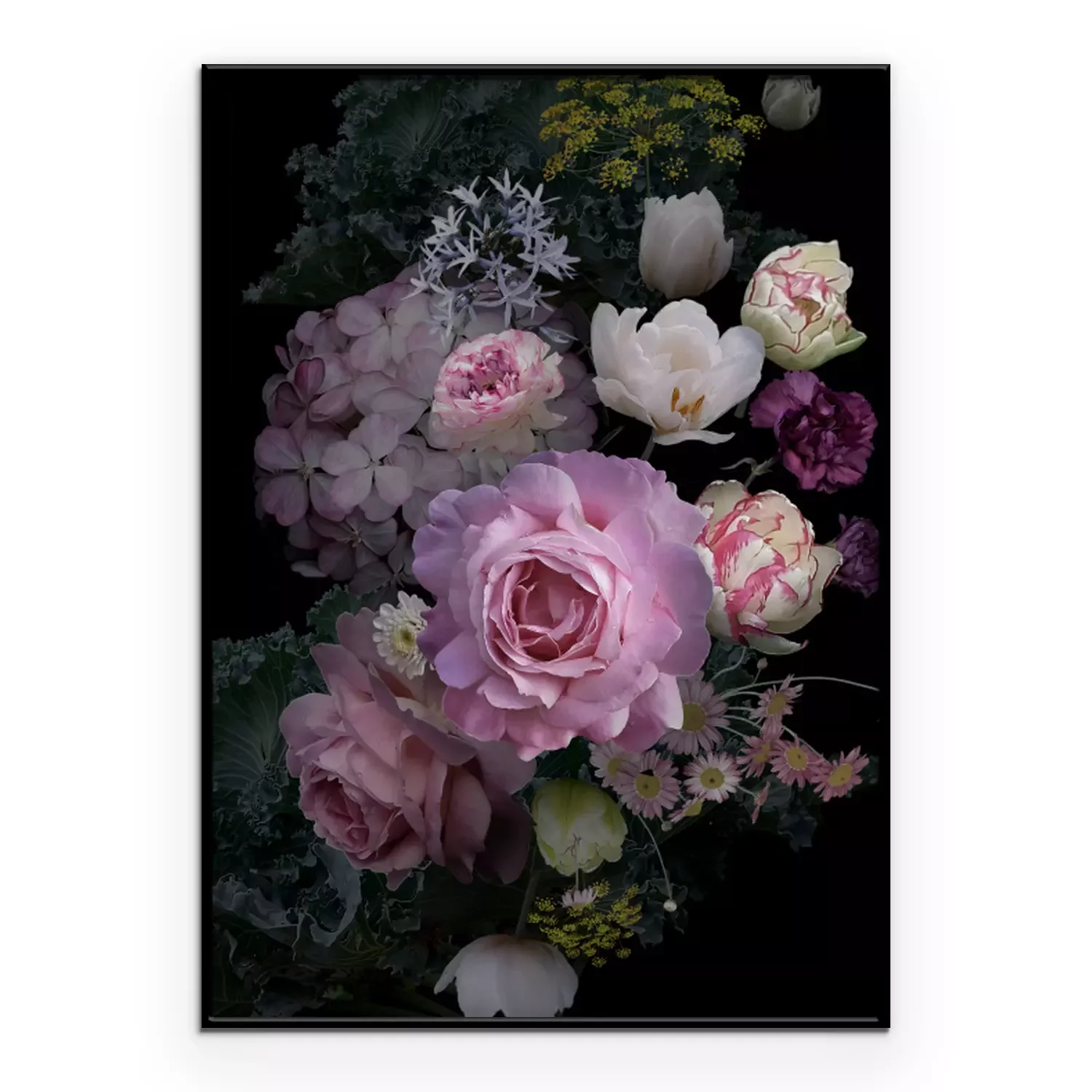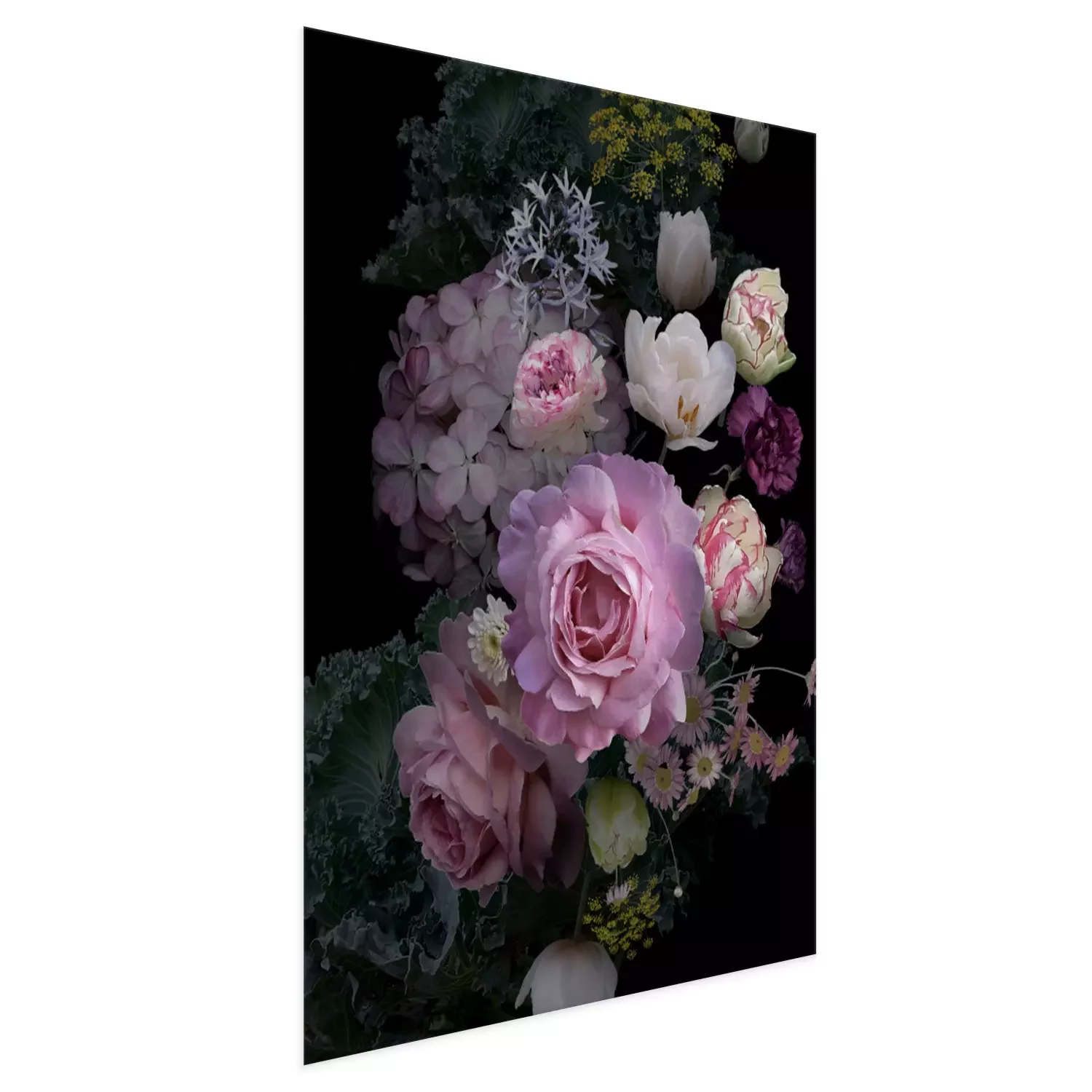 Poster: Pfingstrosen im Dunkeln inmitten anderer Blumen