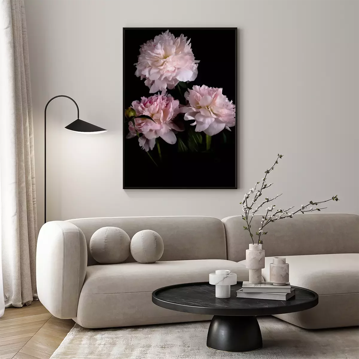 Poster: Pfingstrosen in der Dunkelheit moderne Fotografie
