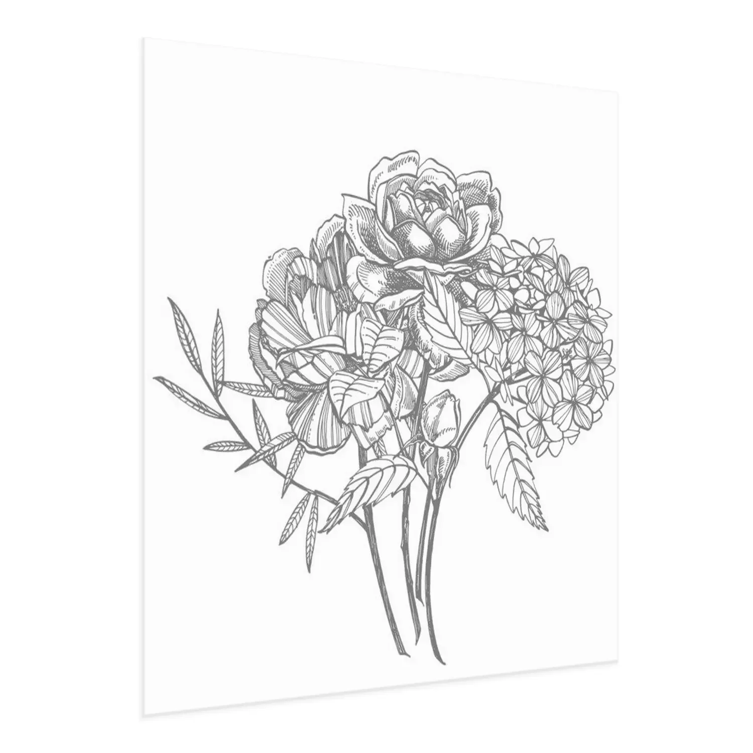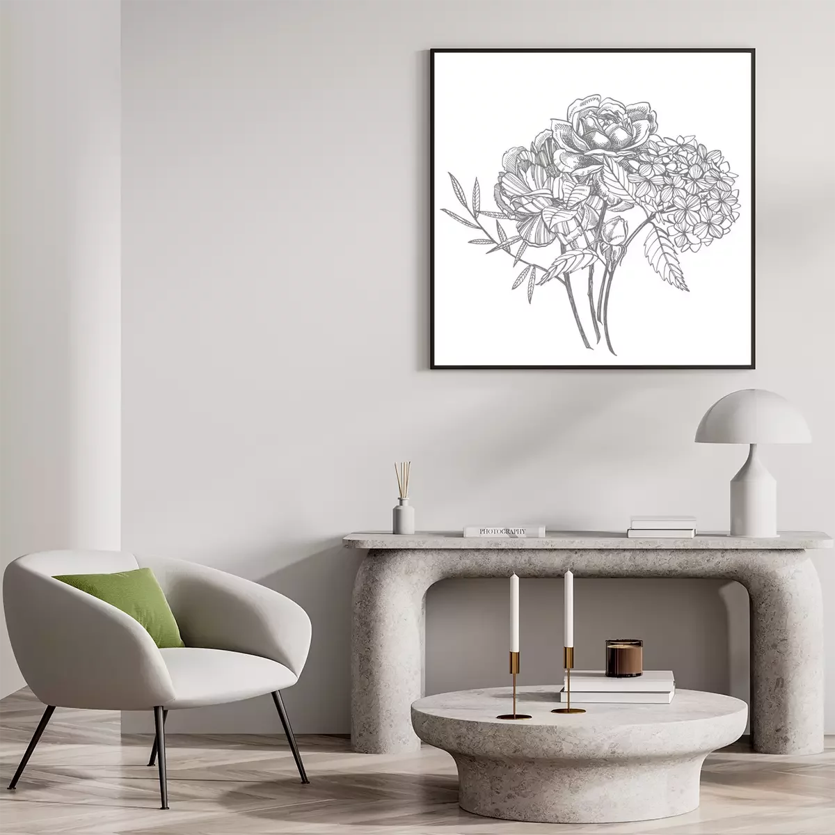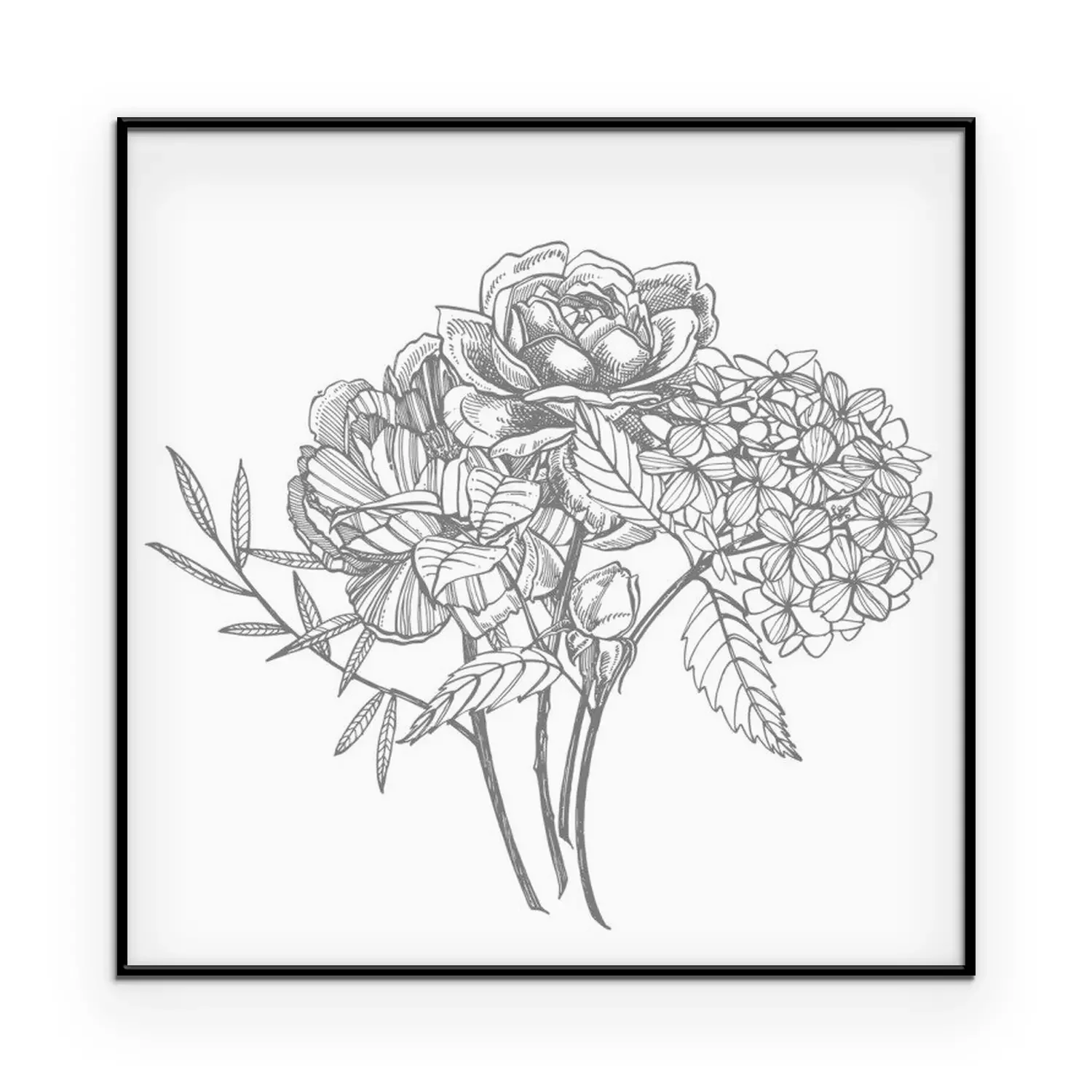 Poster Pfingstrosen und Hortensien schattierte Bleistiftskizze