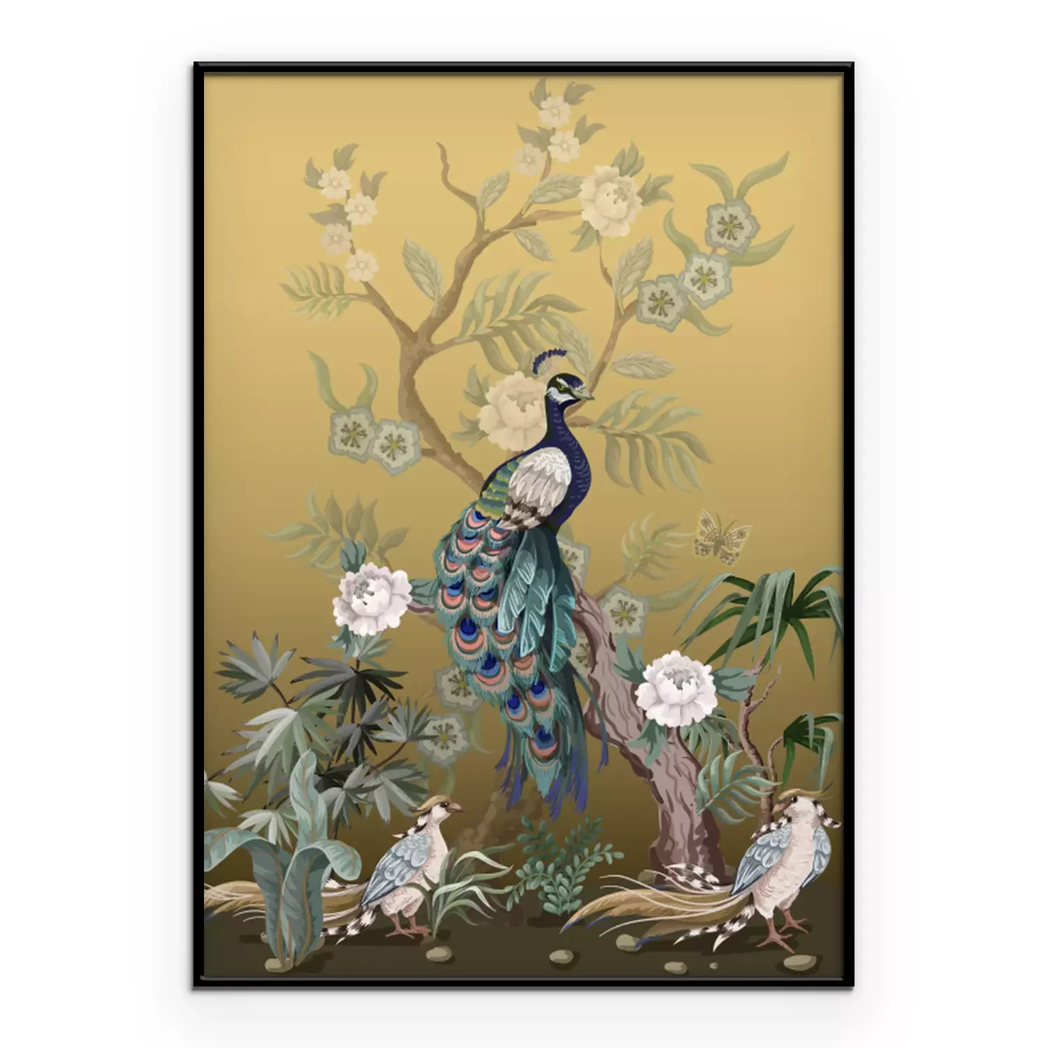 Poster: Pfingstrosen und Pfauen im japanischen Stil