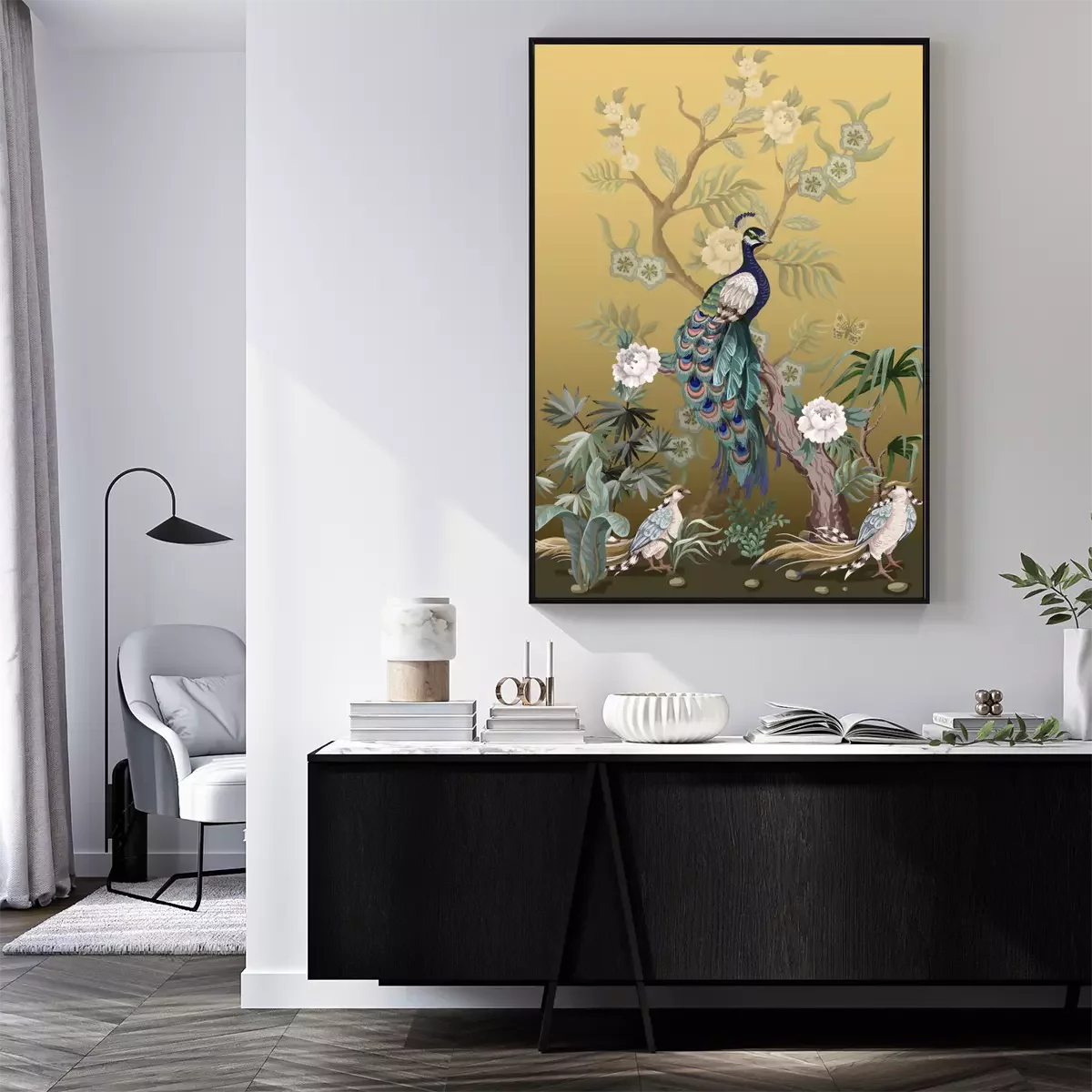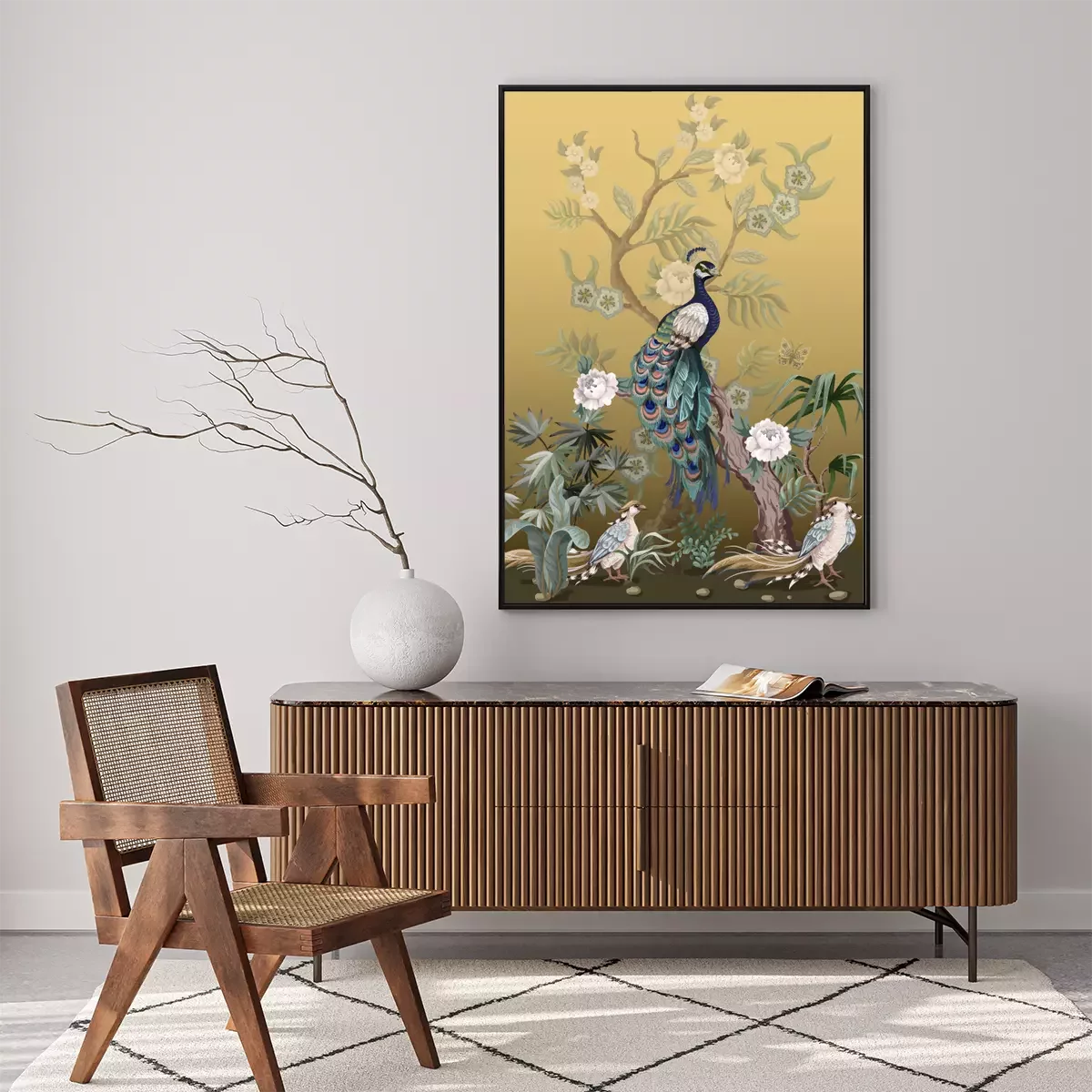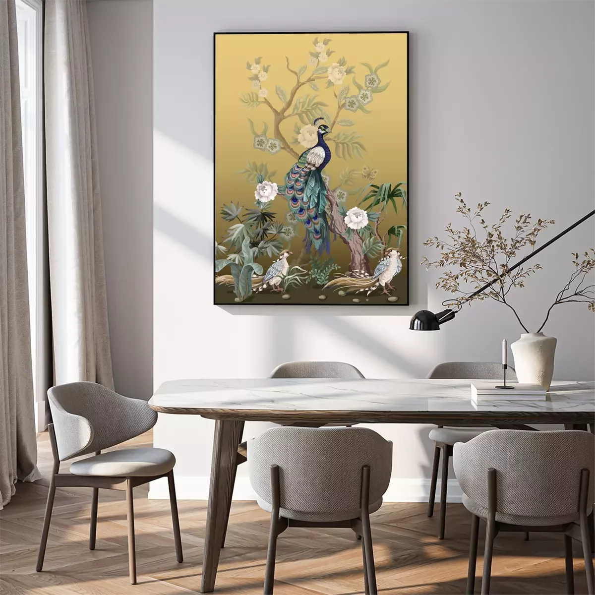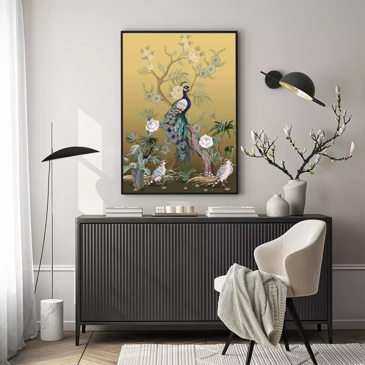 Poster Pfingstrosen und Pfauen im japanischen Stil