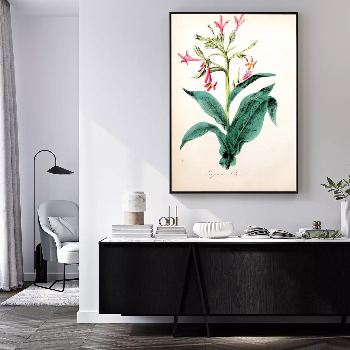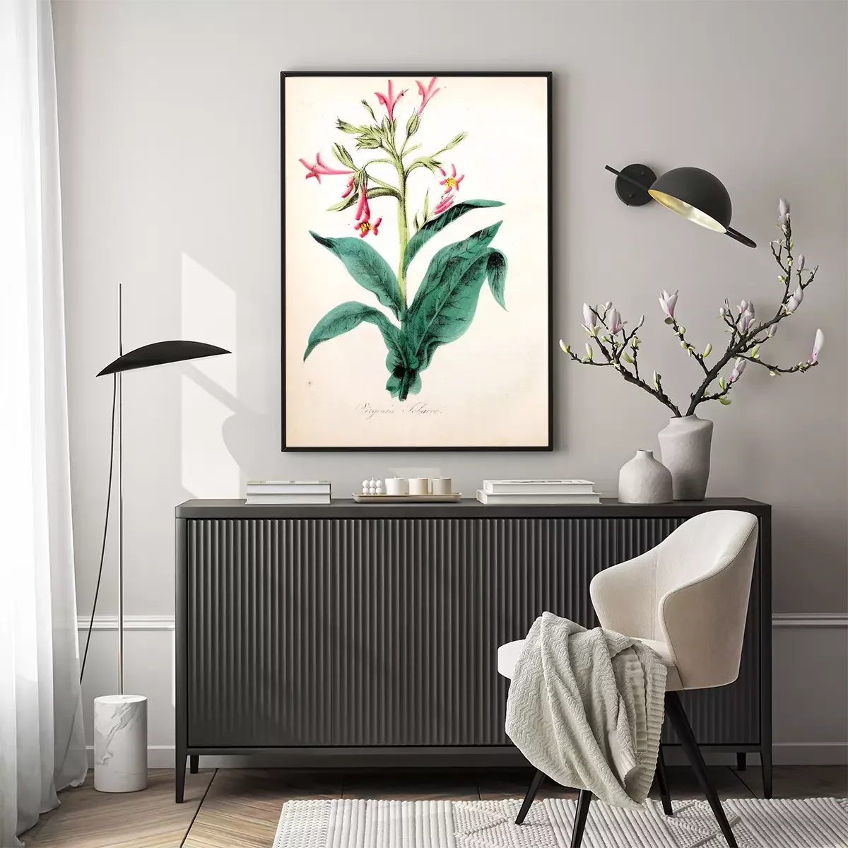 Poster Pflanzen botanische Grafik mit rosa Blume