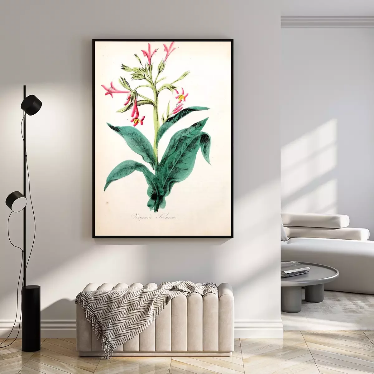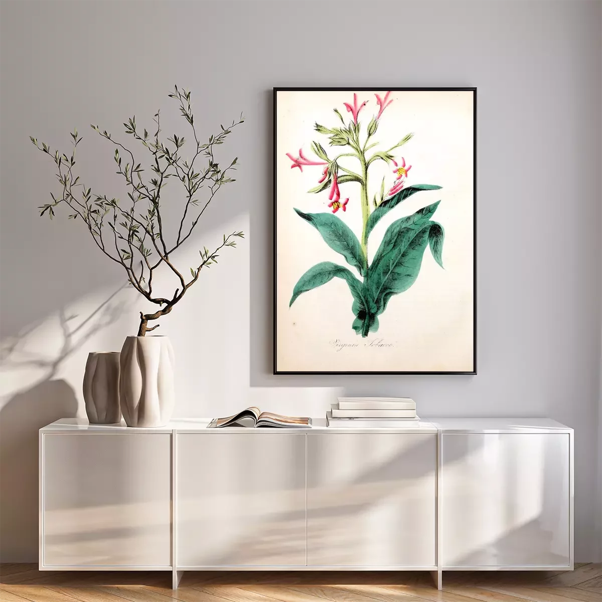Poster: Pflanzen botanische Grafik mit rosa Blume