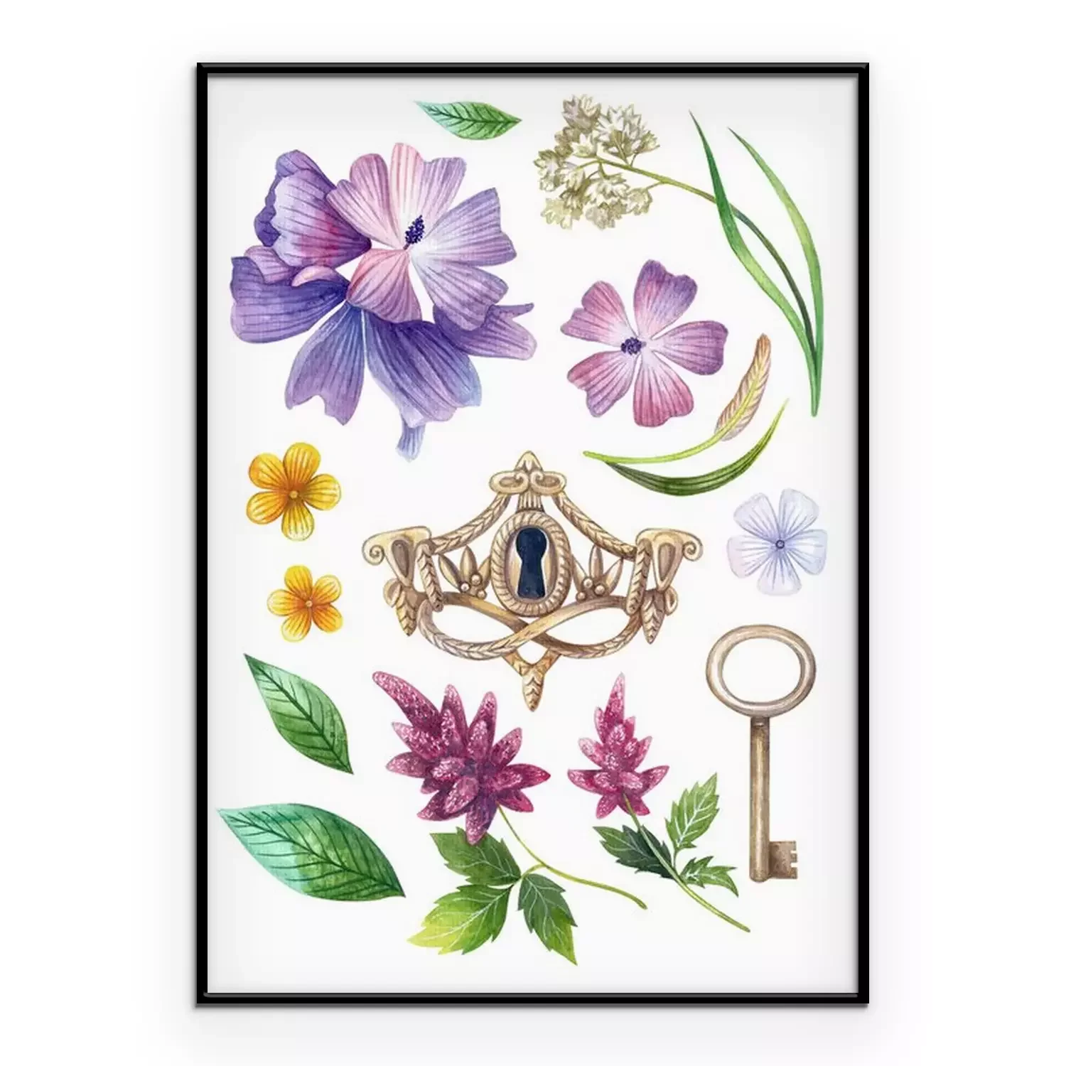 Poster: Pflanzen geheimnisvoller Garten Schlüssel und Schloss
